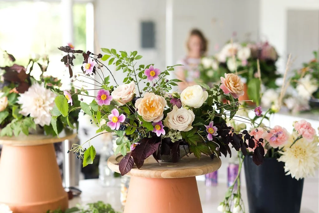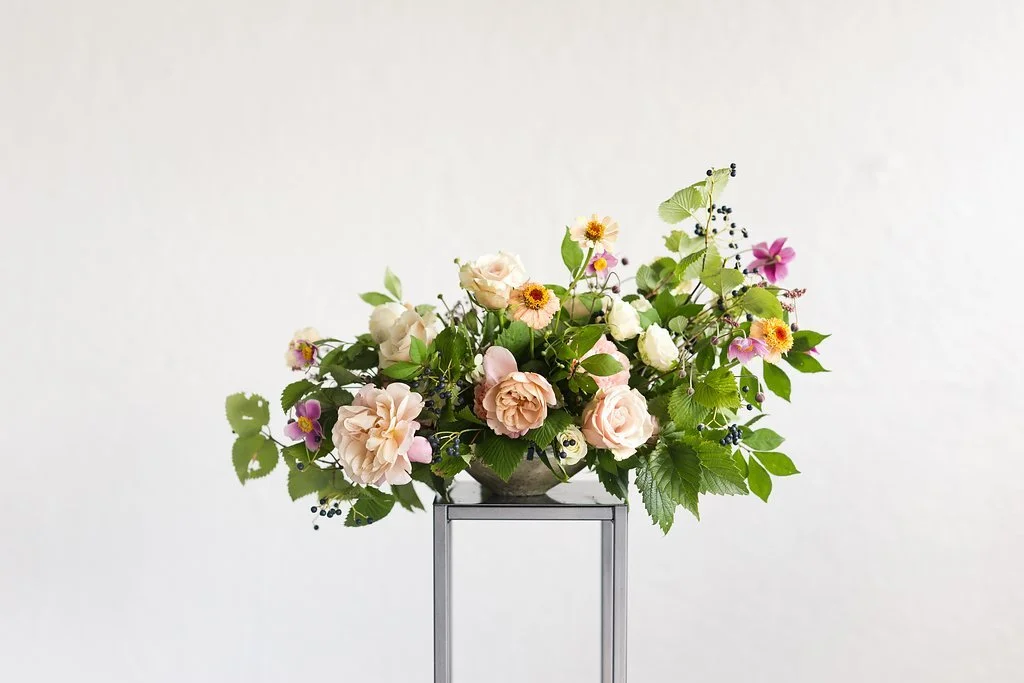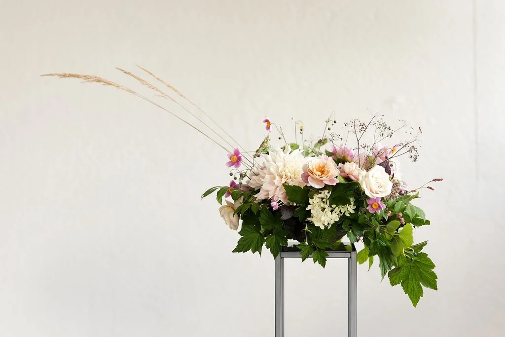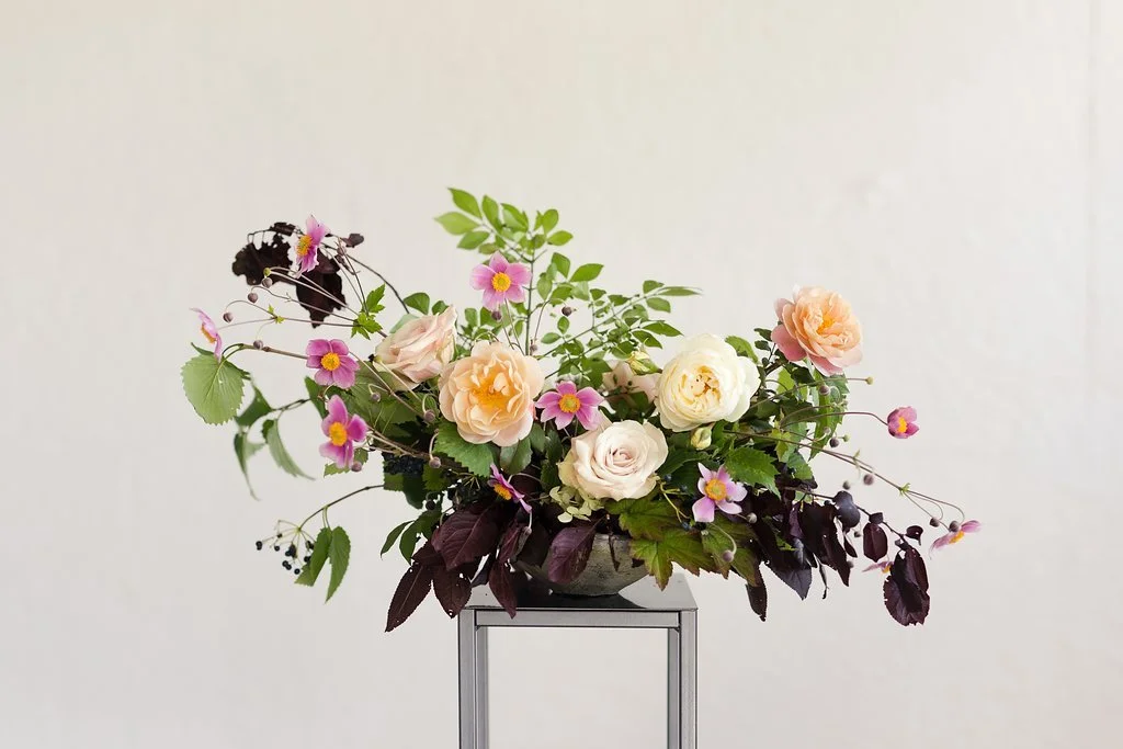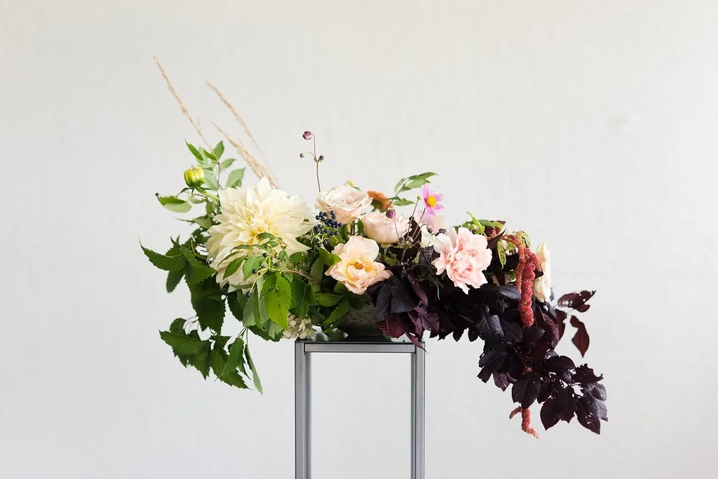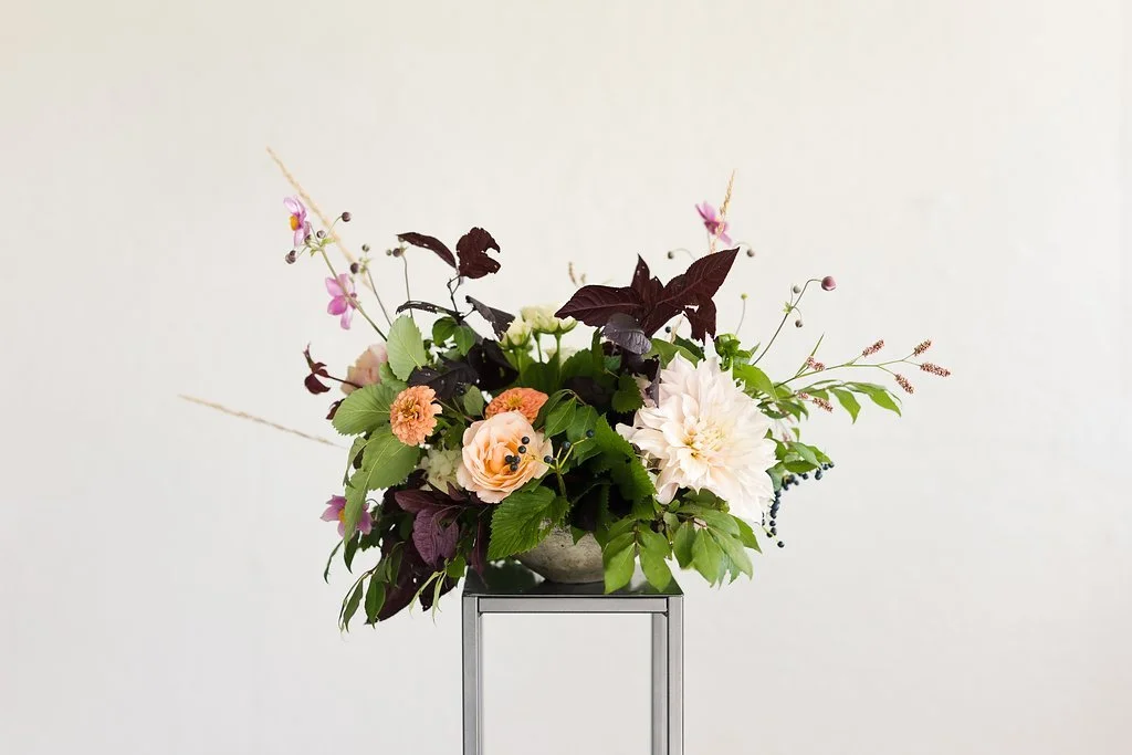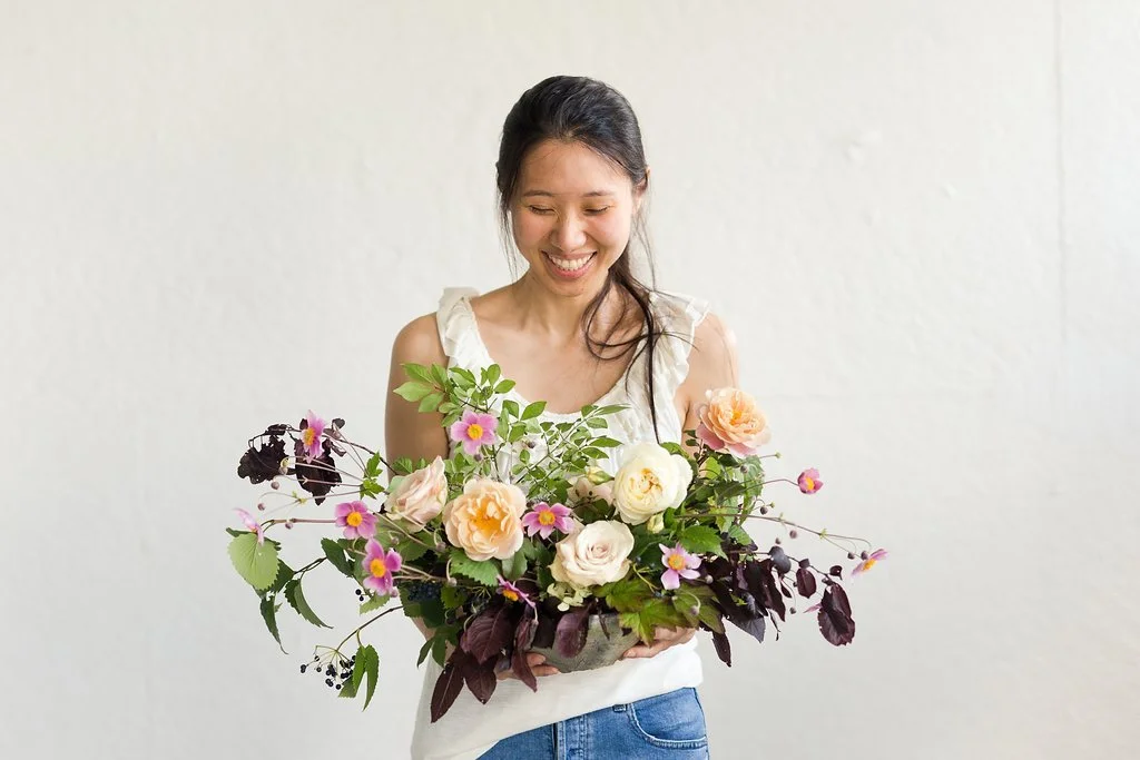 In addition to working with Sophie at Blossom and Vine, I also work at Sol Yoga in Frederick, MD. One day over the summer, I was talking to Erin, a yoga teacher, and she suggested we do a staff flower workshop because yoga and flowers clearly go hand-in-hand. So we set a date and invited the staff out to Daphne Hill for a floral design workshop. We asked Jen of Jen S Photography to come take photos and create an arrangement with us (she turned out to be one heck of a designer!). The day was warm and lovely and we had a blast getting to arrange just for fun and share the beauty of flowers with the Sol team. The icing on the cake, though, was when studio founder, Dorcas McWilliams, surprised us all and showed up at the workshop straight from the airport. She lives in New Caledonia and runs the studio remotely. She had secretly made plans to be in town during the workshop and to be present for the 300 hour teacher graduation, taking place the same weekend. The BEST surprise and the best day.