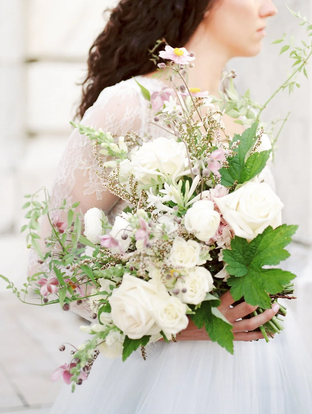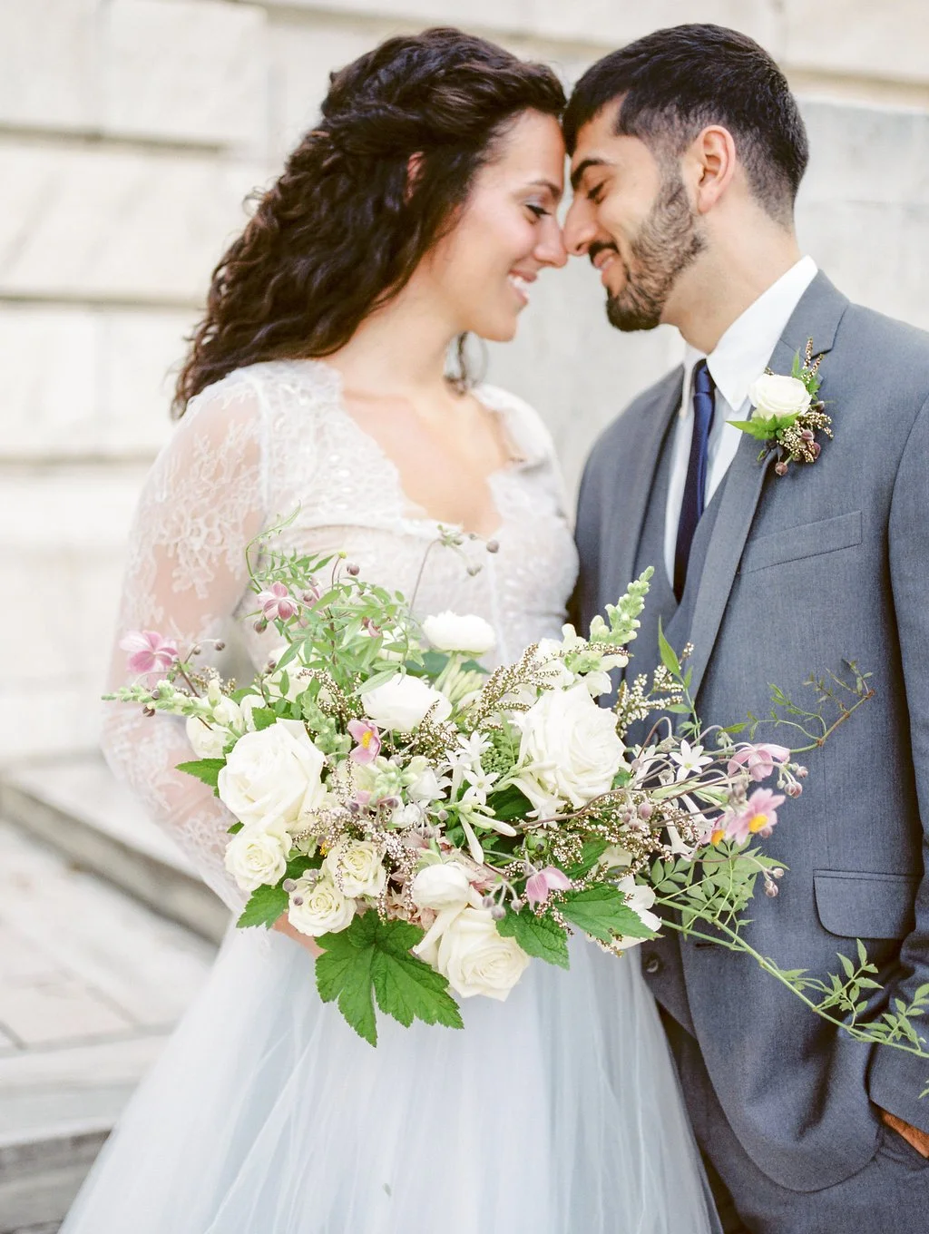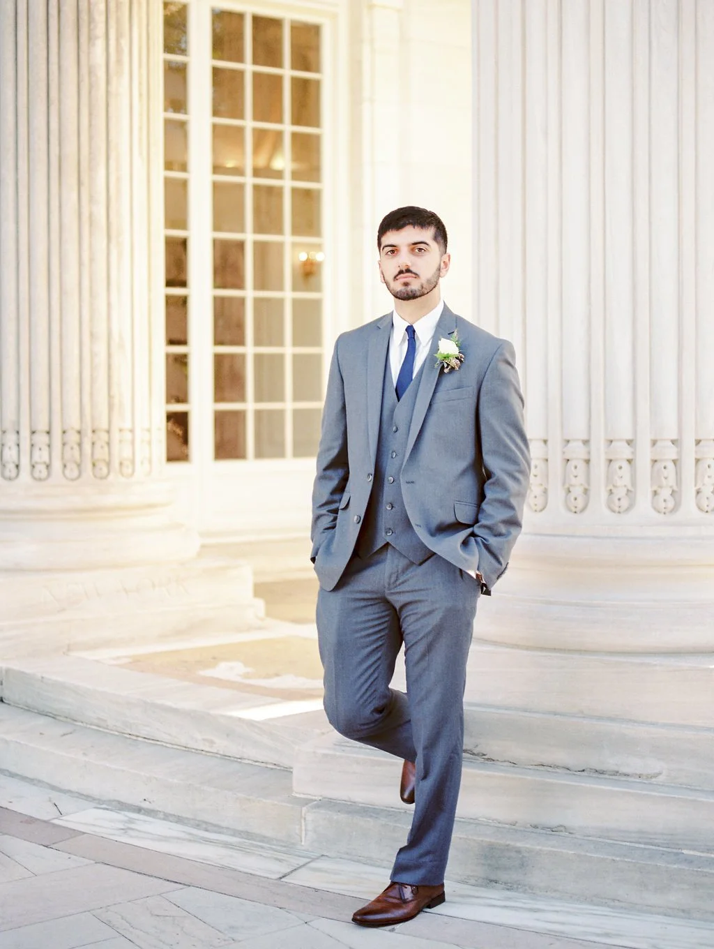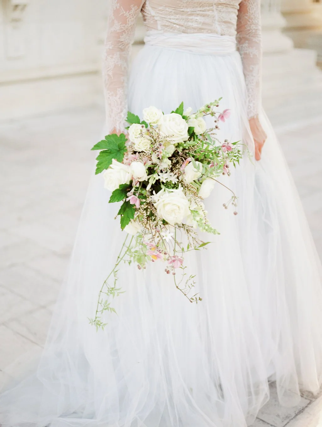 When Alicia Lacey approached me about this DC elopement shoot, at DAR Constitution Hall, I was SO excited to work with the amazing vendors and colonial exterior of the building. The building is rich in history and aesthetic and the light blue tulle gown by Sweet Caroline Styles was a perfect contrast to the grandiose white columns.