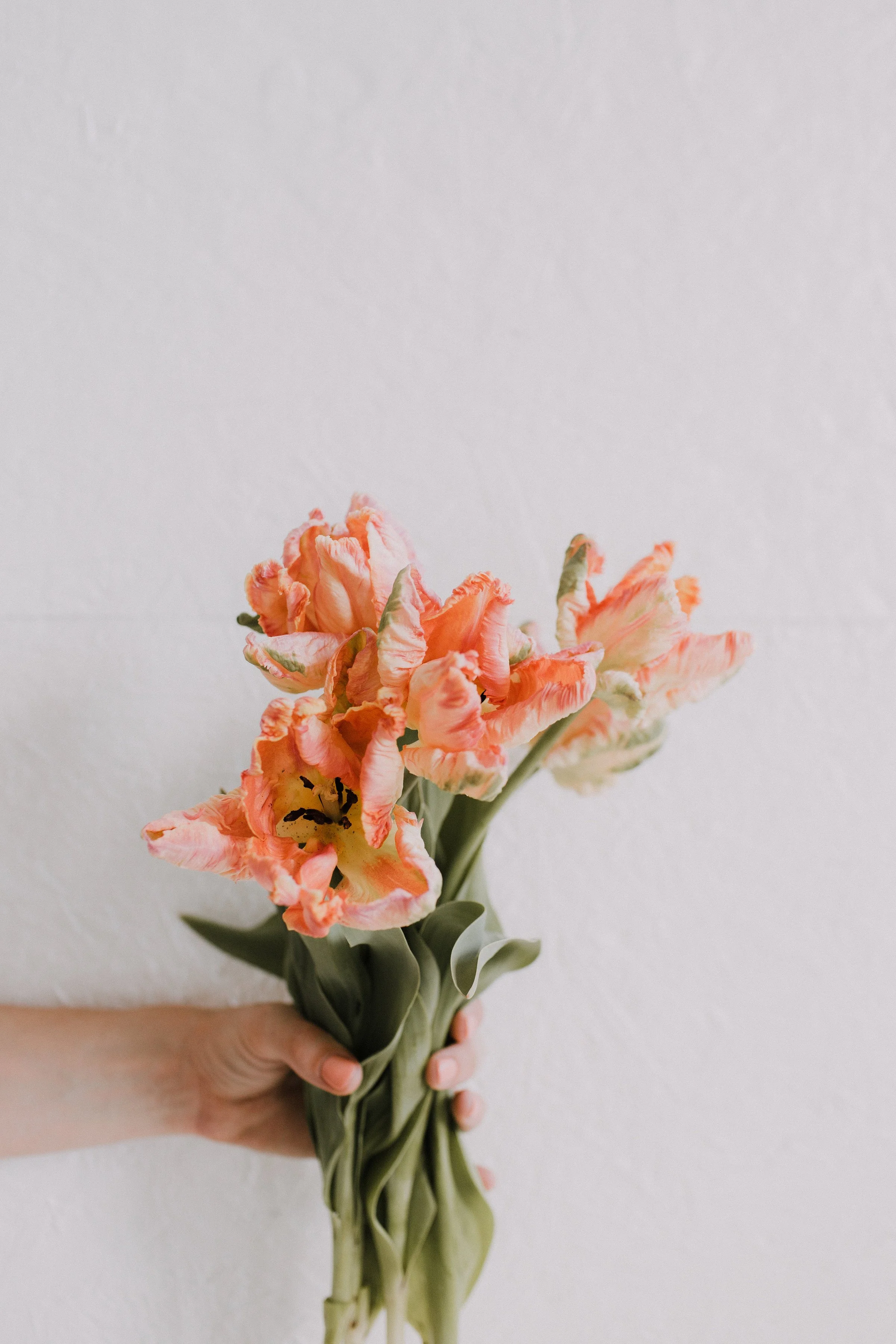 Last fall, we planted a few rare varieties of tulips with great anticipation for what we would harvest in the spring. With an early warm streak, we began to see green sprouts much earlier than anticipated, and we worried that we wouldn't get to use our precious tulips in our spring bouquets like we had planned. Luckily, Mother Nature found her balance and we harvested breathtaking Salmon Parrot Tulips (pictured below) in time to feature them in a few event arrangements last month. We also grew Professor Rontgen and Charming Beauty Tulips and completely fell in love. We were so impressed with the ease of growing these beauties that we are already stocking up on tulip bulbs for next year!