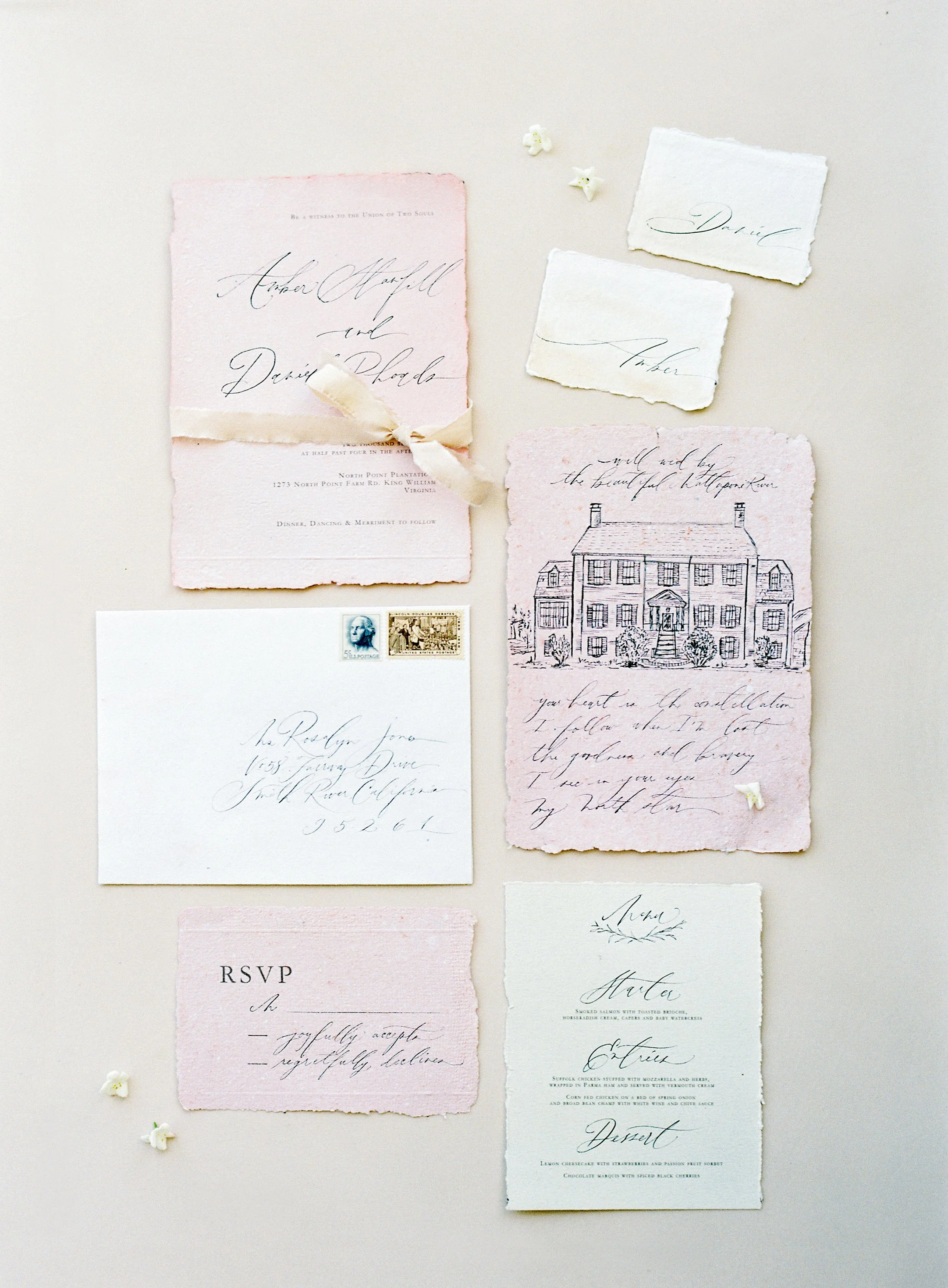 Photography Rachel May Photography | Stylist/Planner East Made Event Company | Floral Design Blossom & Vine | Dress Alexandra Grecco | Hair and Makeup Emily Artistry | Venue North Point Plantation | Cake Incredible Edibles Bakery | Suit J. Crew | Models Modelogic | Chairs, Tabletop Items White Glove Rentals | Ring Susie Saltzman |Veil, Robes, Accessories BHLDN | Shoes Bella Belle | Garter Garter Girl | Ribbons and Runner Frou Frou Chic | Calligrapher Maurelle Calligraphy and Design | Tablecloth Party Rental Ltd