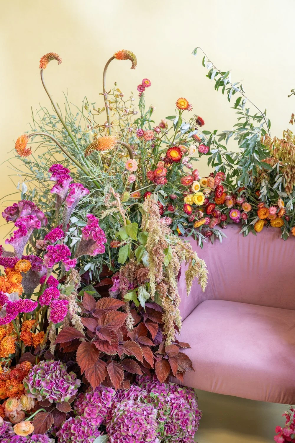 The Sophie Felts team packed their bags and headed for the big city to create a modern yet garden-style floral installation with the color queen East Olivia. With a mix of funky florals and creativity, our two teams created some magic and lasting memories. Florals by Sophie Felts Floral Design and East Olivia Photography by Charlotte McGehee.