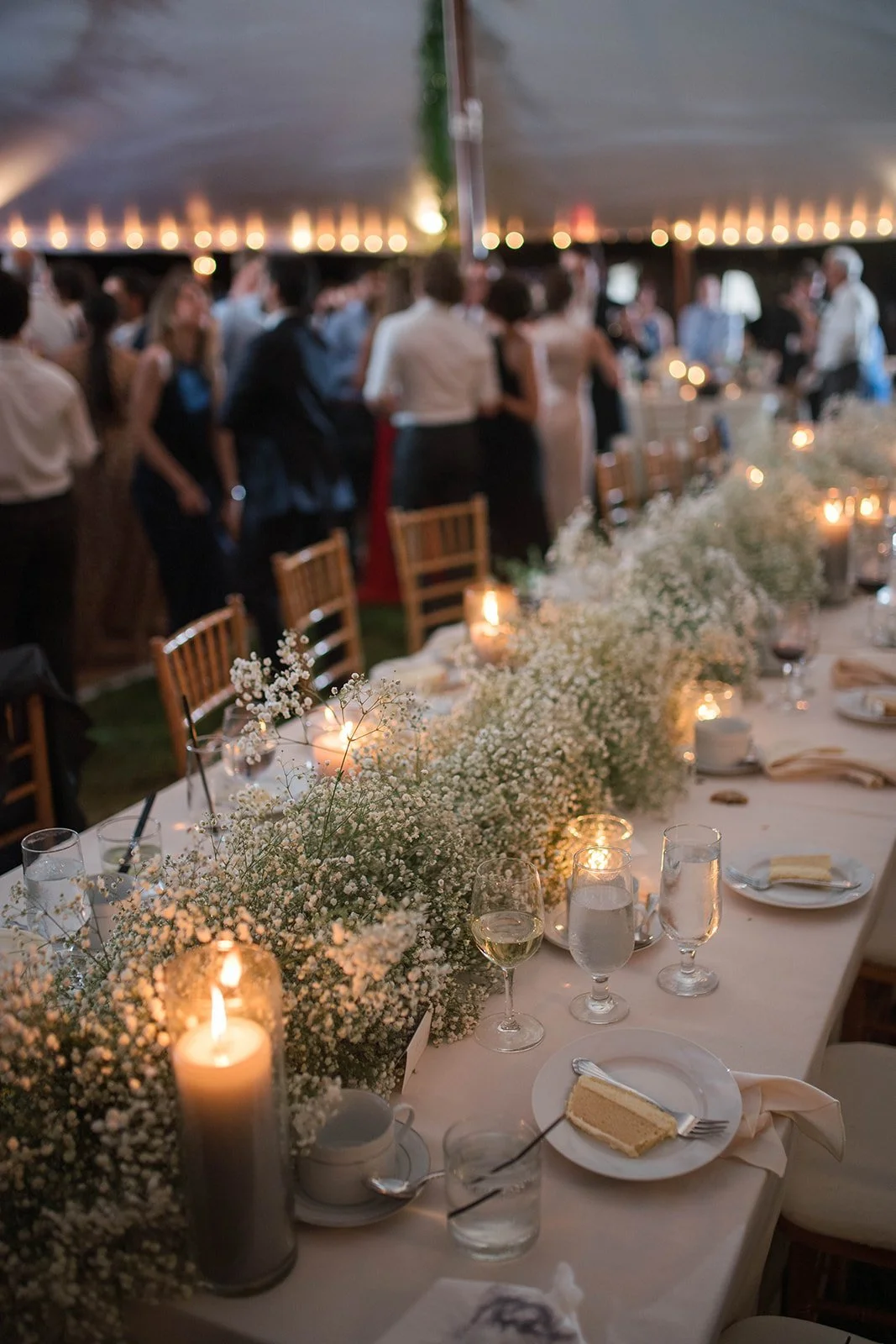 Madeline and Brian’s wedding day felt soft, ethereal and personal. Using baby’s breath gave texture to a lush floral wall filled with roses and climbing vines. Planning by B. Mingled Weddings and Events and photography by Kimberly F. Denn.