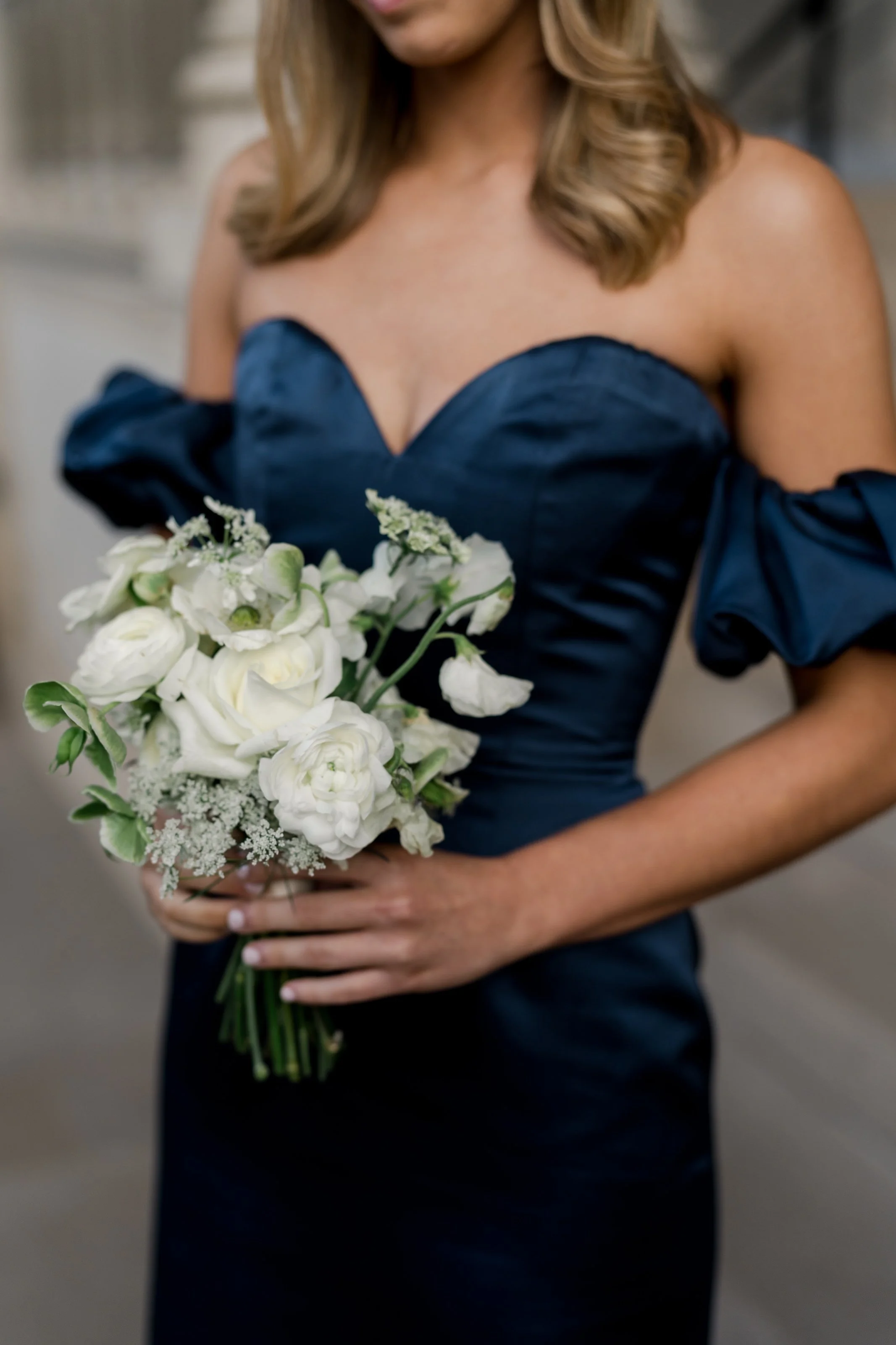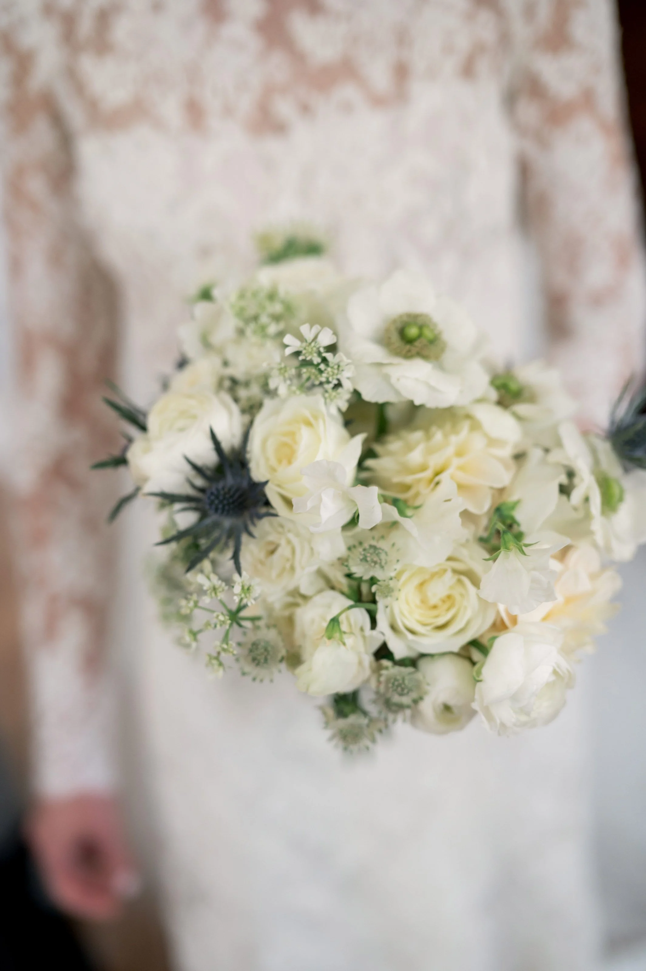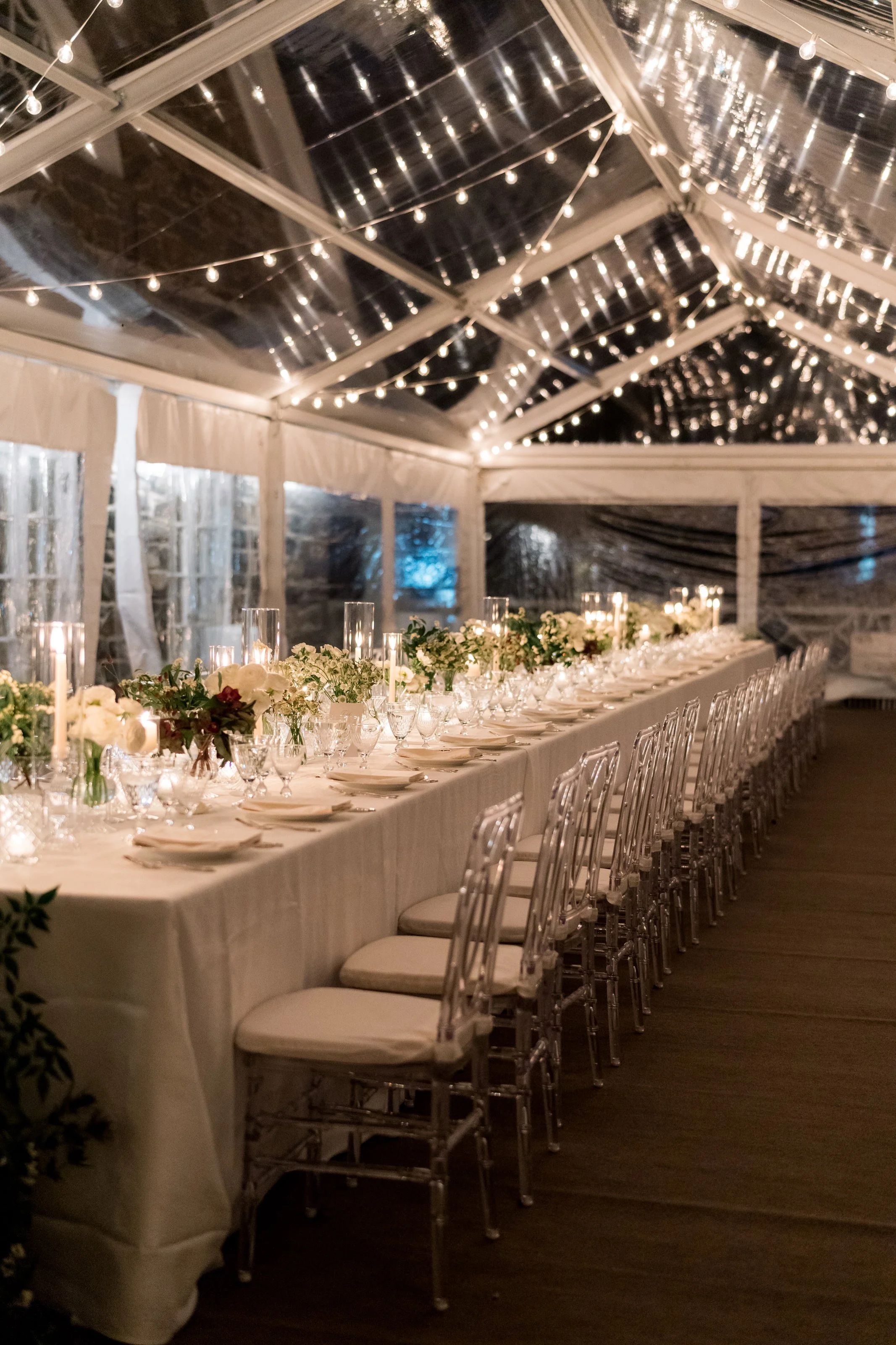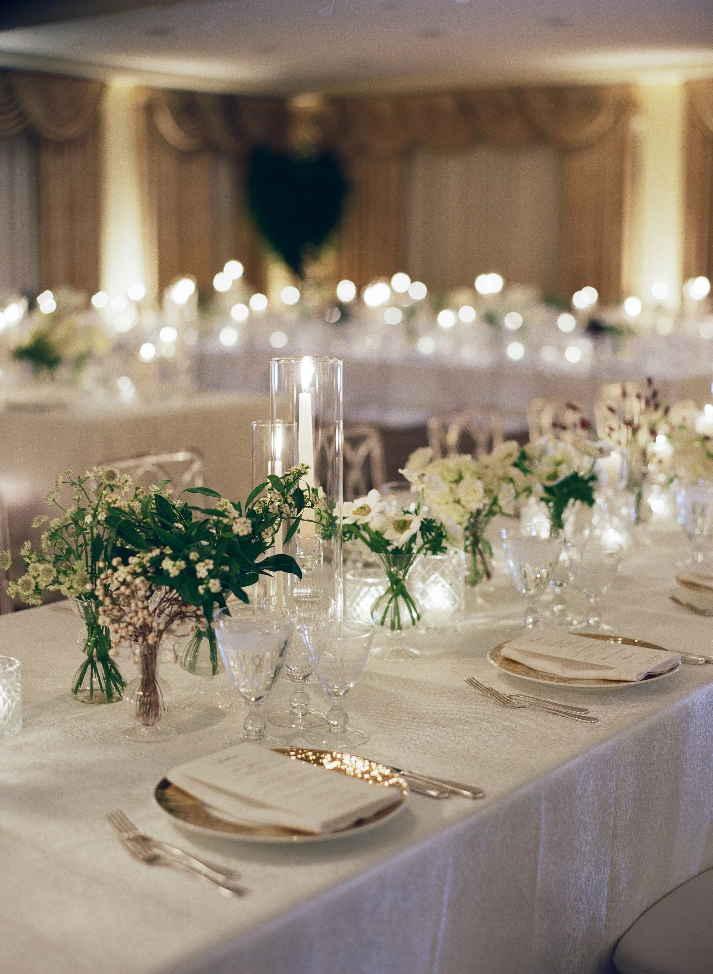 Avery and Tim’s wedding day was lush, romantic and full of foliage-forward installations in the reception. We loved being able to create a show-stopping moment surrounding the windows with simple mono-floral tables to accent. Planning by Arney Walker and photography by Liz Banfield.
