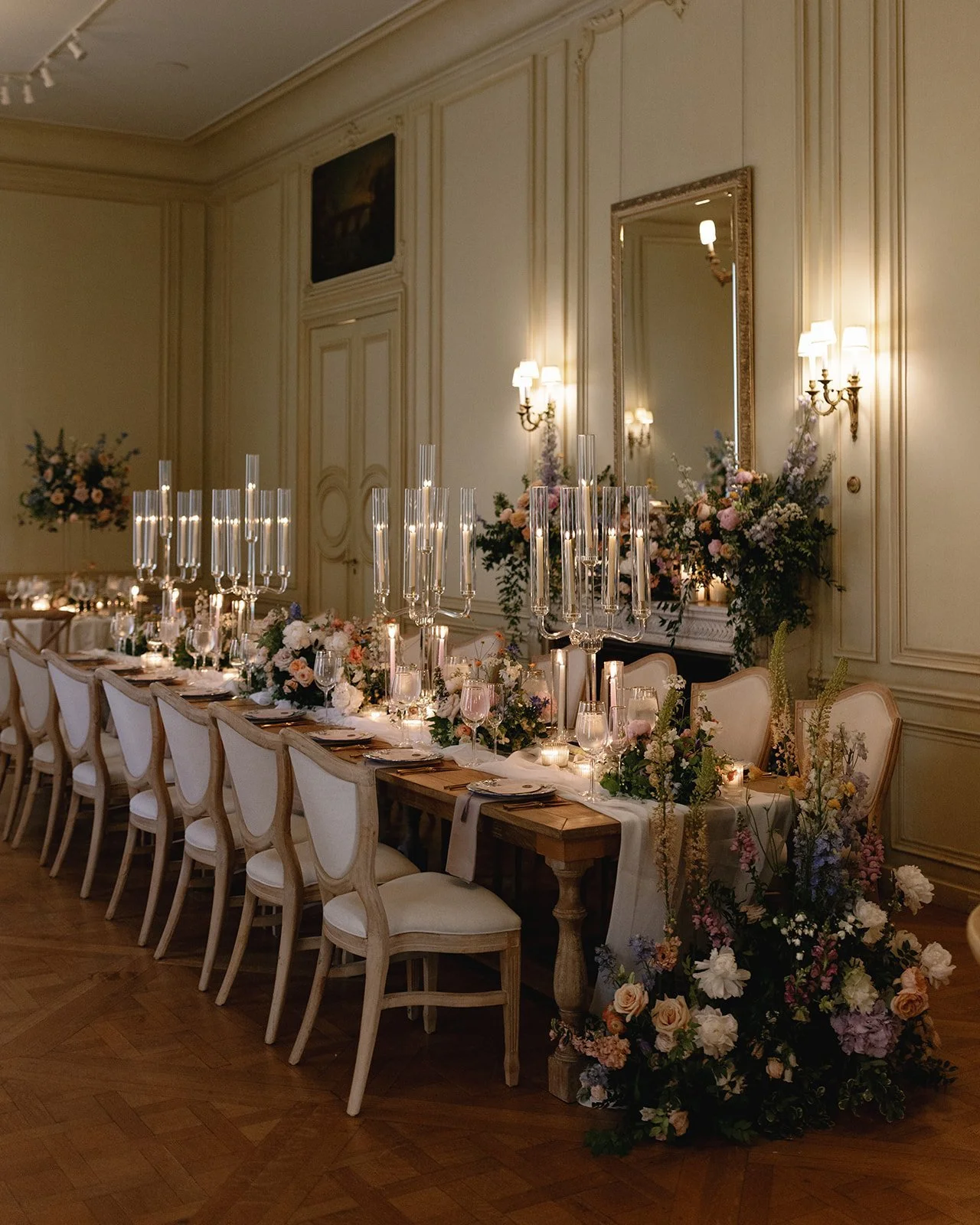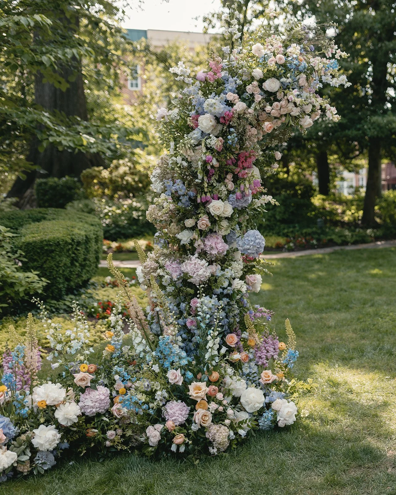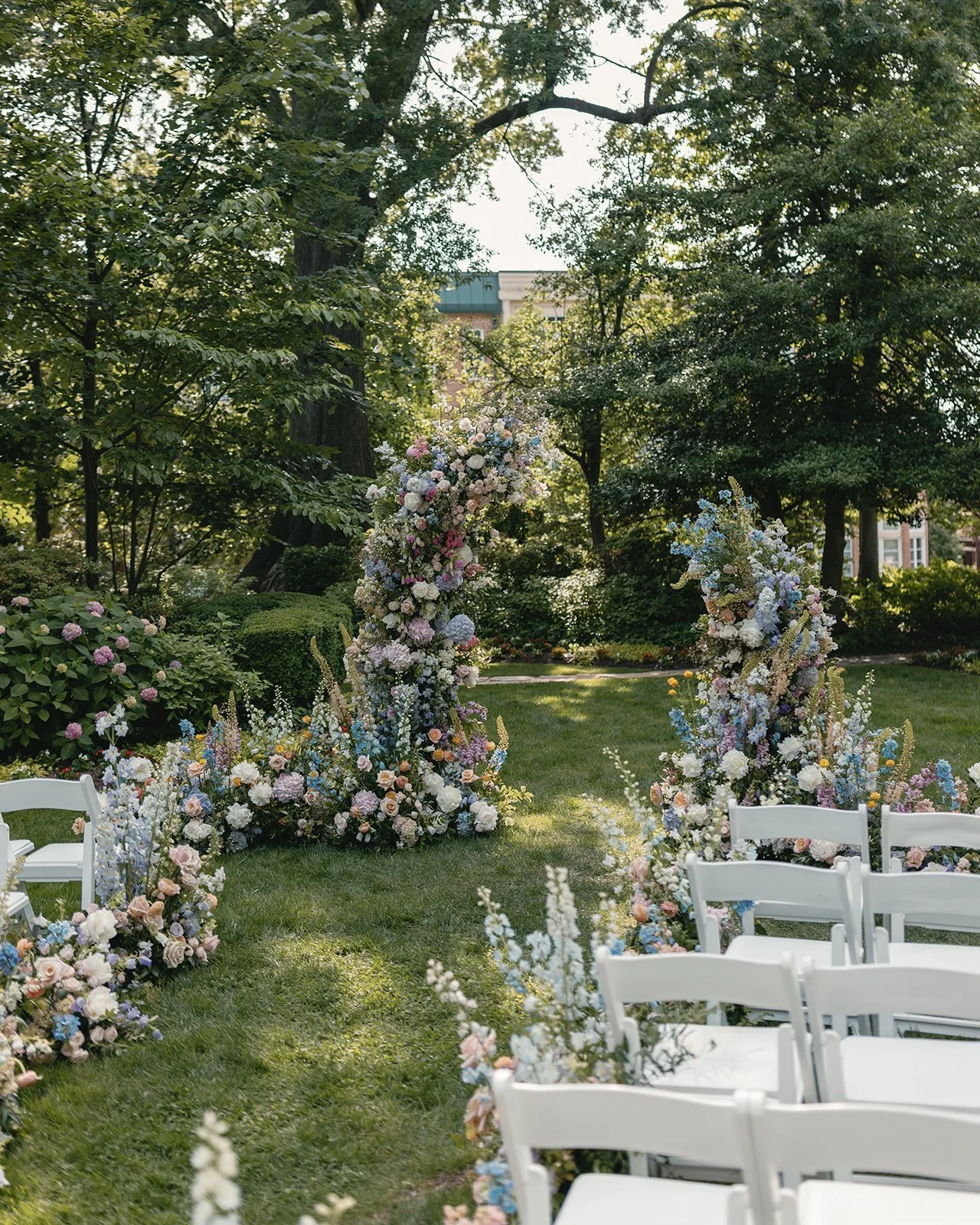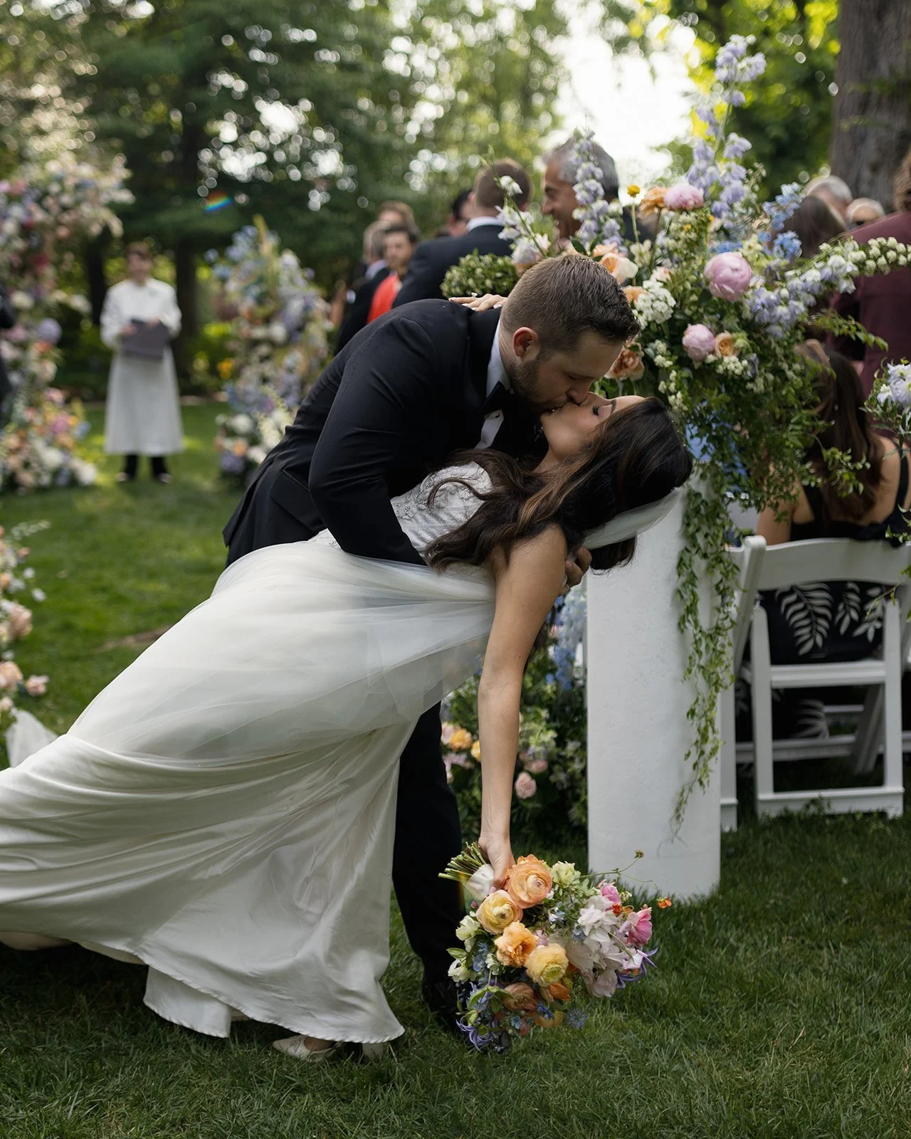 Laura + Tyler’s wedding at the Meridian House was a dreamy and romantic affair. The ceremony area was transformed into a whimsical English garden, with floral “gardens” lining the aisle, meeting the breathtaking “deconstructed” floral arch. Planning by Vieira Events and photography by Colin and Lakin.