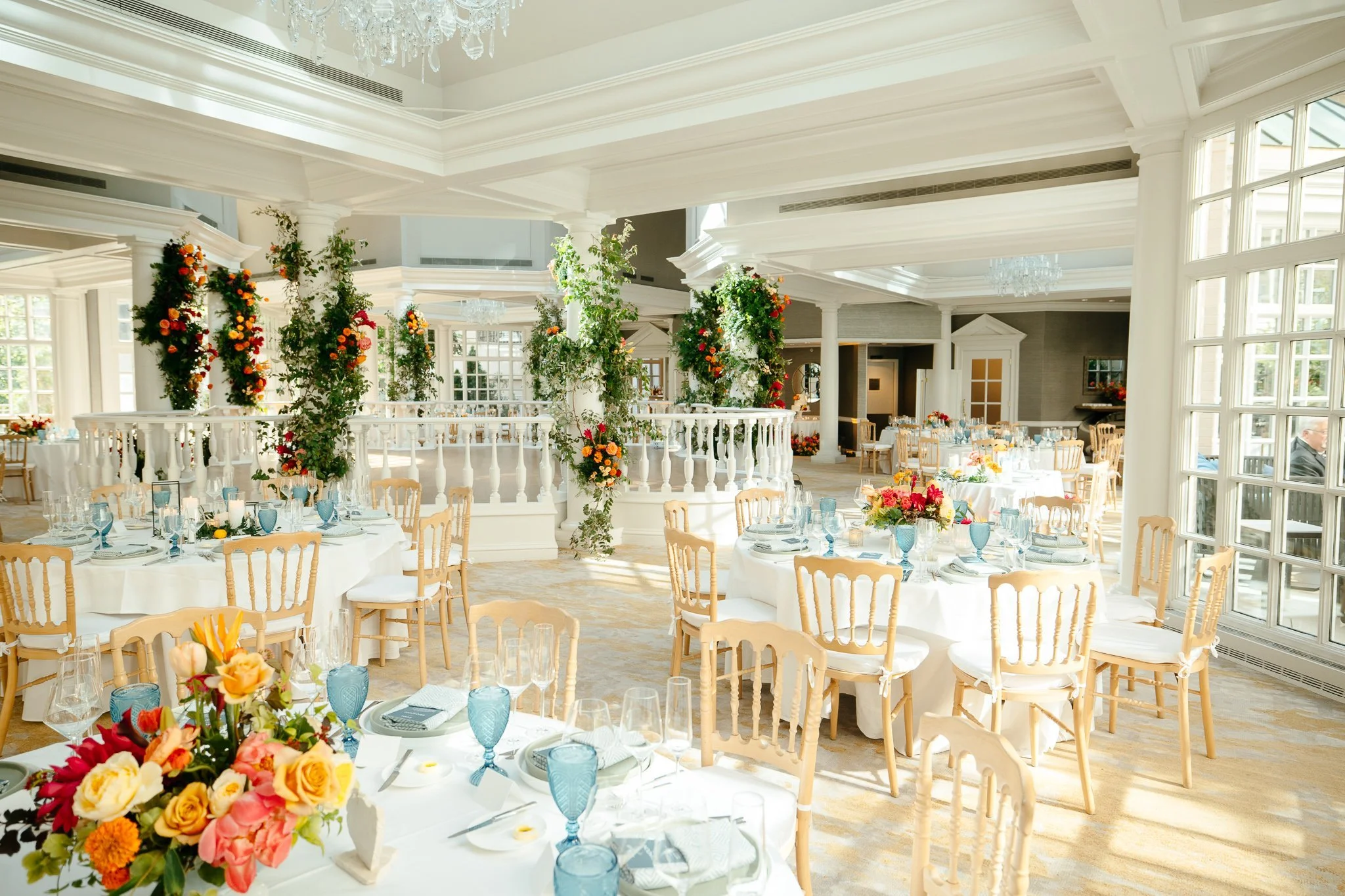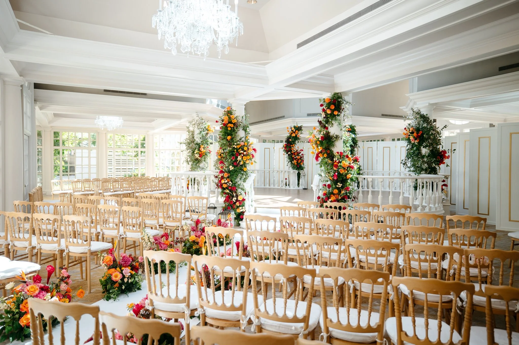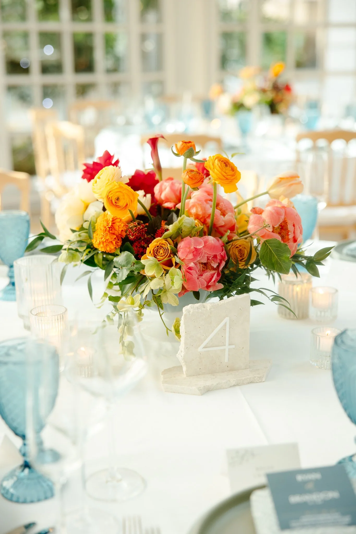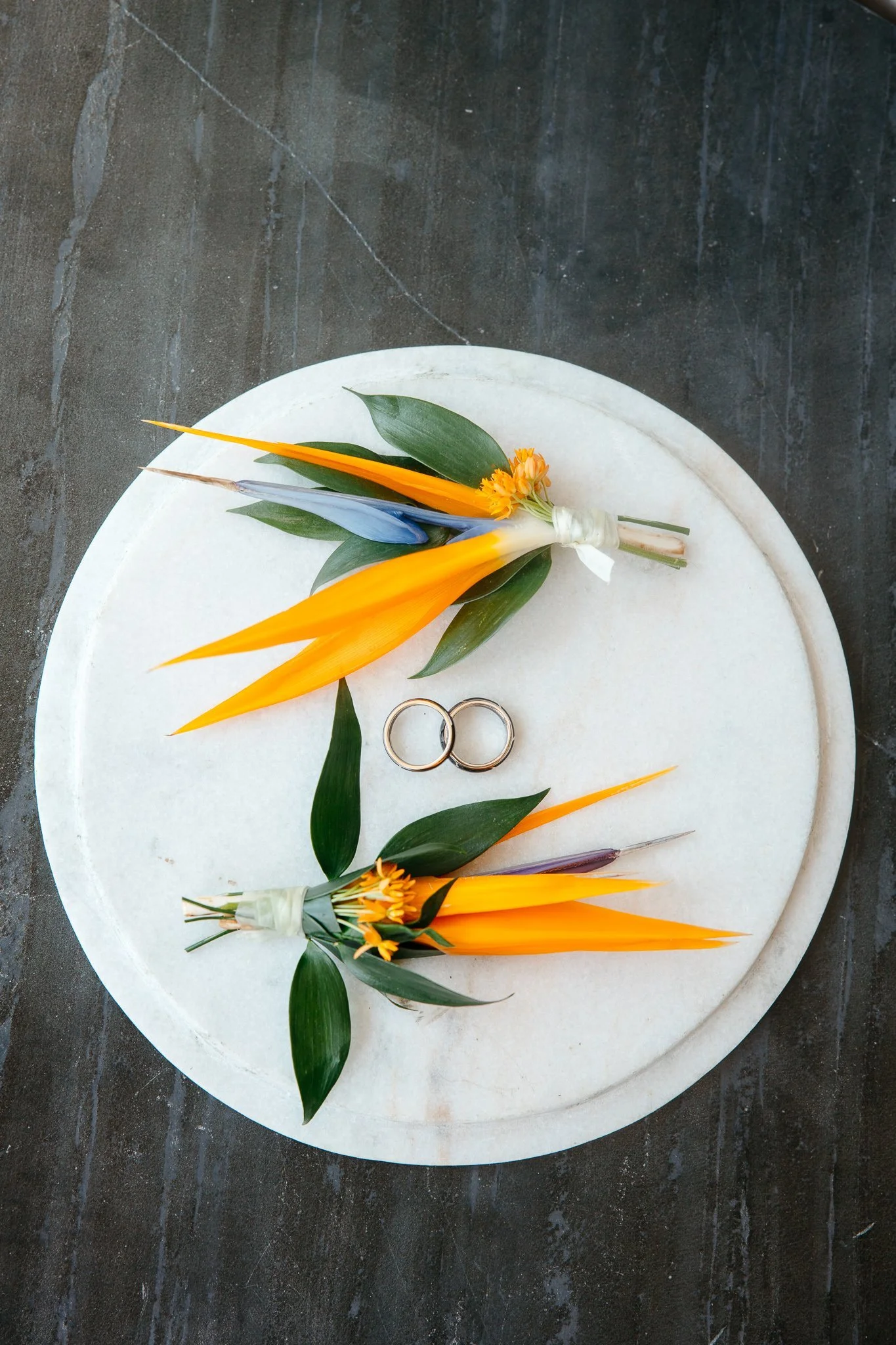 Ryan + Brandon's wedding at the Fairmont was a vibrant celebration filled with colorful blooms in shades of orange, pink, and yellow, creating a joyful and lively atmosphere. Planning by A Griffin Events and photography by Justin Kunimoto.