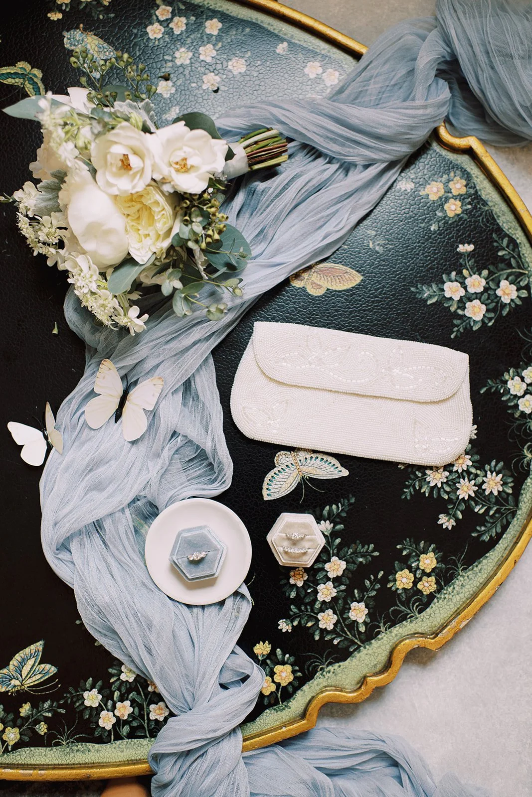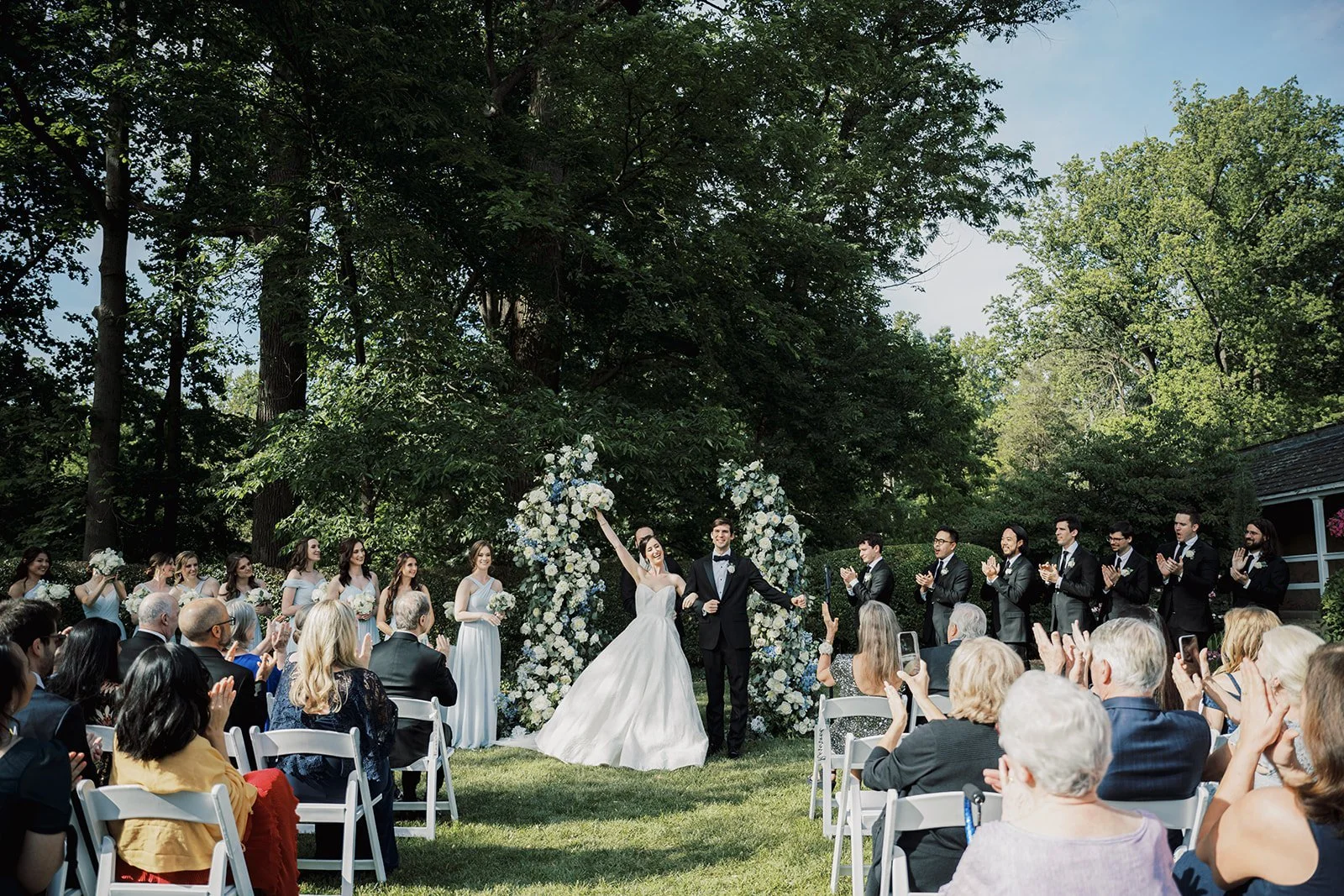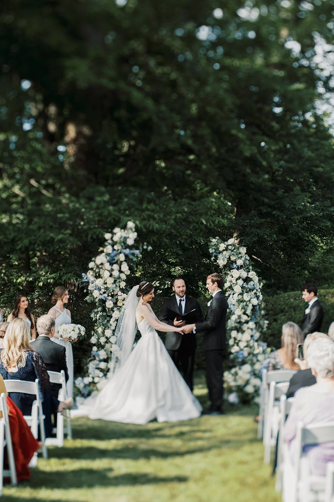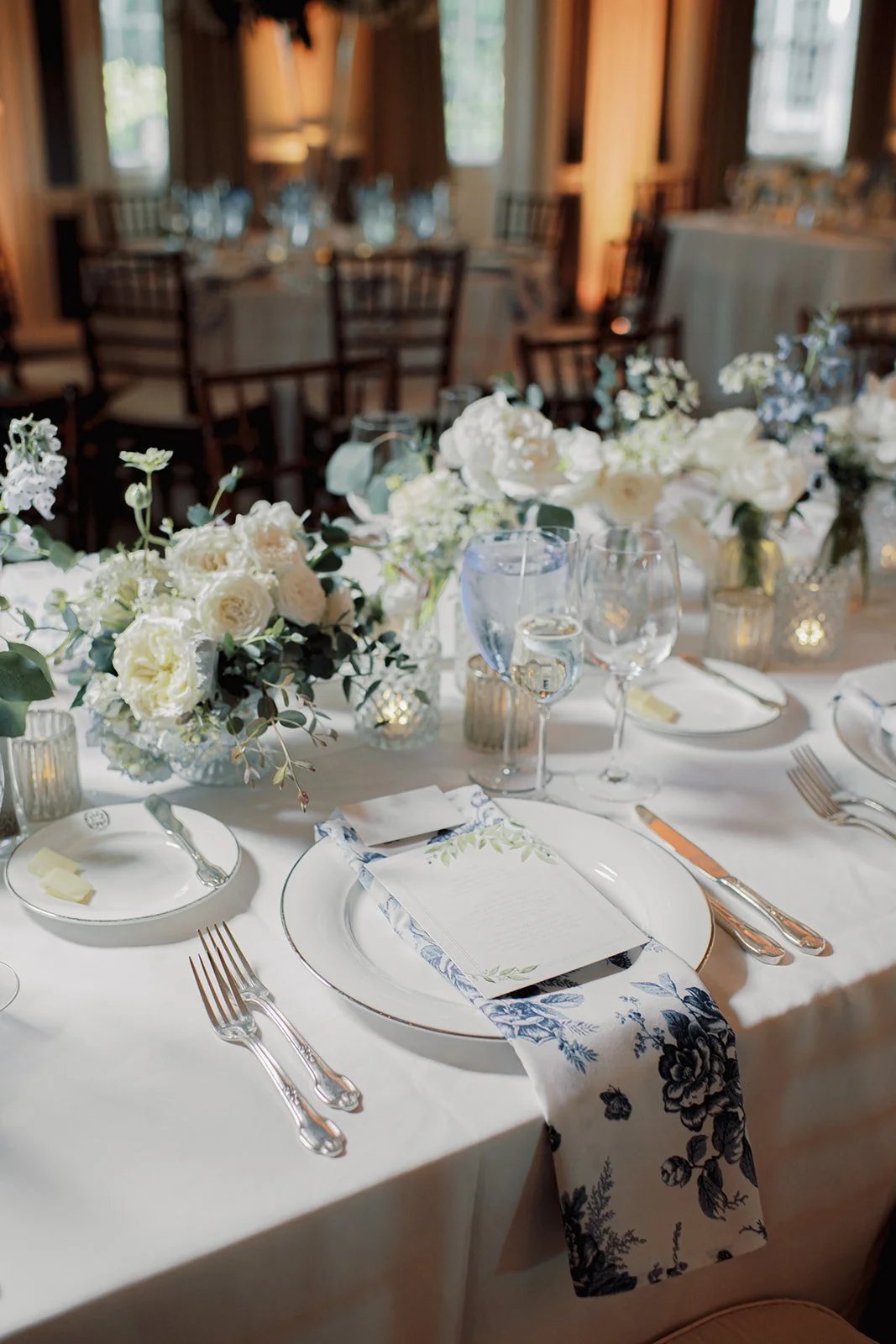 Laura and Michael’s wedding used clean white florals, mixed with fresh and textural eucalyptus and pops of blue delphinium to create a sweet yet magical night. Planning by Jillian Jenkins for Elle Ellinghaus Co and photography by L. Hewitt.