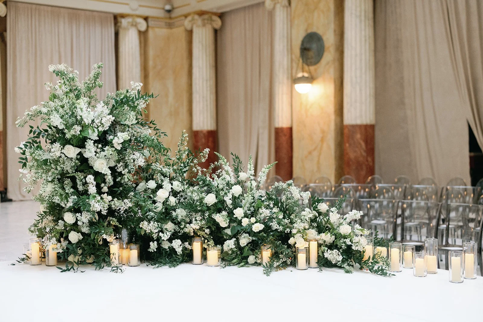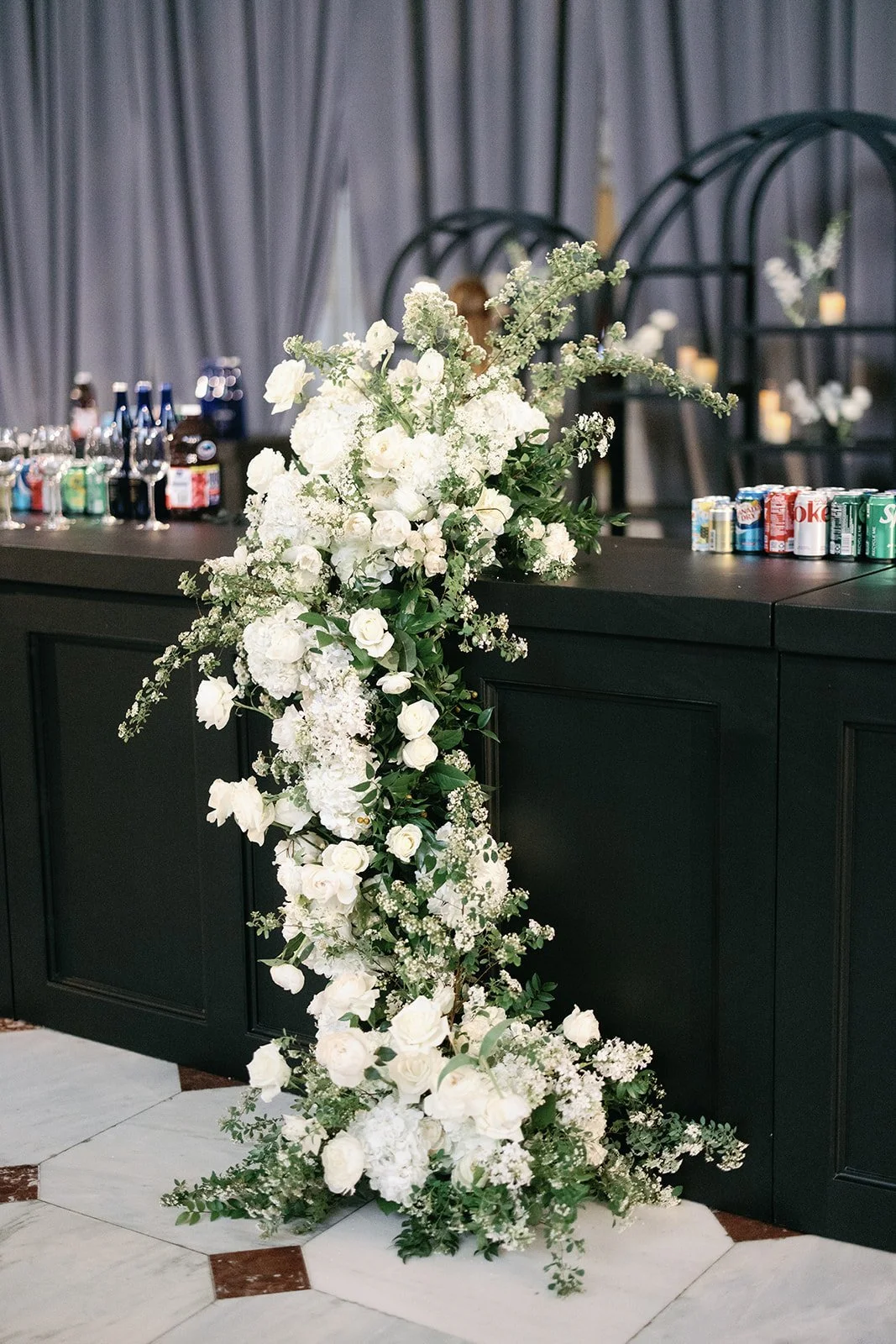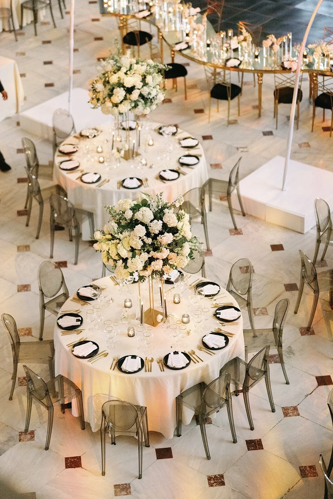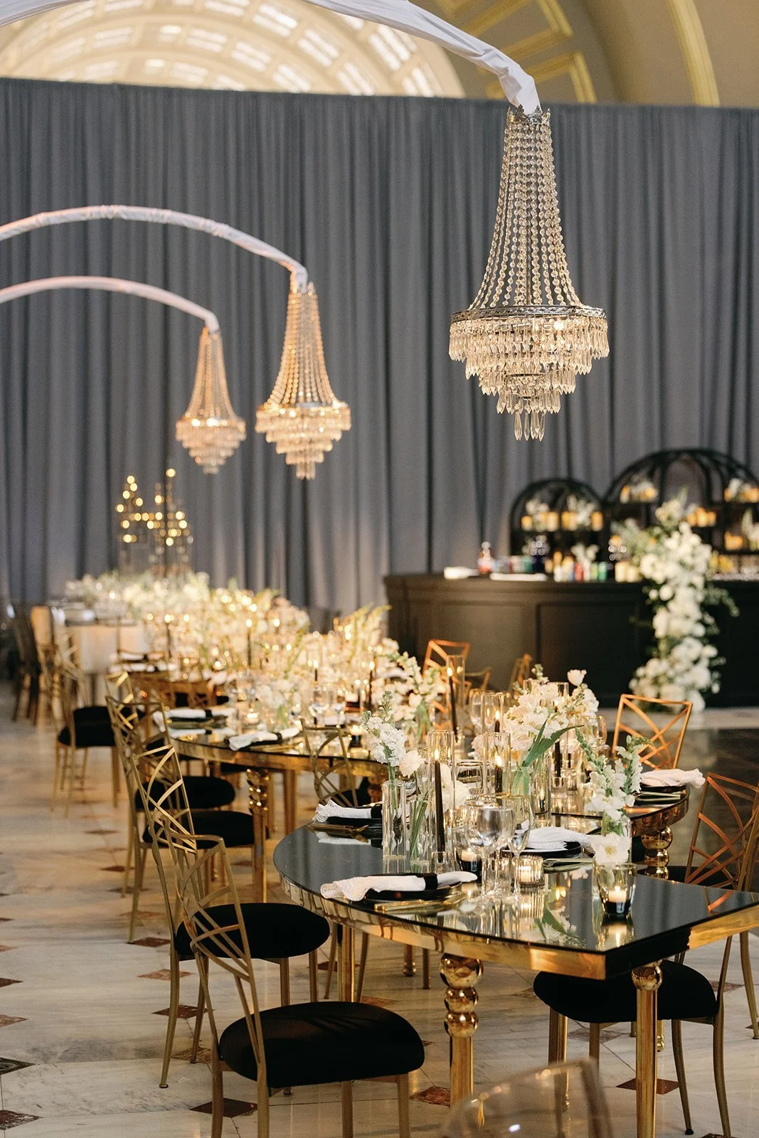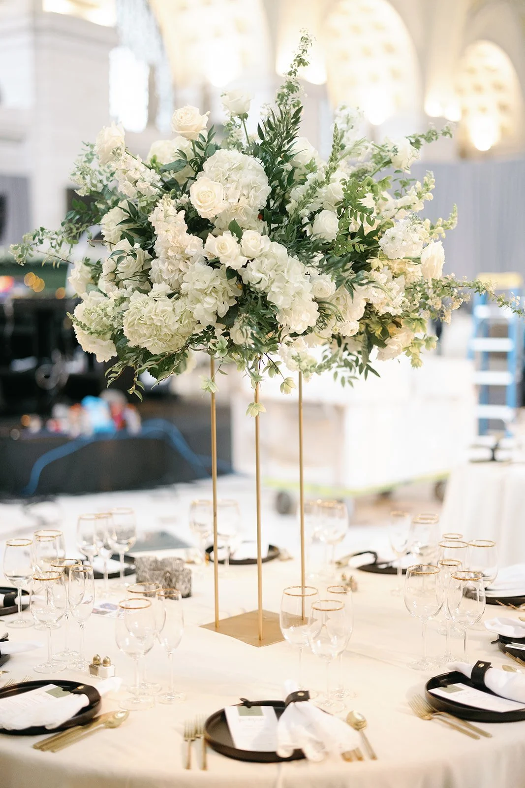 Abbey + Aakash's reception at Union Station was an unforgettable evening filled with elegance and charm. The lush white and green floral arrangements added a touch of natural beauty, perfectly complementing the grandeur of the venue. Planning by CG & CO Events and photography by Akbar Sayed.