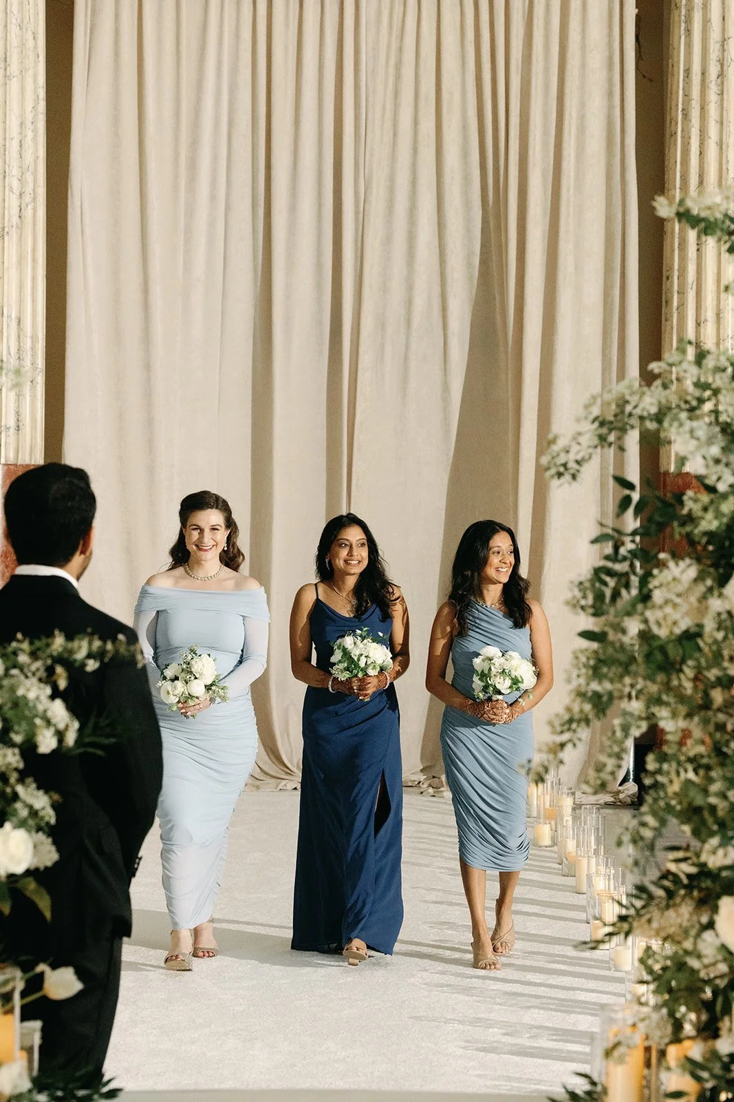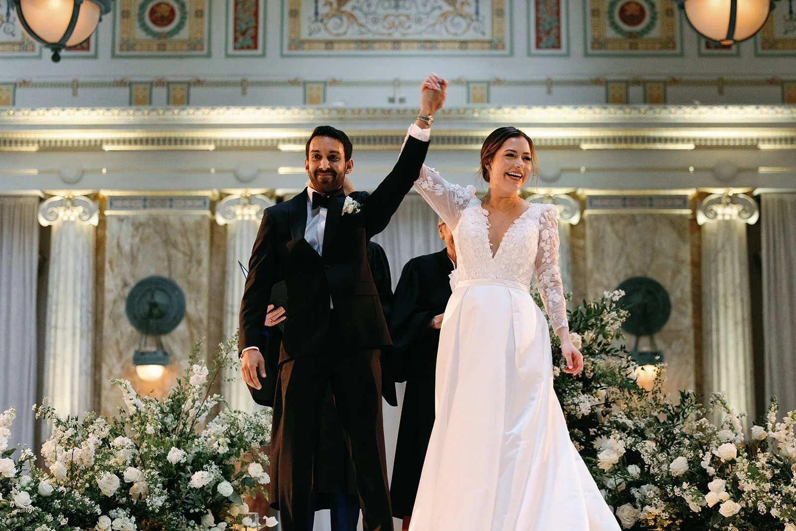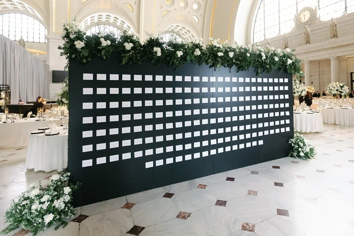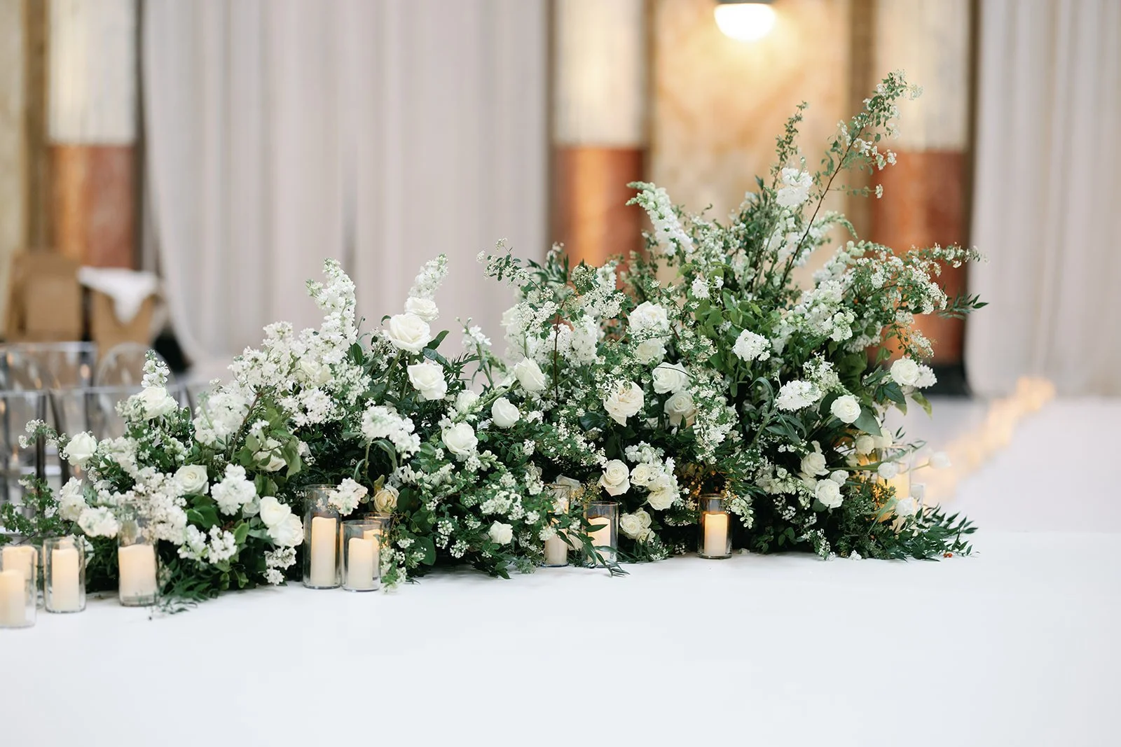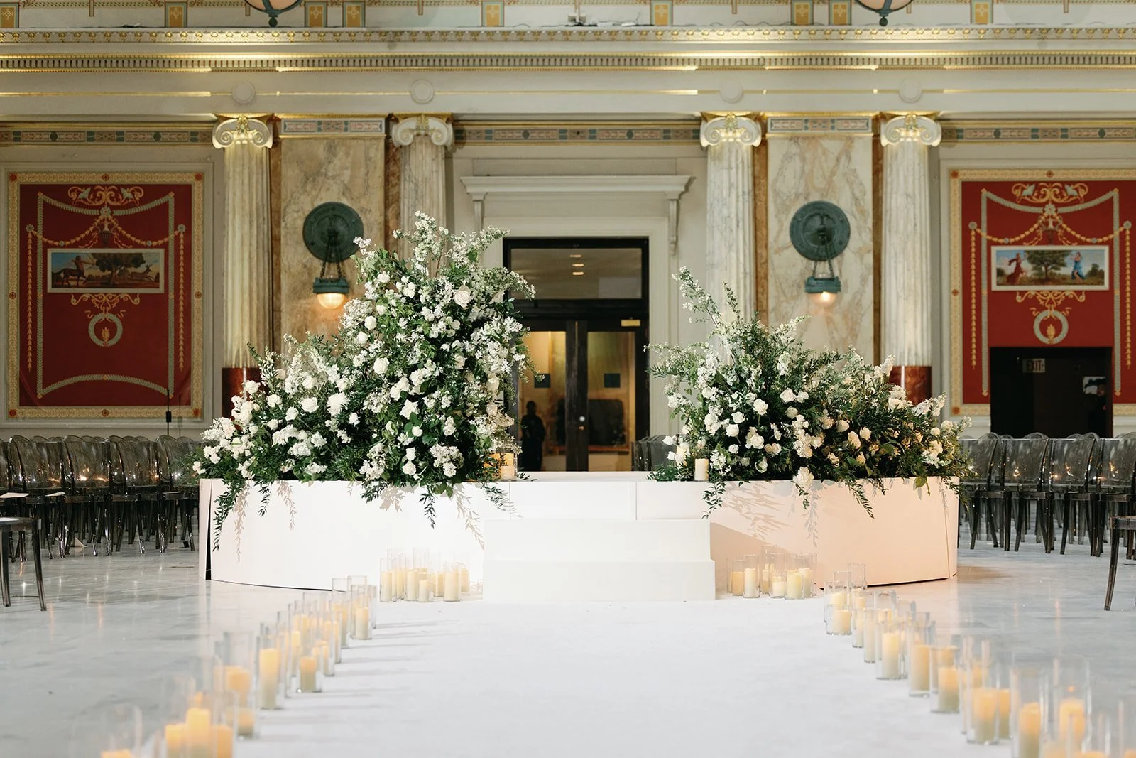 Abbey + Aakash's reception at Union Station was an unforgettable evening filled with elegance and charm. The lush white and green floral arrangements added a touch of natural beauty, perfectly complementing the grandeur of the venue. Planning by CG & CO Events and photography by Akbar Sayed.