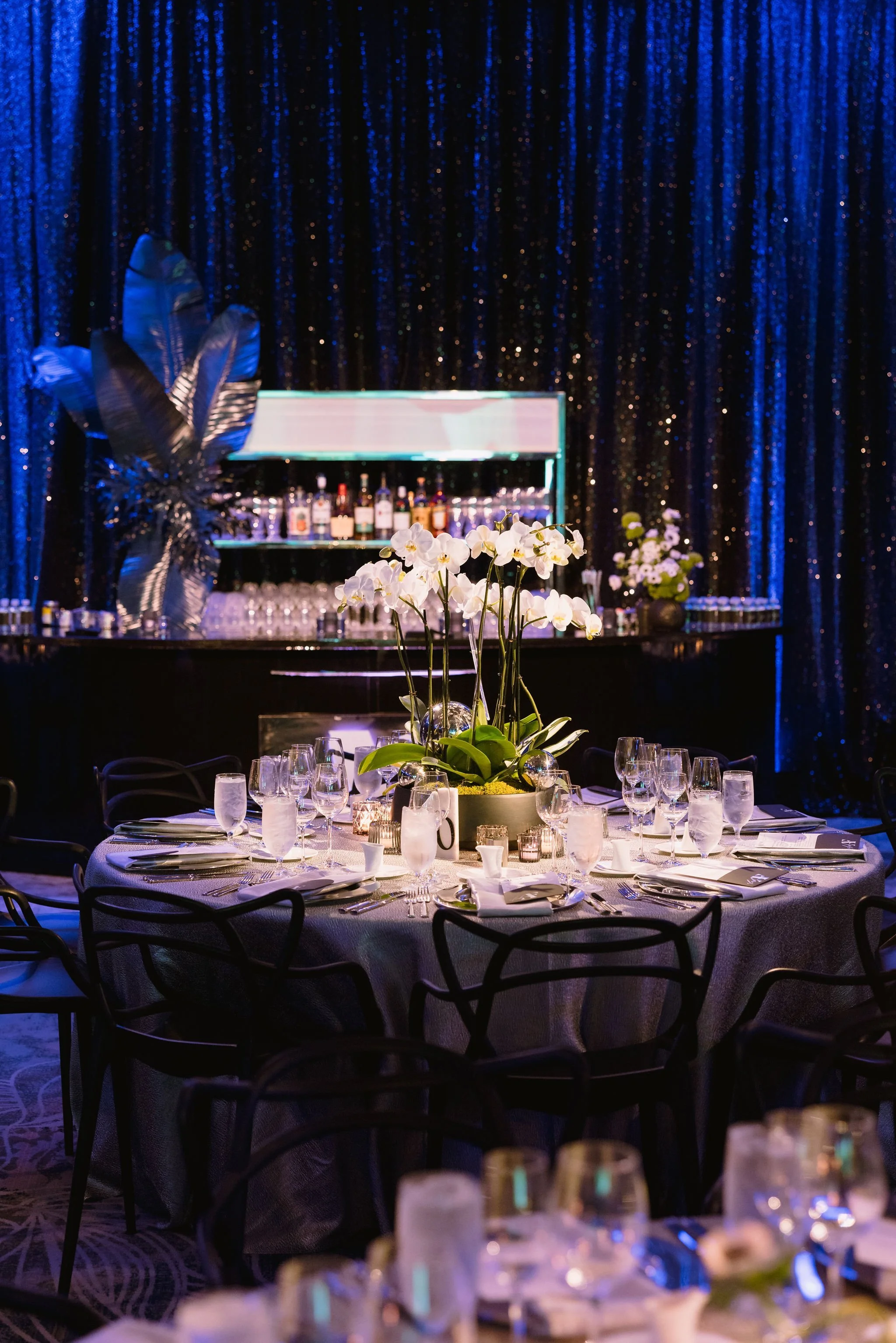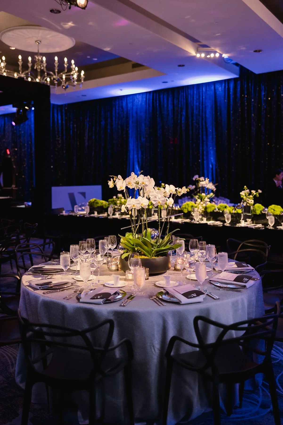 This chic and sophisticated Bar Mitzvah at the Four Seasons Hotel featured elegant white orchids, anemones and mixture of vibrant green leaves, creating a sleek and contemporary ambiance perfect for the special occasion. Planning by Magnolia Bluebird and photography by Theo Milo Photography.