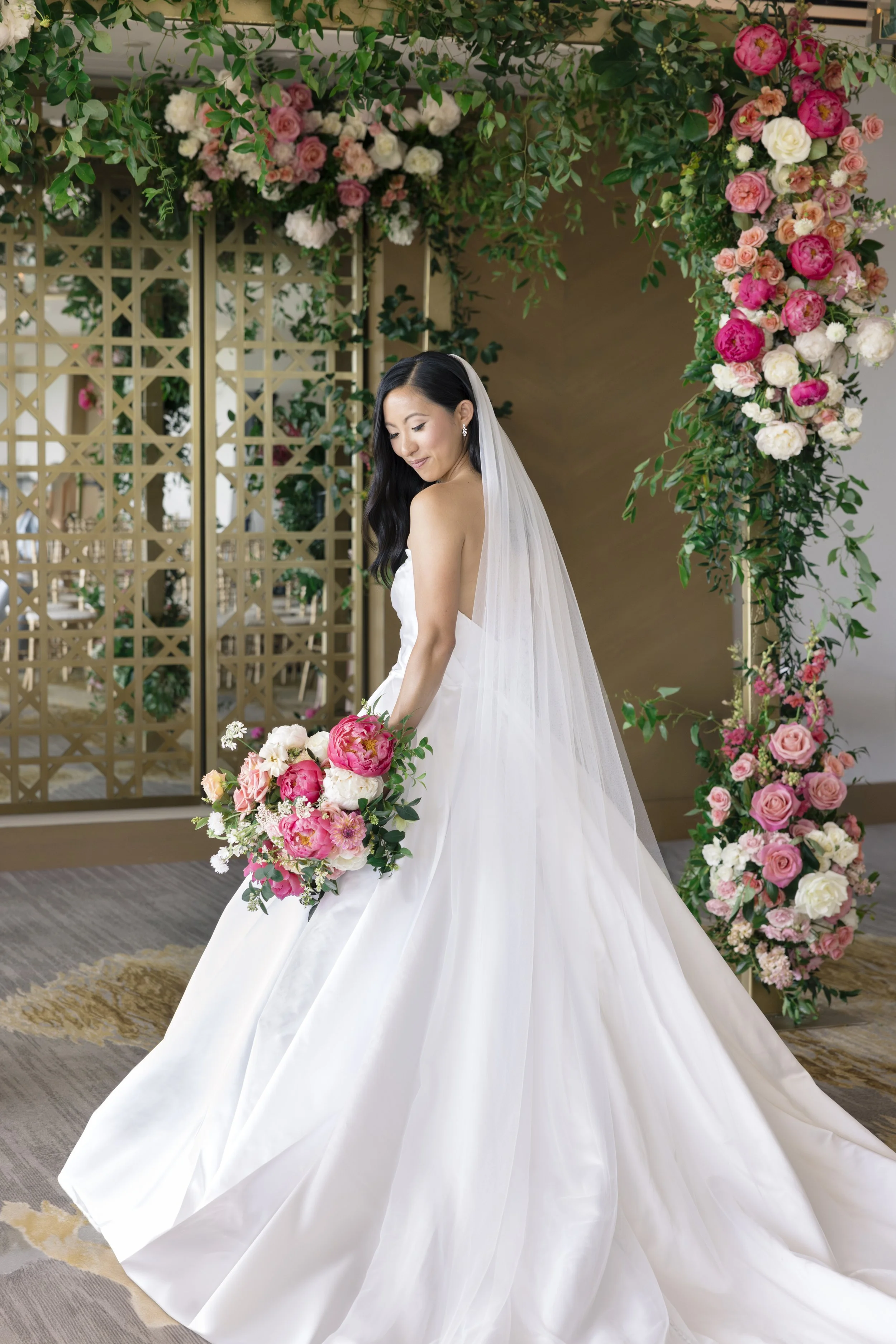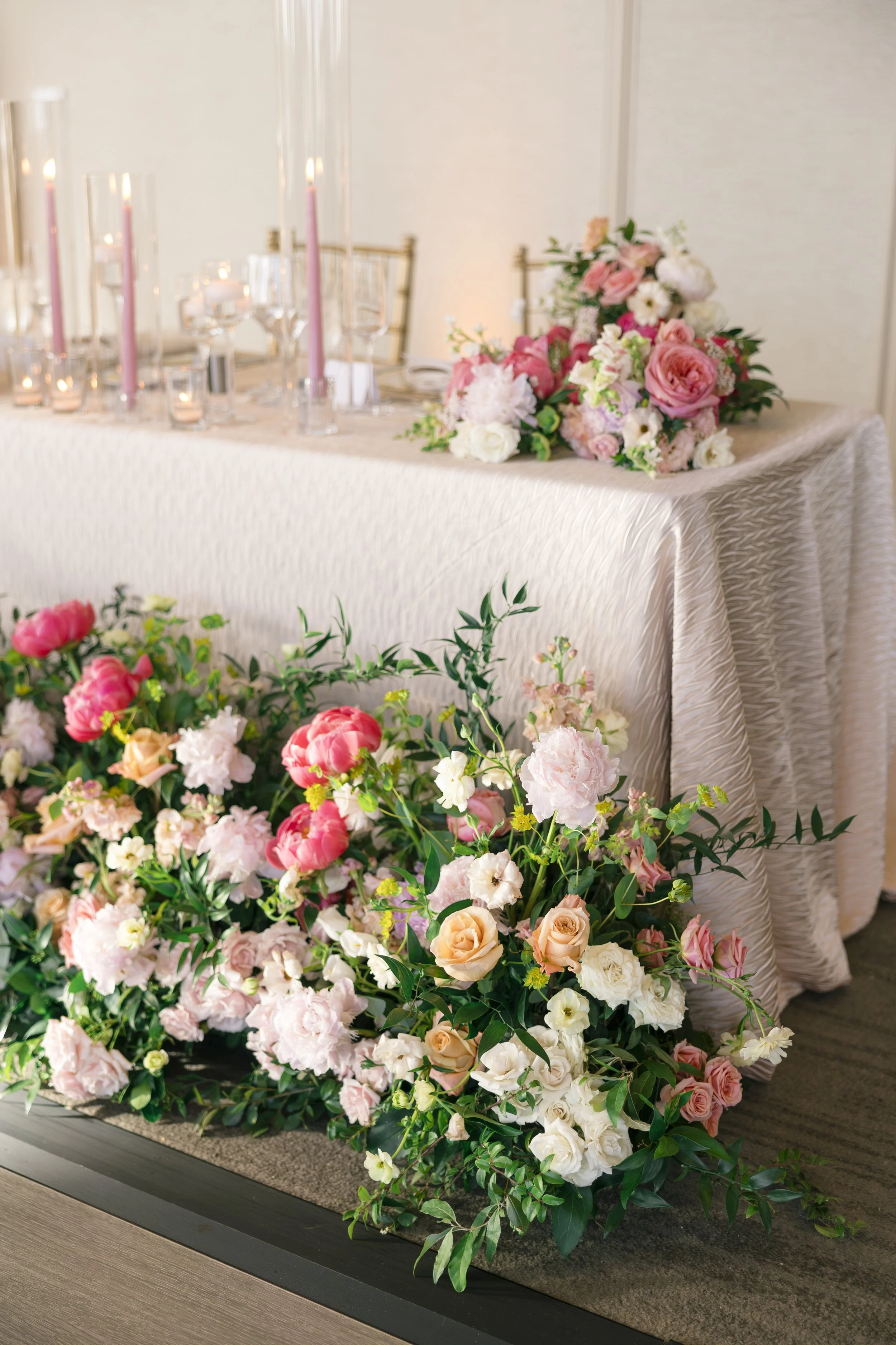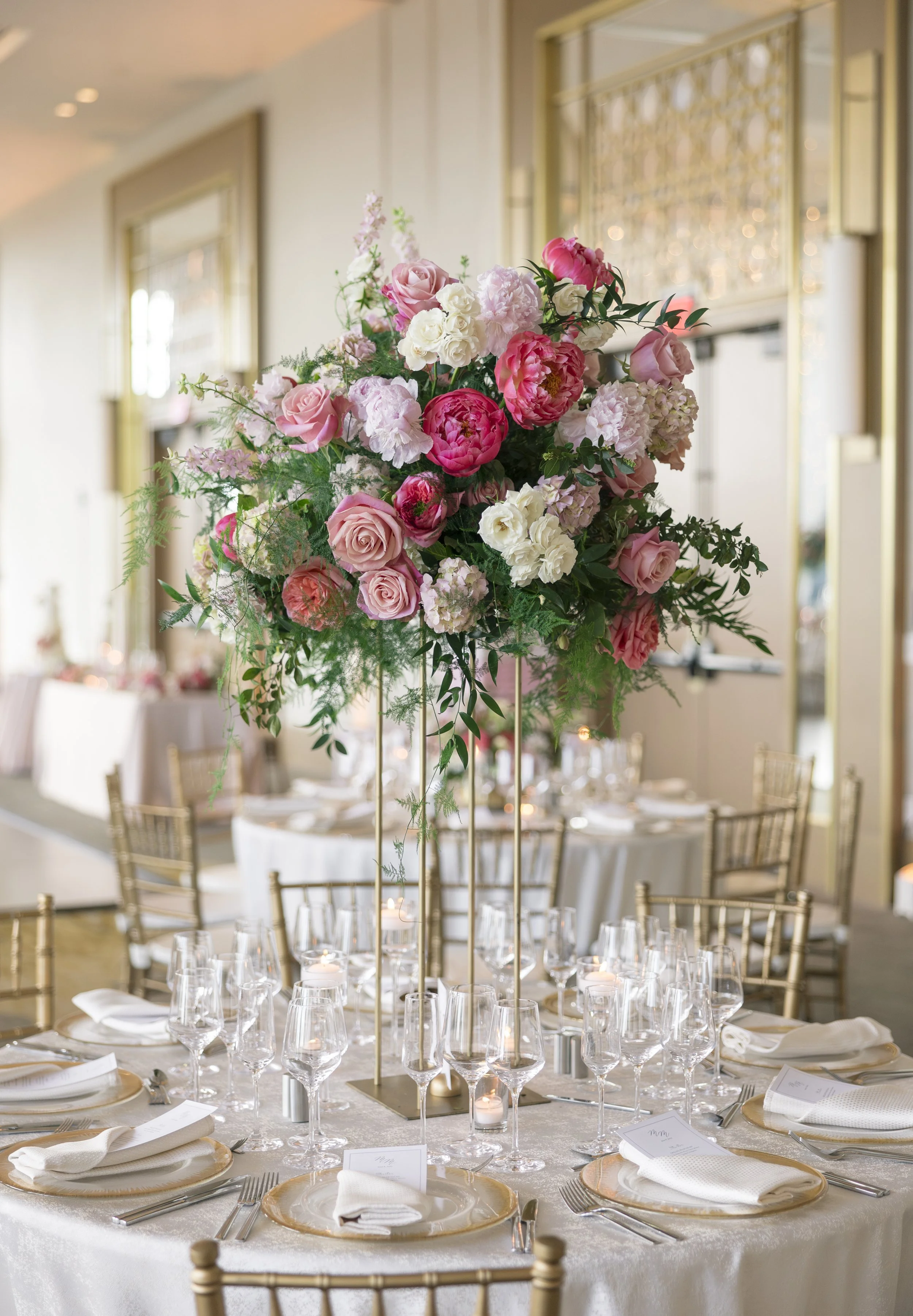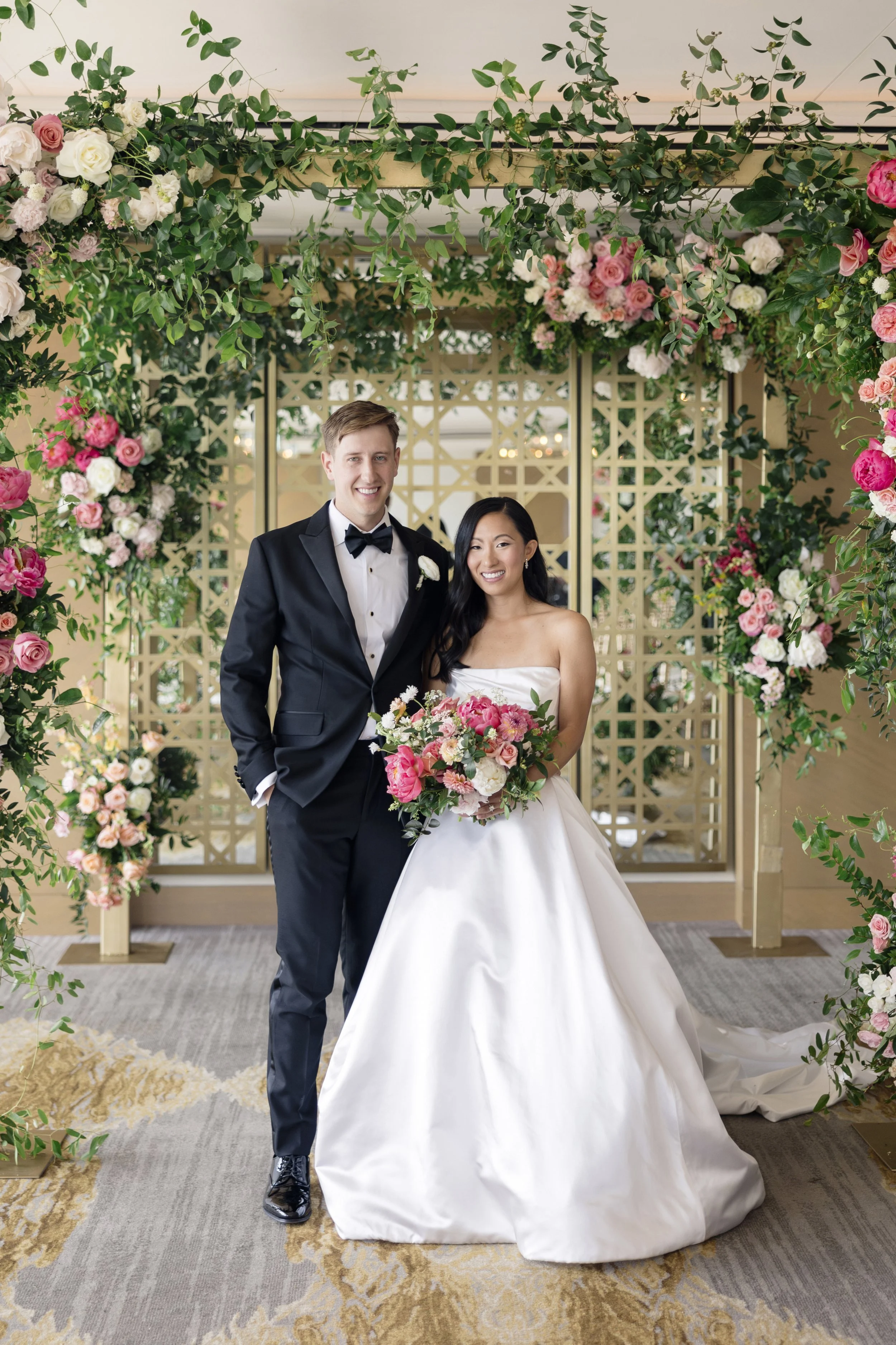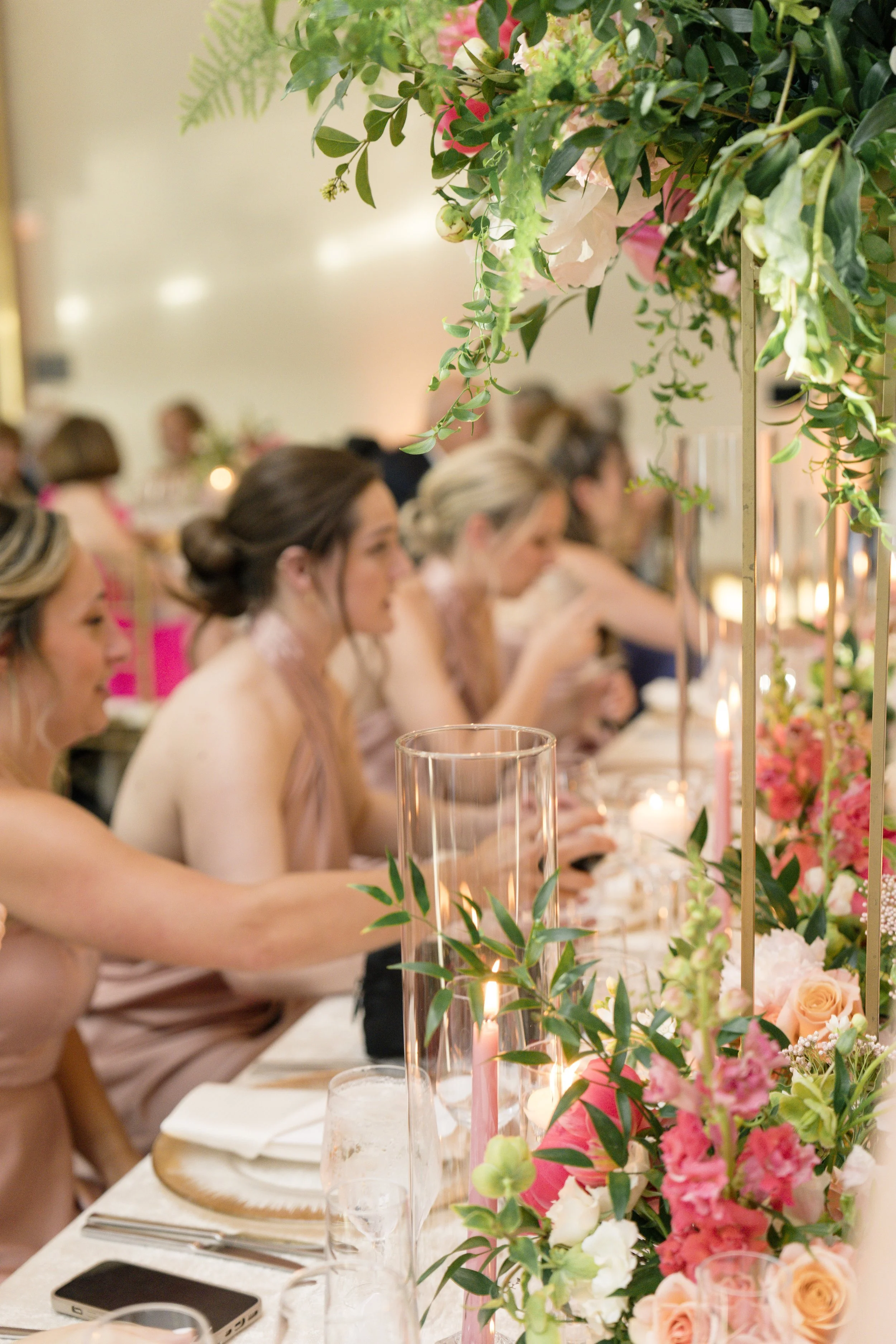 Maddie + Matthew’s wedding at IHG Wharf displayed vibrant and soft pinks creating a romantic and elegant atmosphere. Planning by Ellie Belle Events and photography by Anna Schmidt Photography.