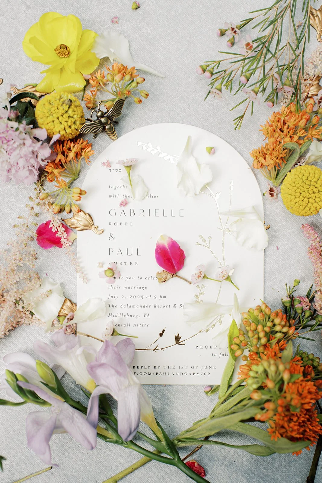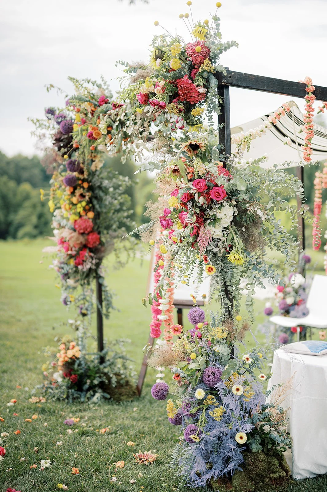 Gaby and Paul’s lively and vibrant wedding transformed The Salamander Resort by bringing a truly magical and whimsical atmosphere to the ceremony. We used dry elements to accent the seasonal blooms that adorned the chuppah. Planned by ECT Coordinator and beautifully photographed by Fine Art Wedding Film .
