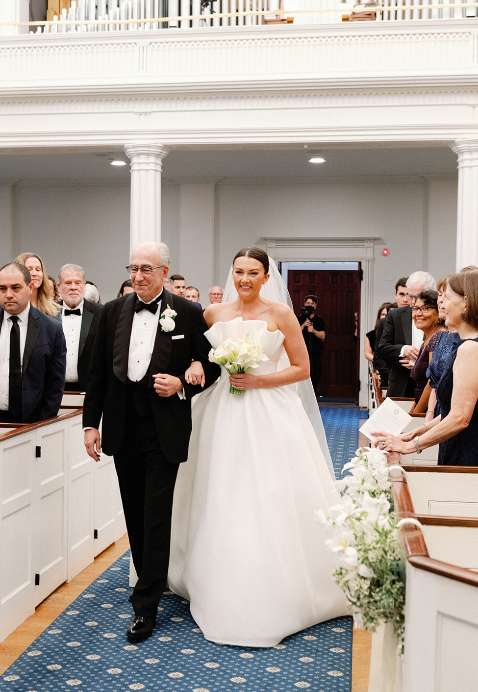 At Julia and Fran’s wedding, we embraced a timeless blend of white flowers, champagne tones and rich fall foliage. The classic white blooms were complemented by warm champagne accents while lush greenery added vibrancy and contrast. The result was an elegant and sophisticated feel that brought both modern grace and natural freshness to the autumn celebration. Planning by Pamela Barefoot Events & Design and photography by Liz Fogarty.