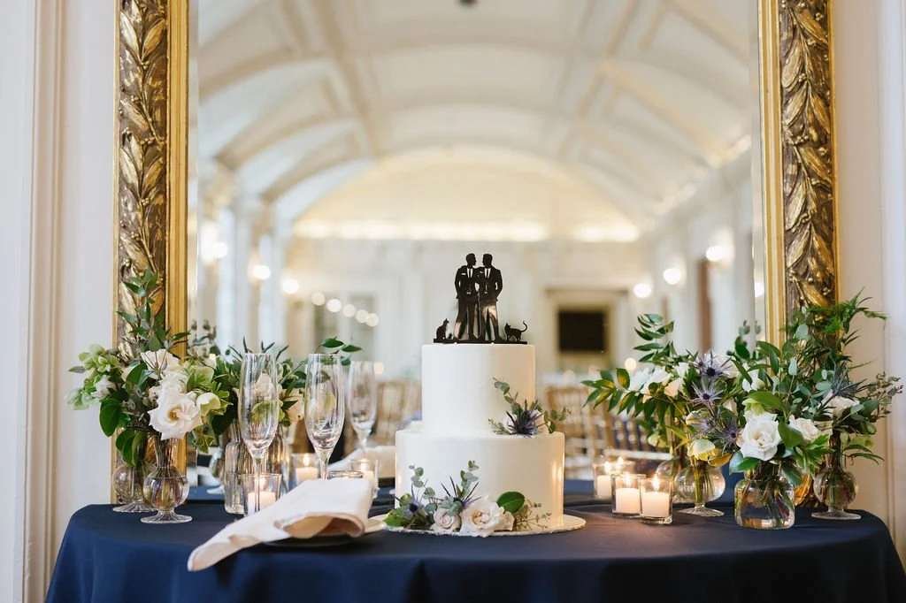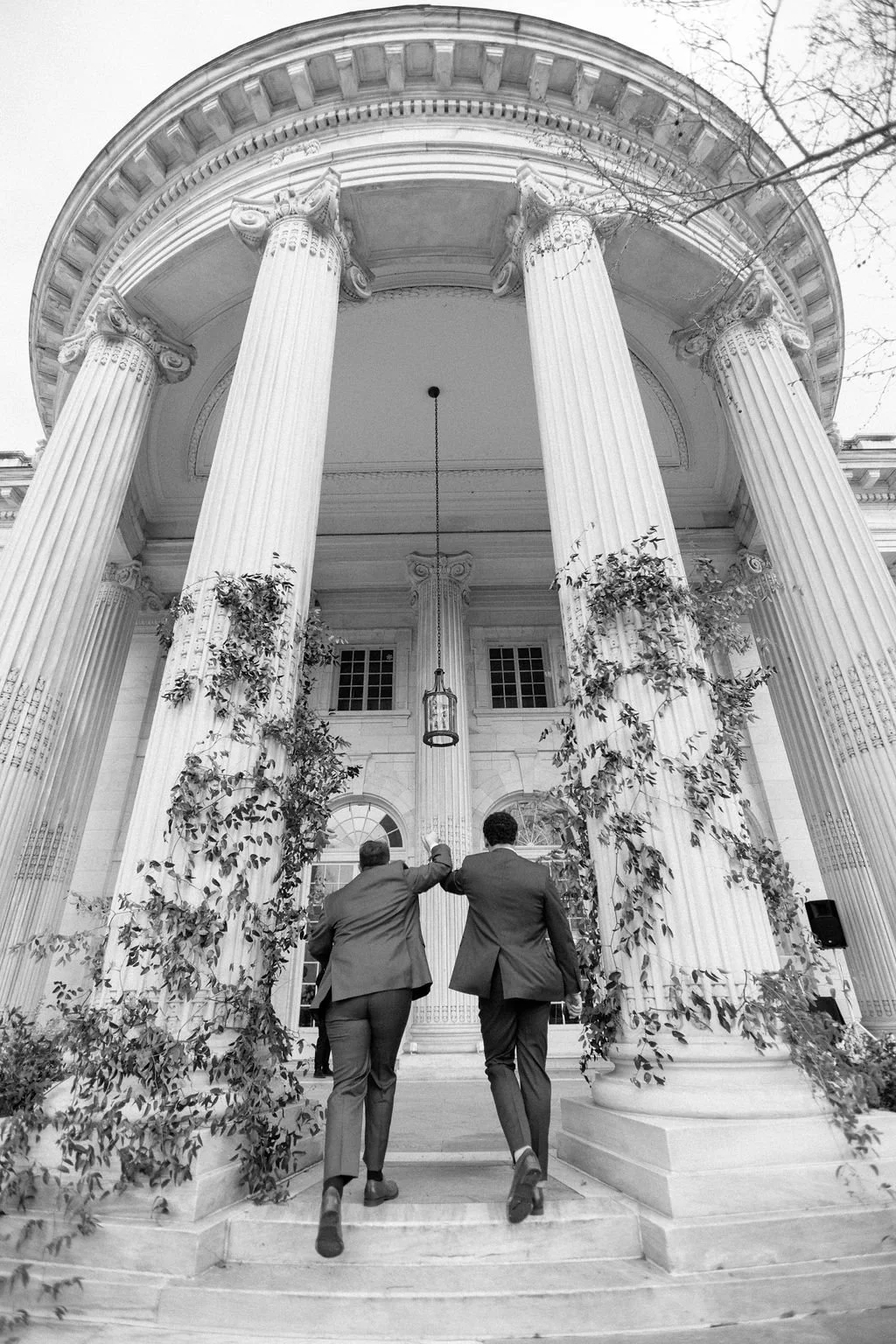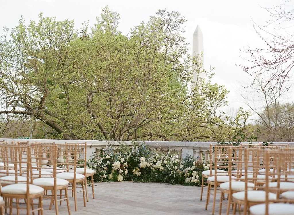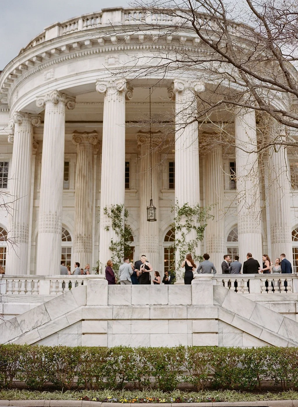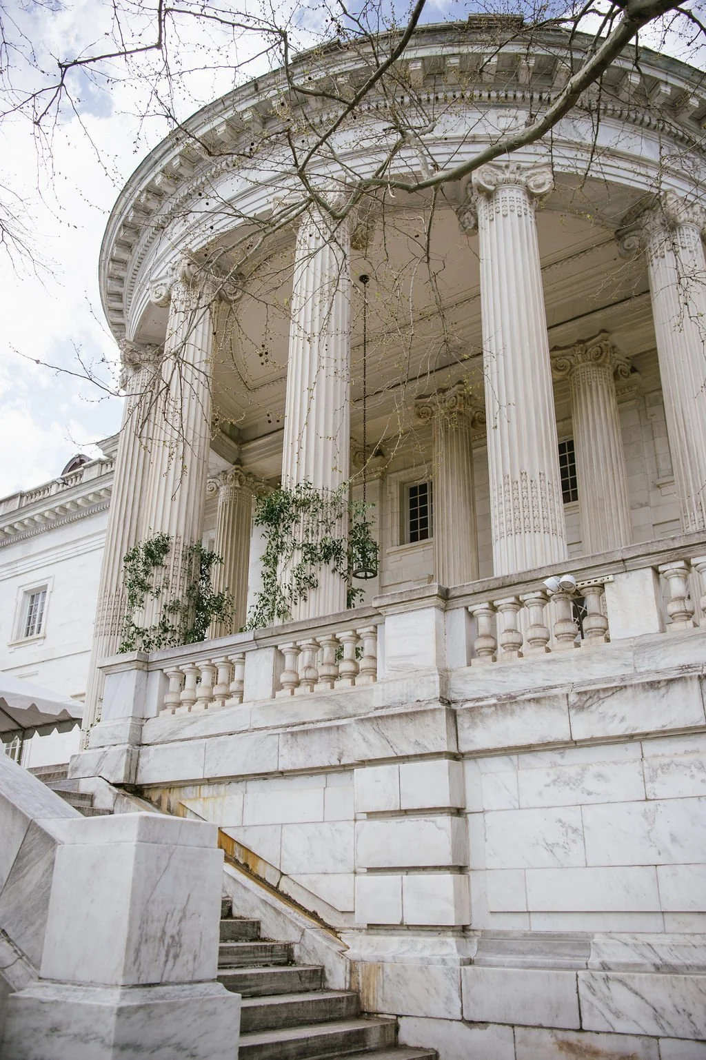 John and Adams’ sweet day was accented with winding greenery up the tall, stately columns in front of the DAR. They danced the night away with their nearest and dearest, surrounded by lush florals. Planning by Just a Little Ditty and photography by Jen Fariello Photography .