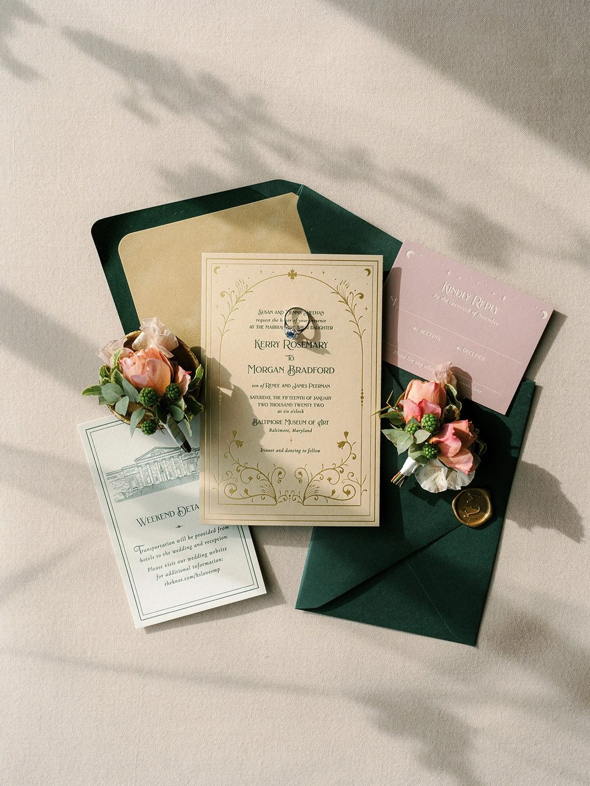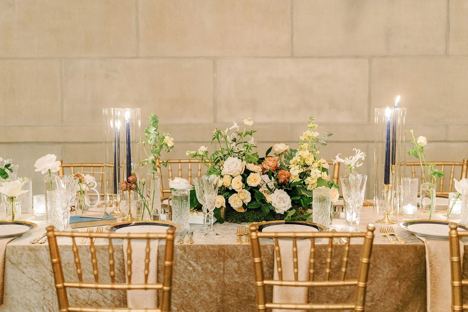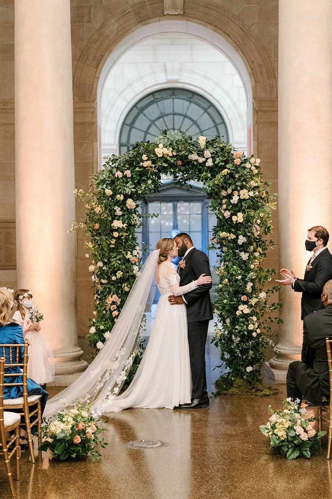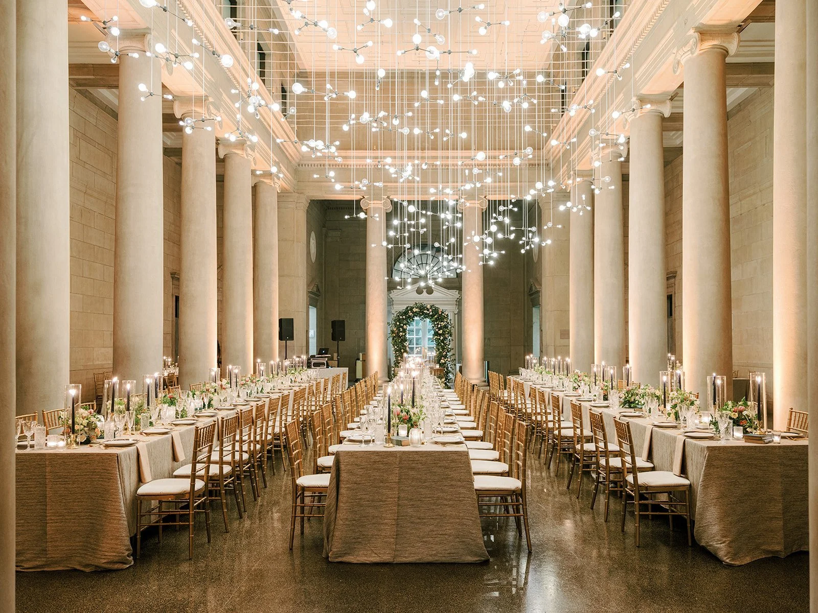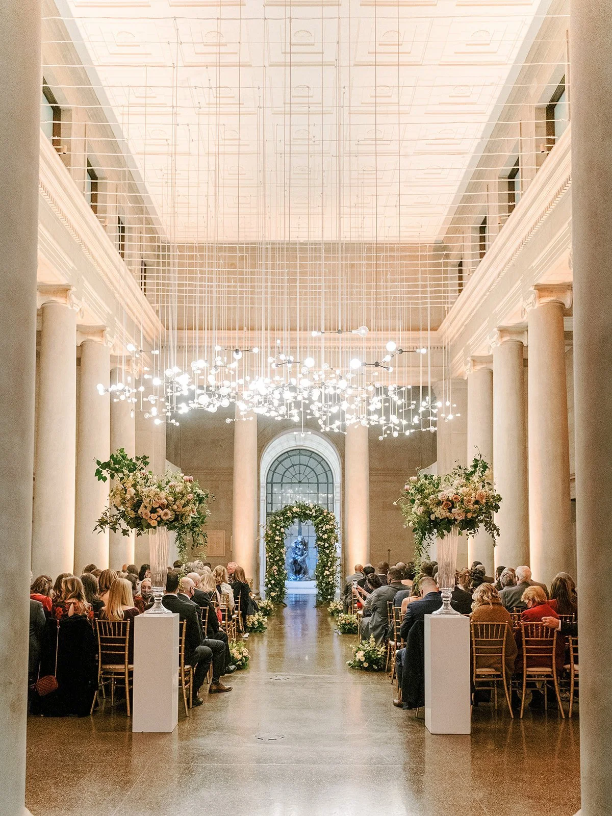 Kerry and Morgan’s whimsical wedding day at the Baltimore Museum of Art used shades of clay, cappuccino, and cream to create of a romantic feeling set in a grand and modern space. Planning by East Made Co. and photography by Stetten Wilson.