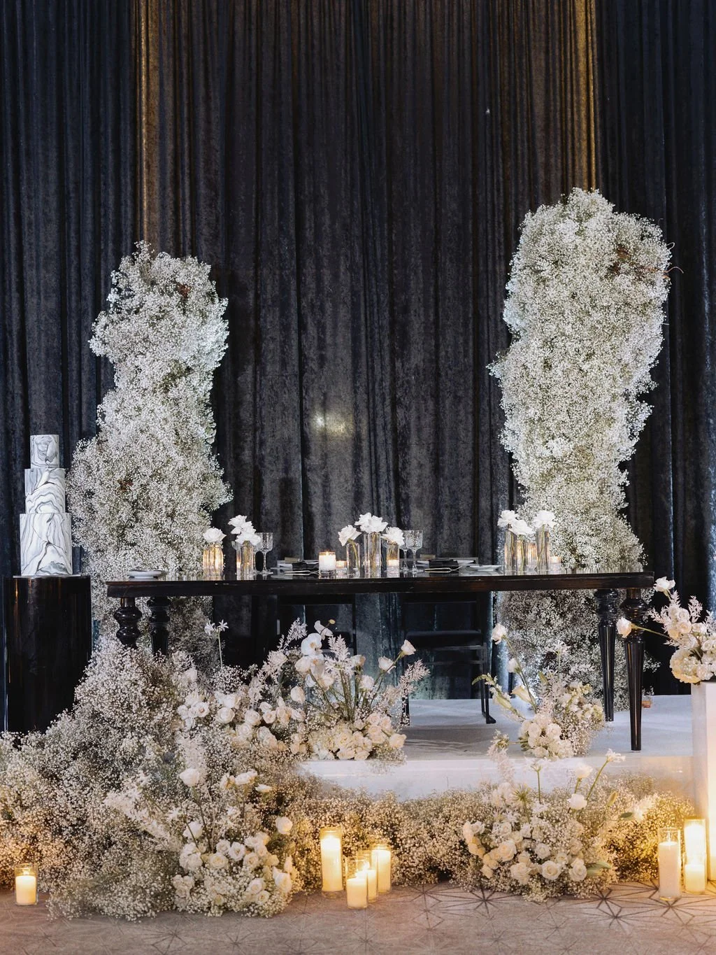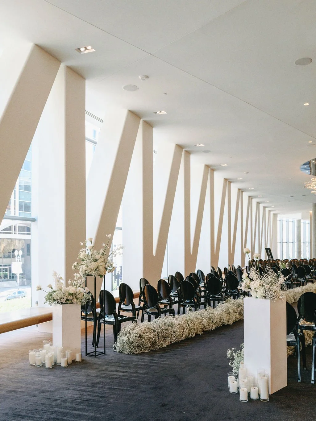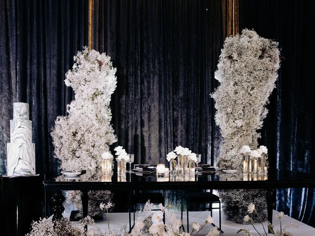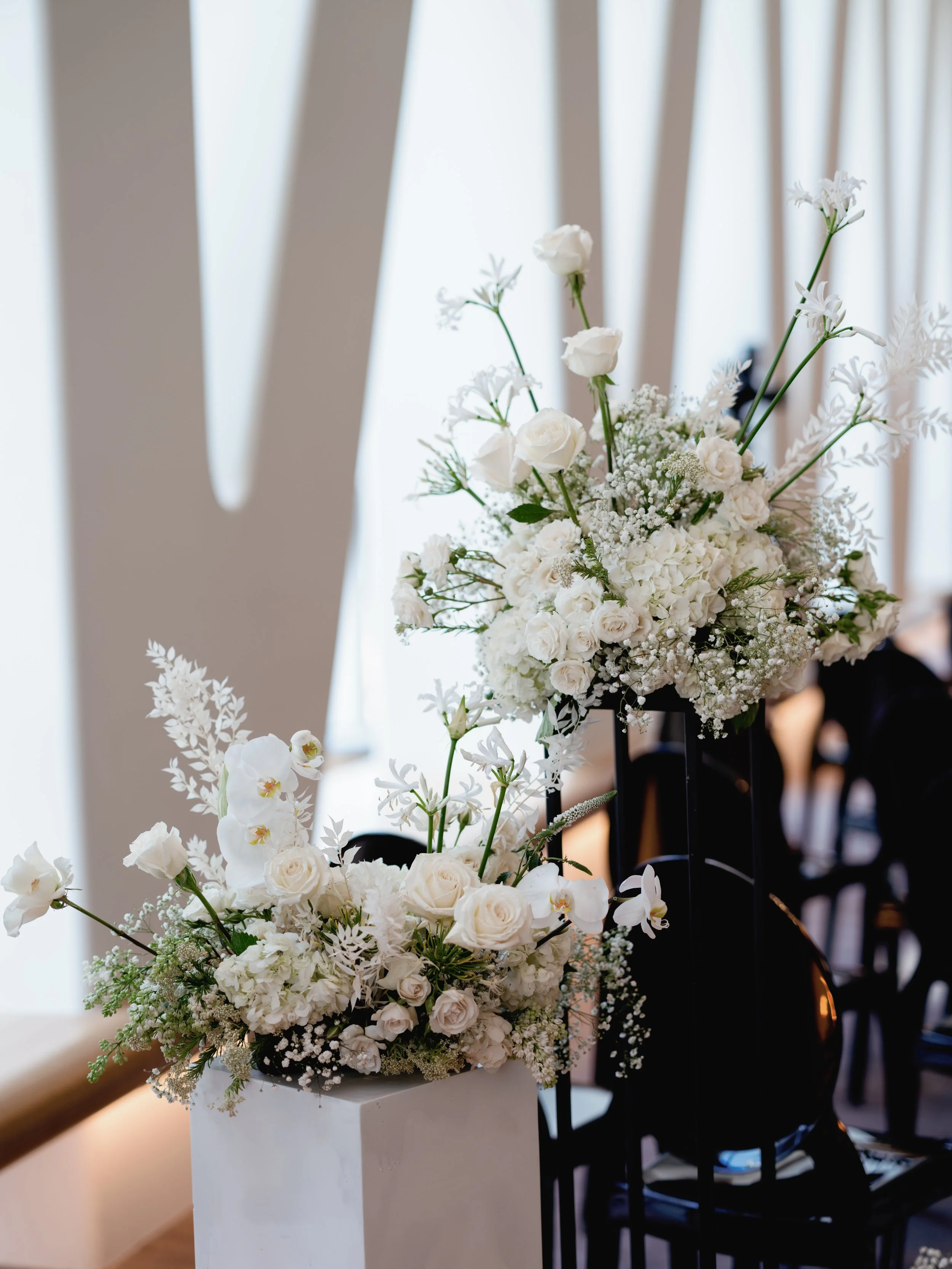 Ashley and Ethan held an incredibly romantic and glamorous affair at the Conrad in Washington, DC early this spring. Their fresh take on baby’s breath was so fun for us and we loved being able to create big fluffy clouds lined their aisle, mixed with white roses, orchids and anemones. Planning by Yodit Gebreyes Endale and photography by Lynn Dunston.