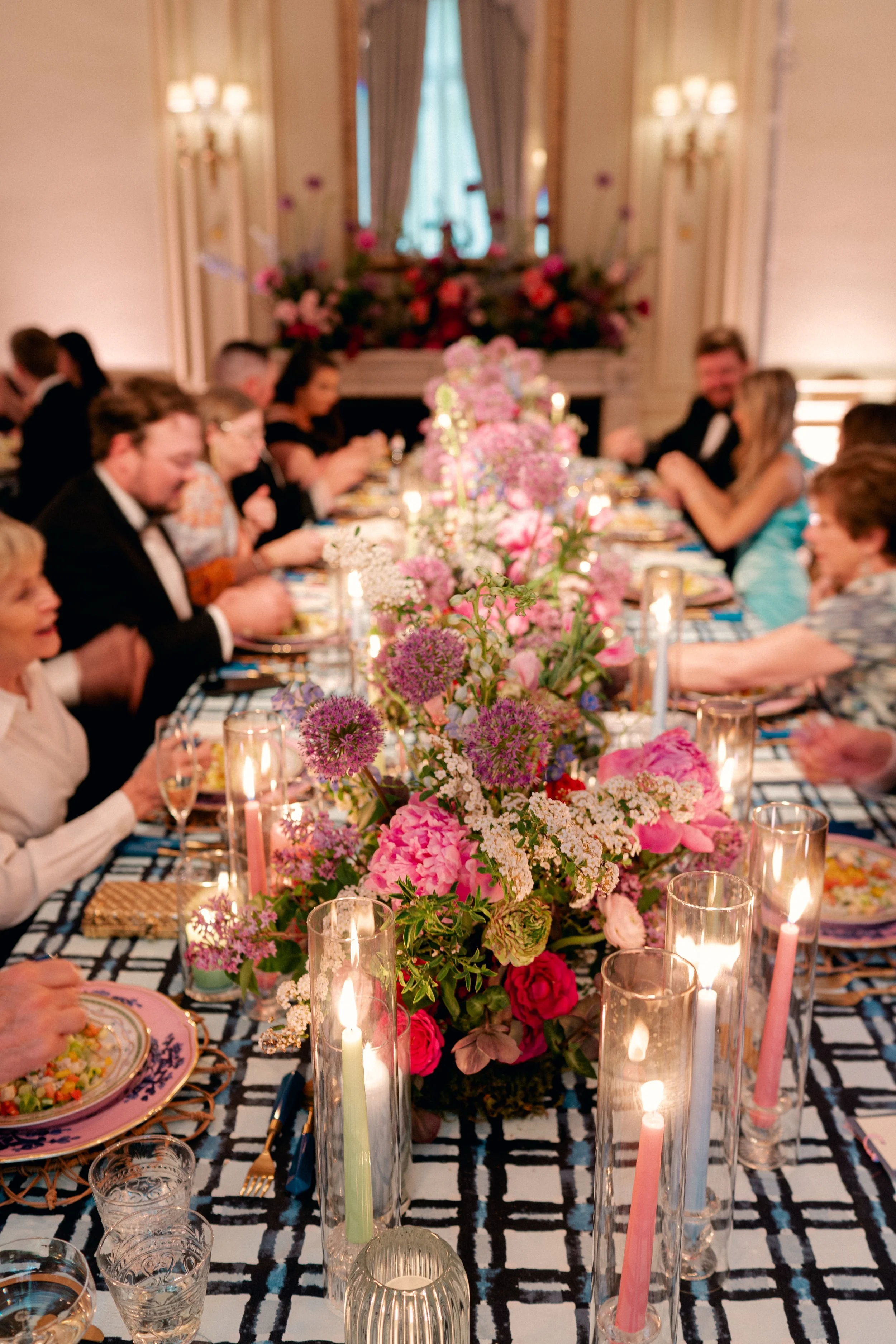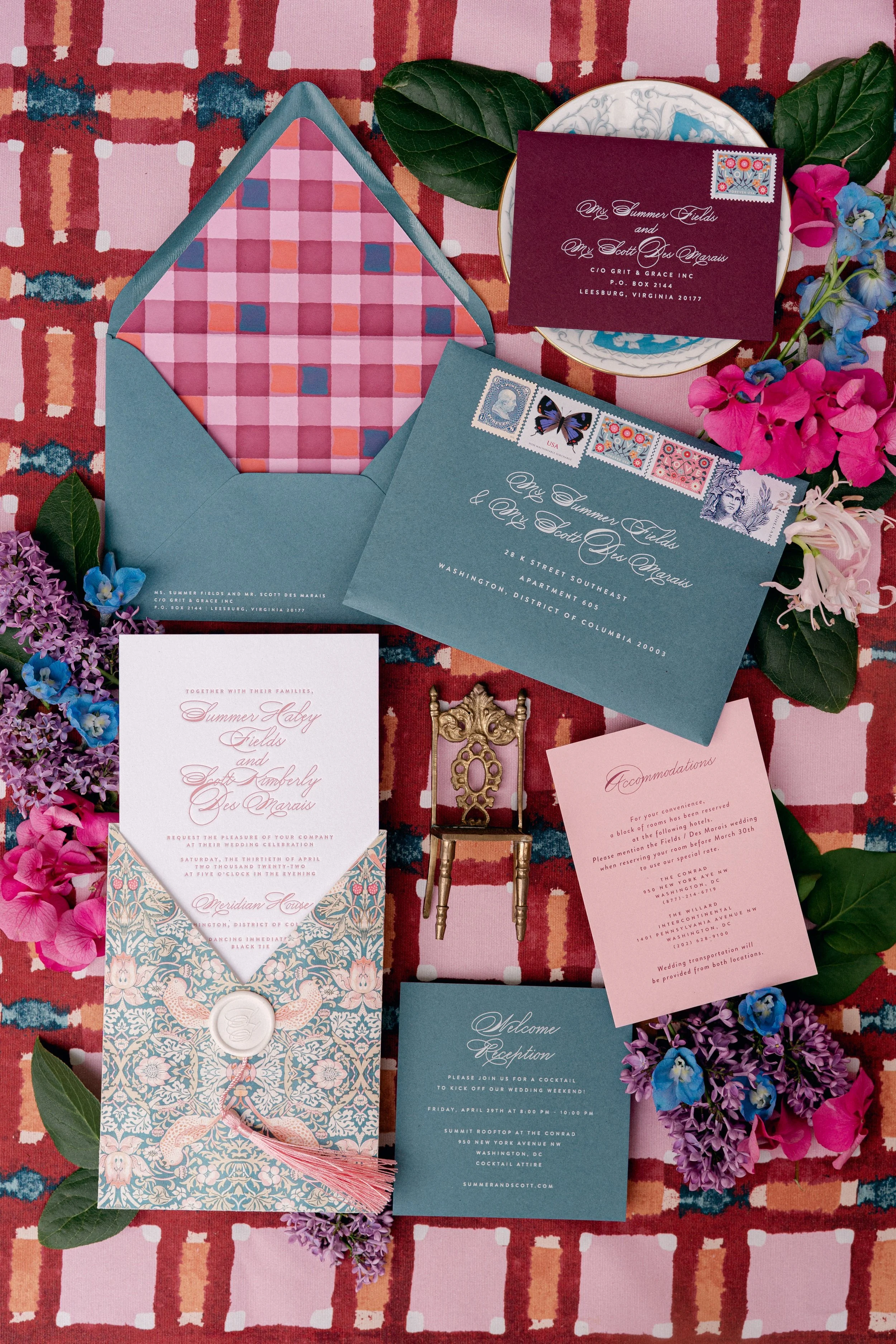 On a beautiful April day, Summer and Scott tied the knot at the stunning Meridian House in Washington, DC. For this fun-loving couple we created bright and punched-up arrangements with bright pinks peonies, mums, with tons of texture . Planning by Grit and Grace and photography by Lisa Ziesing for Abby Jiu.