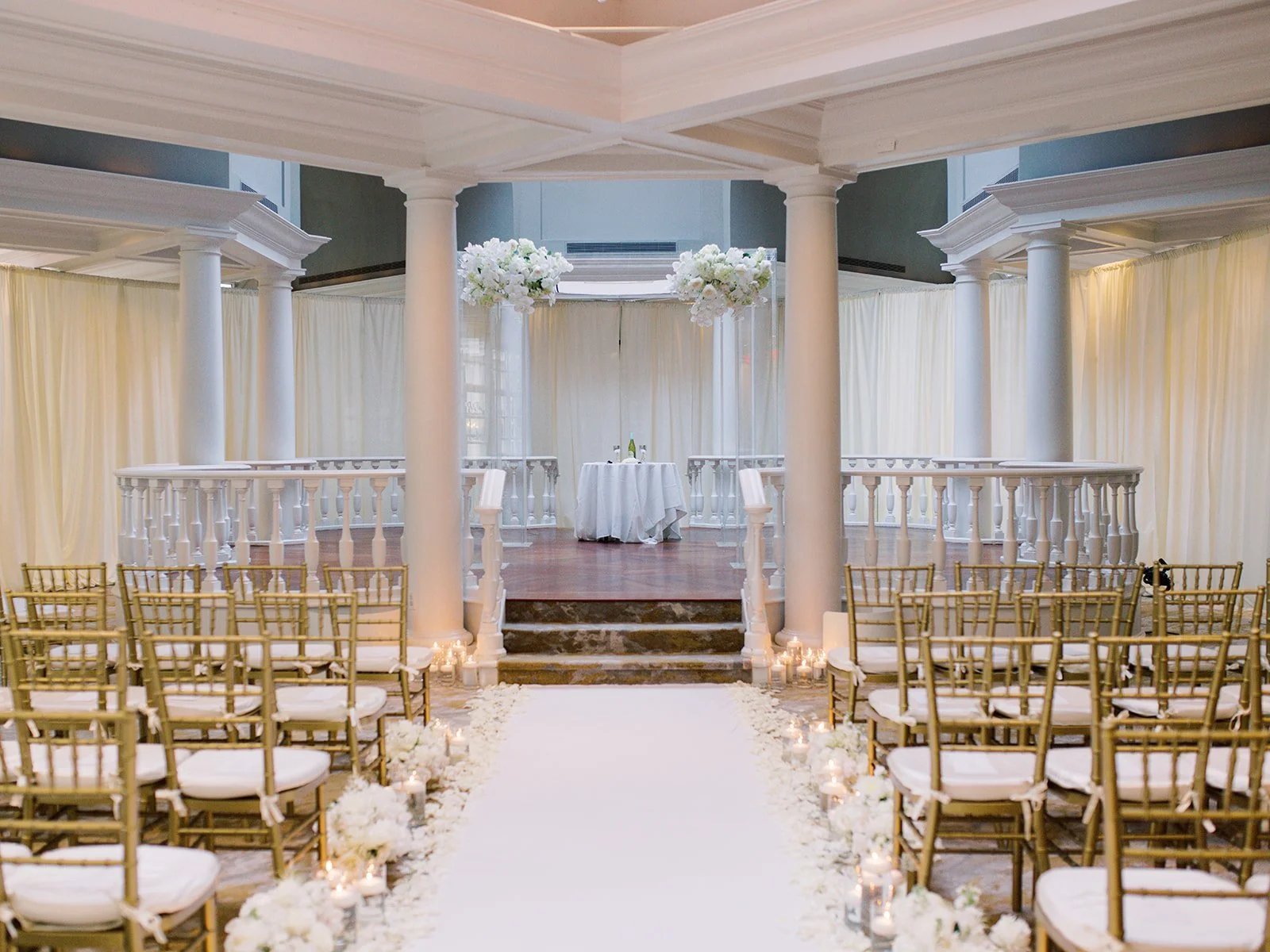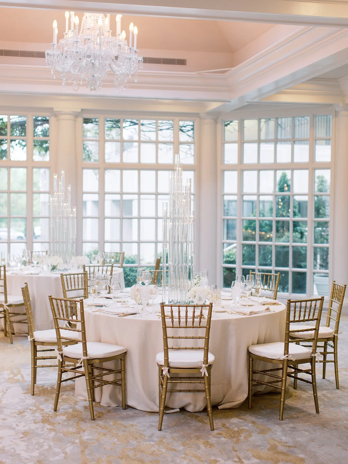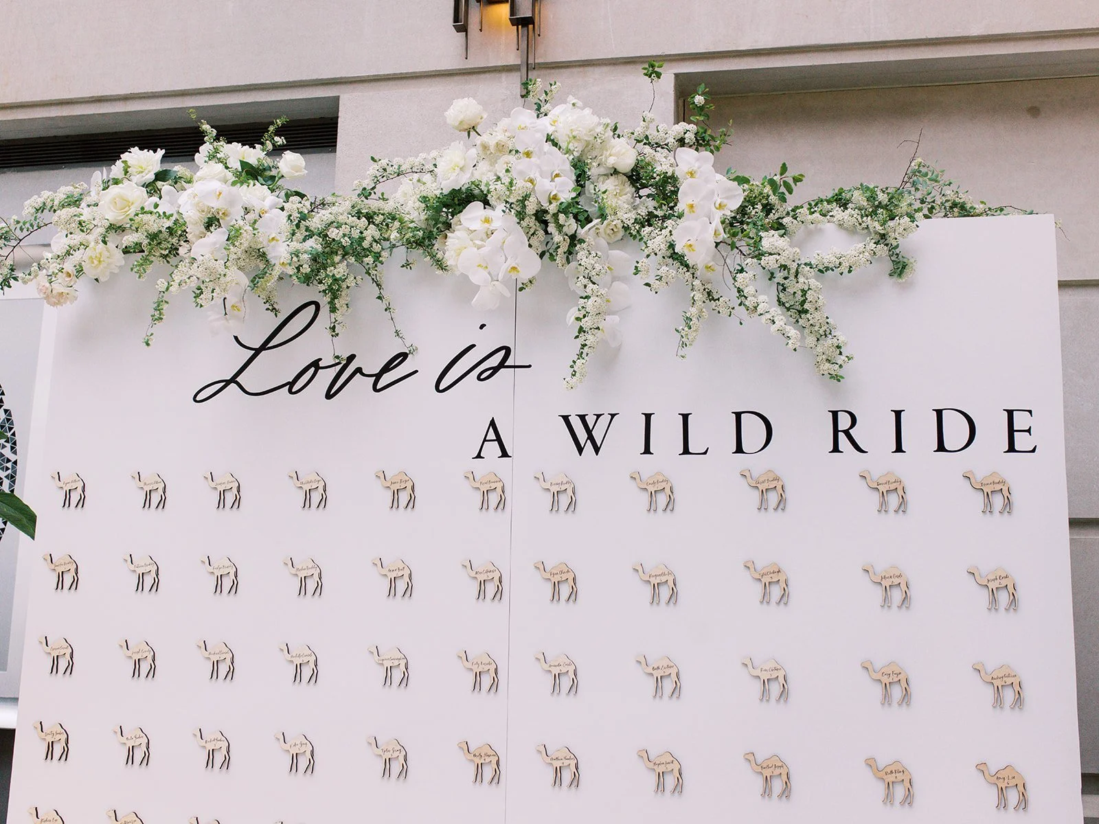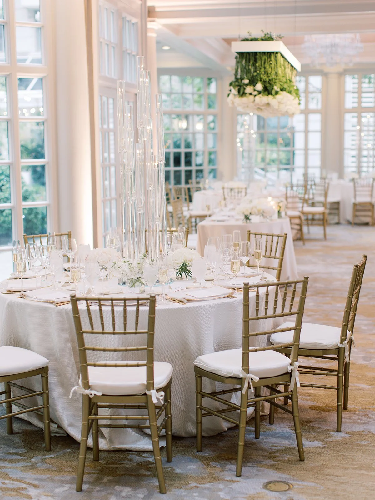 Gabby and Jason’s sweet wedding used tons of soft textures, in white, to create a light and romantic atmosphere. We loved being able to combine orchids, ranunculus, and roses all into this design to achieve the look! Our favorite of the day, though, was creating the hanging rose installation over the sweetheart table. Planning by Kim Newton Weddings and photography by Cassie for La Vie en Rose.