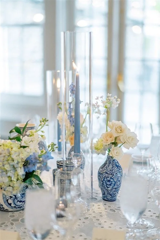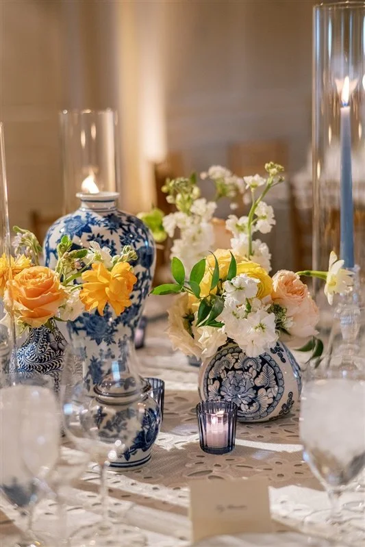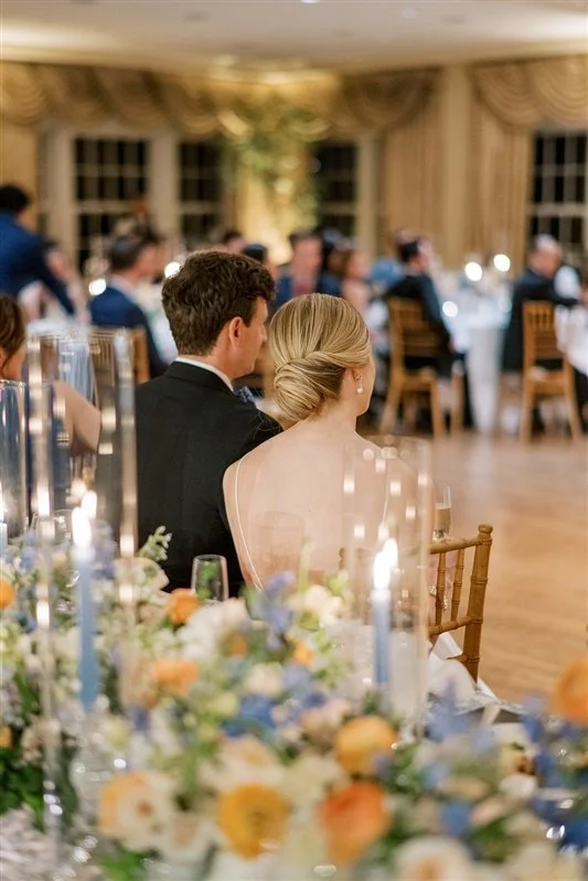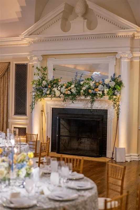 Libby and Lee’s elegant ceremony florals enhanced the charm at St John's Episcopal Church. Large urns framed Libby and Lee as they exchange their love for one another. Reception was held at the Chevy Chase Club and was filled with remarkable beauty. Lush ferns lined the band stage, along with a flourishing mantle piece to highlight the cake. This event was expertly panned by A. Dominick Events and photographed by the extraordinary Bonnie Sen Photography .