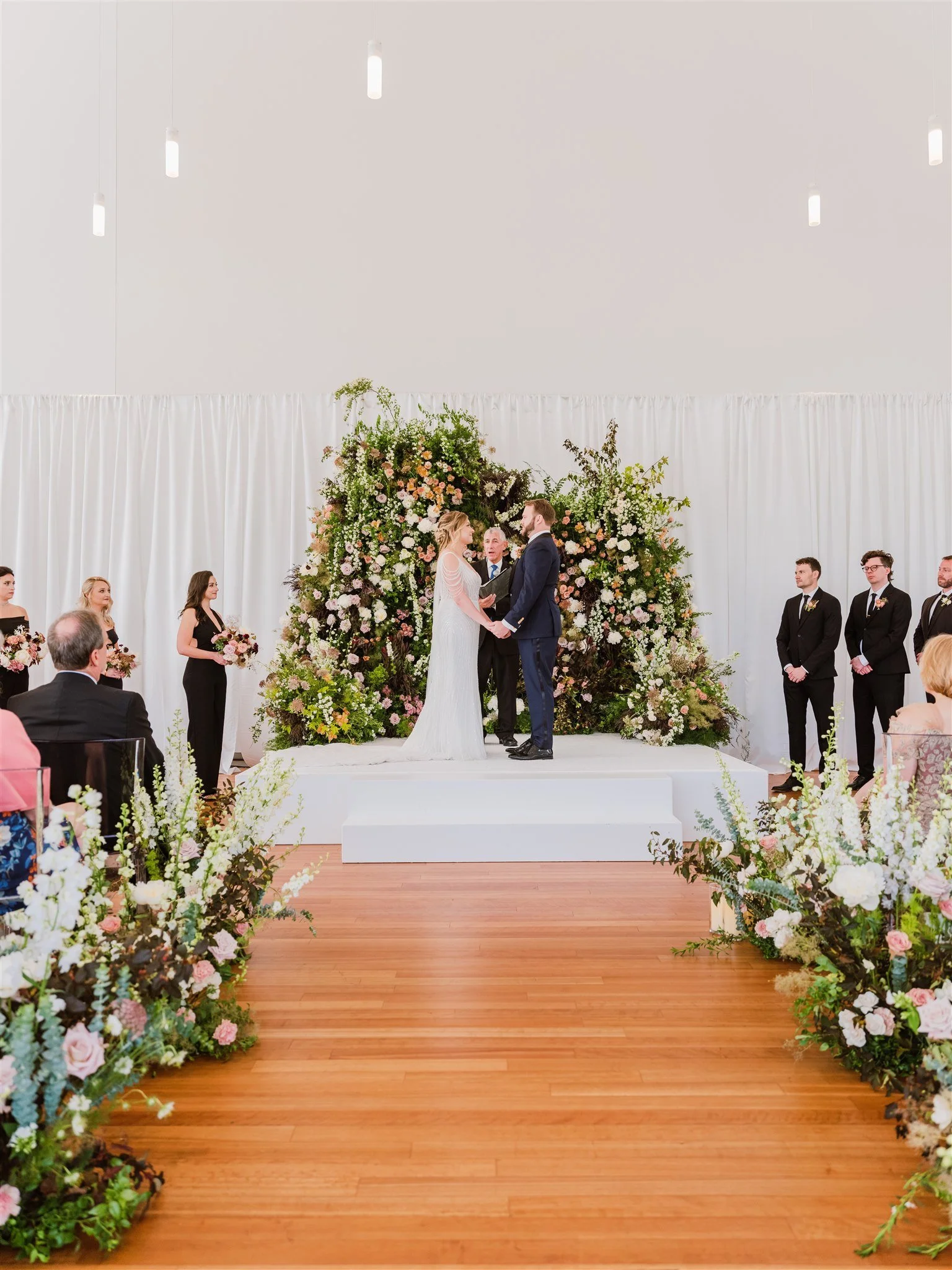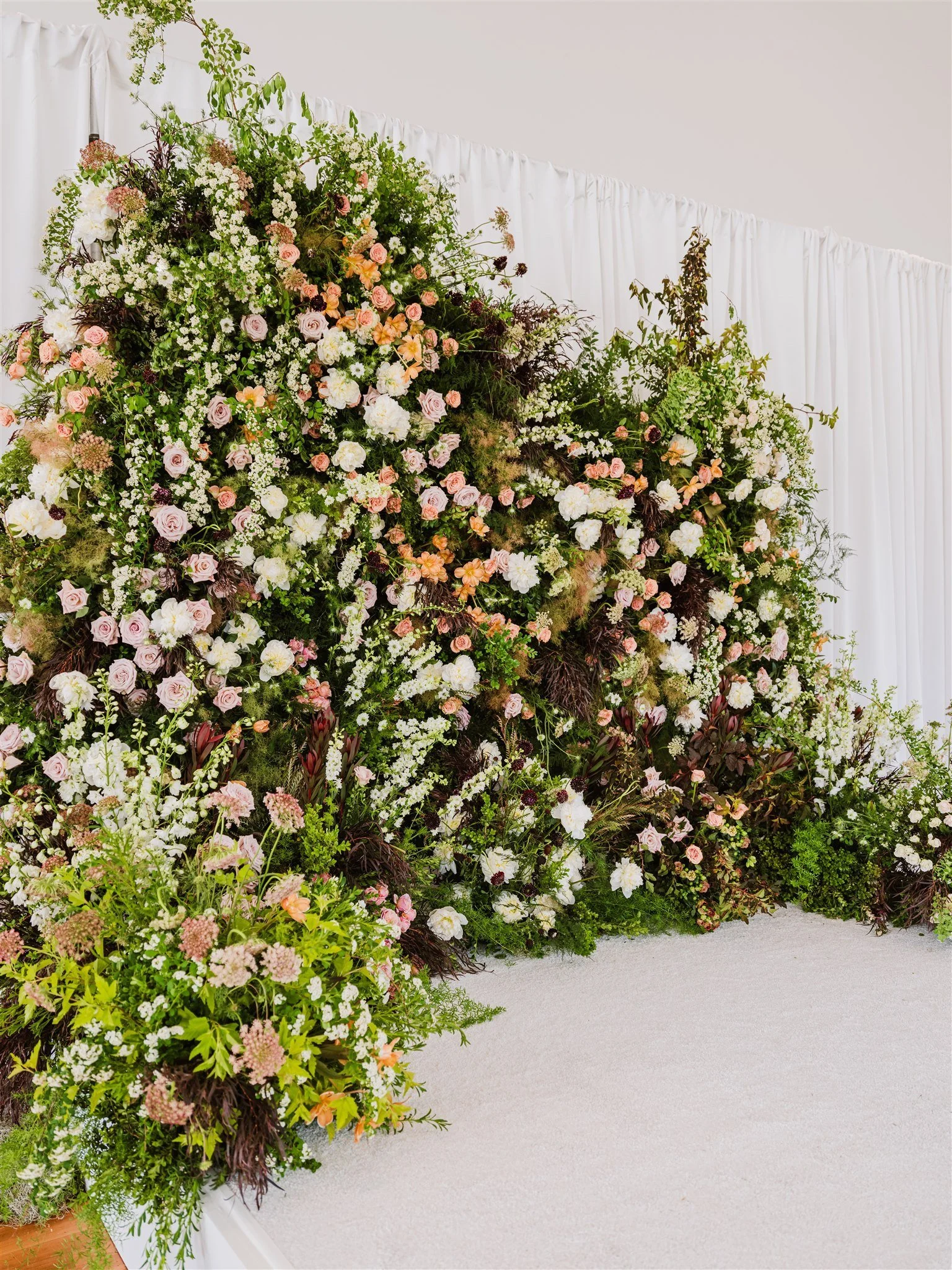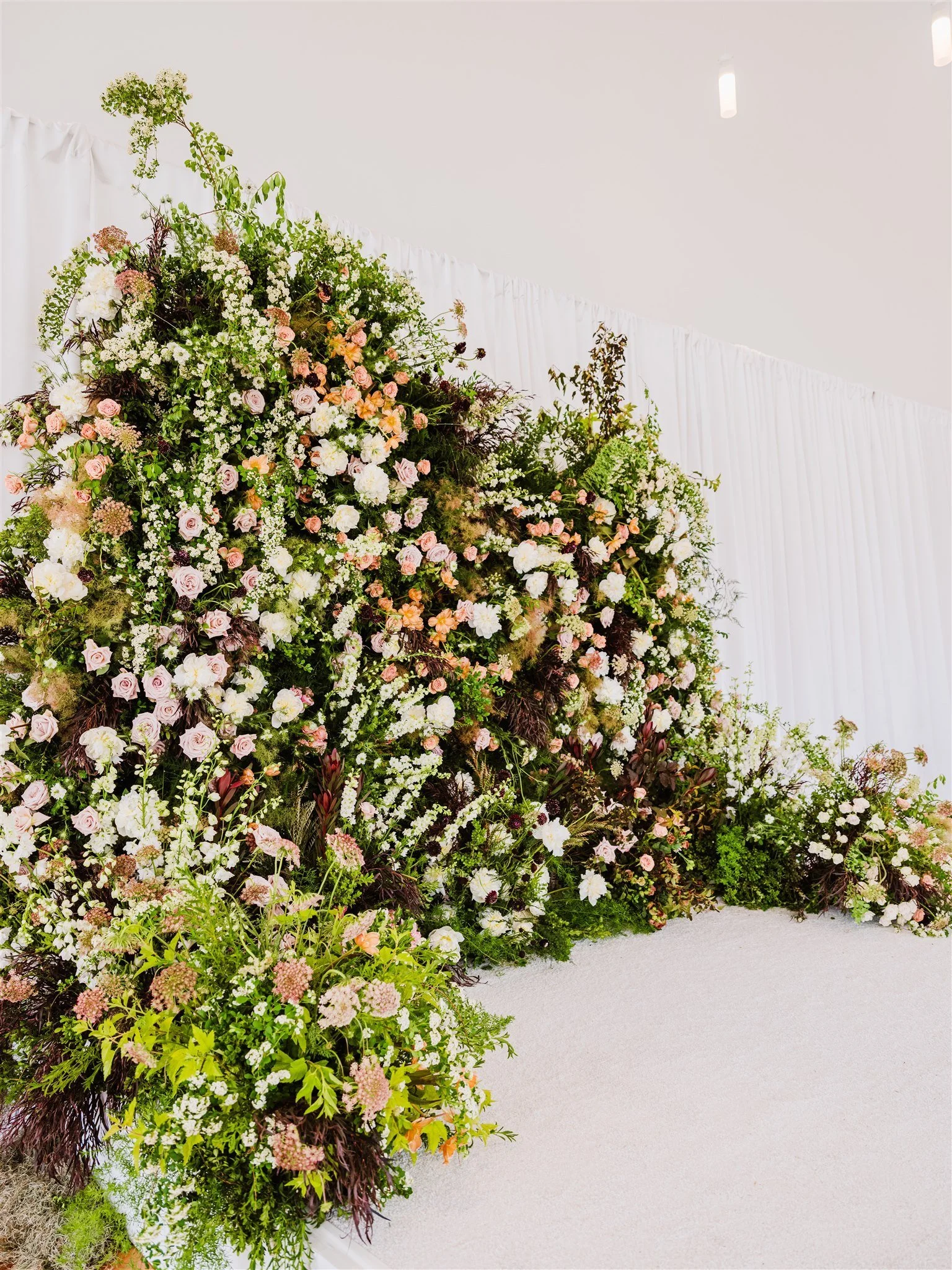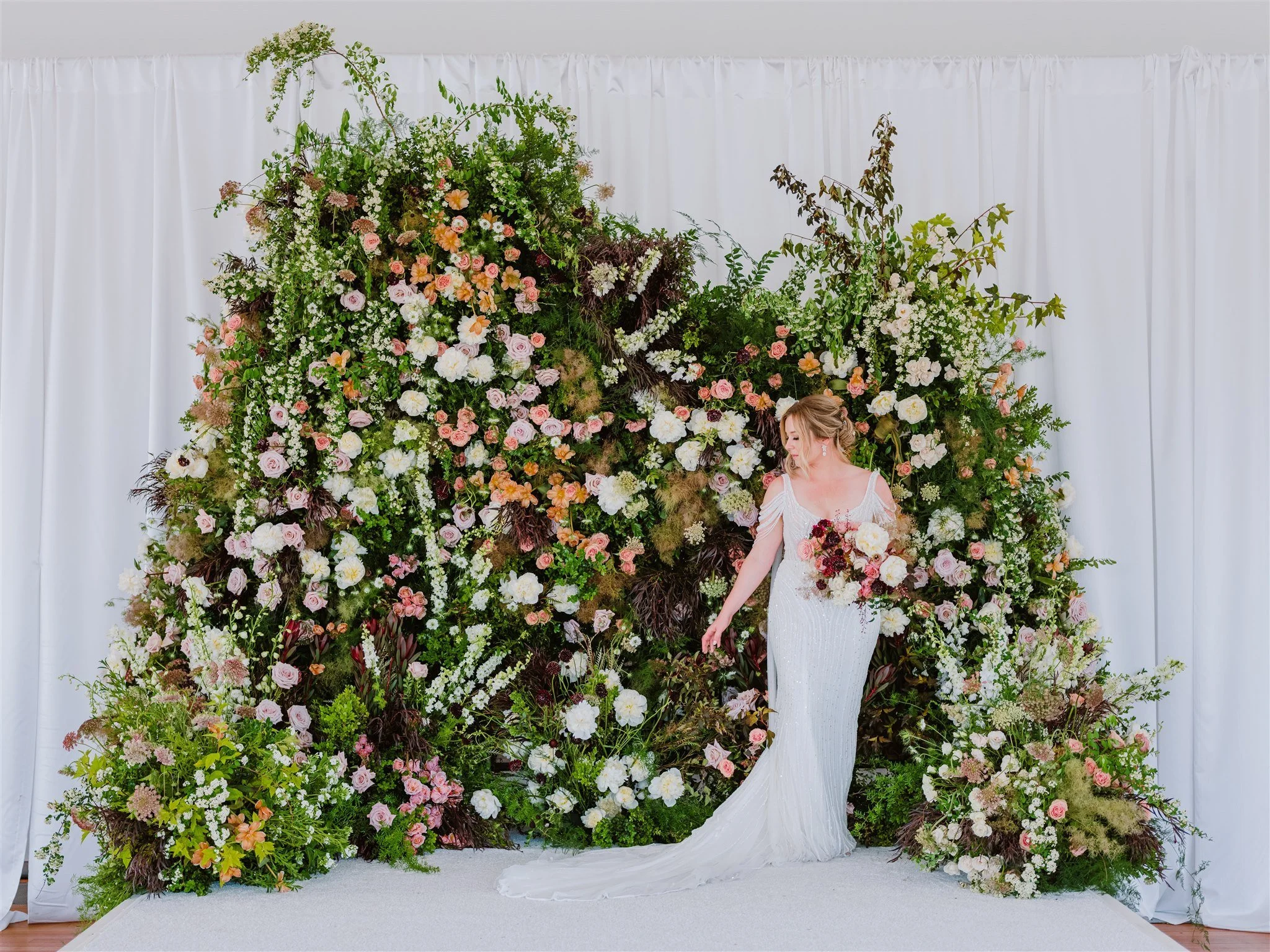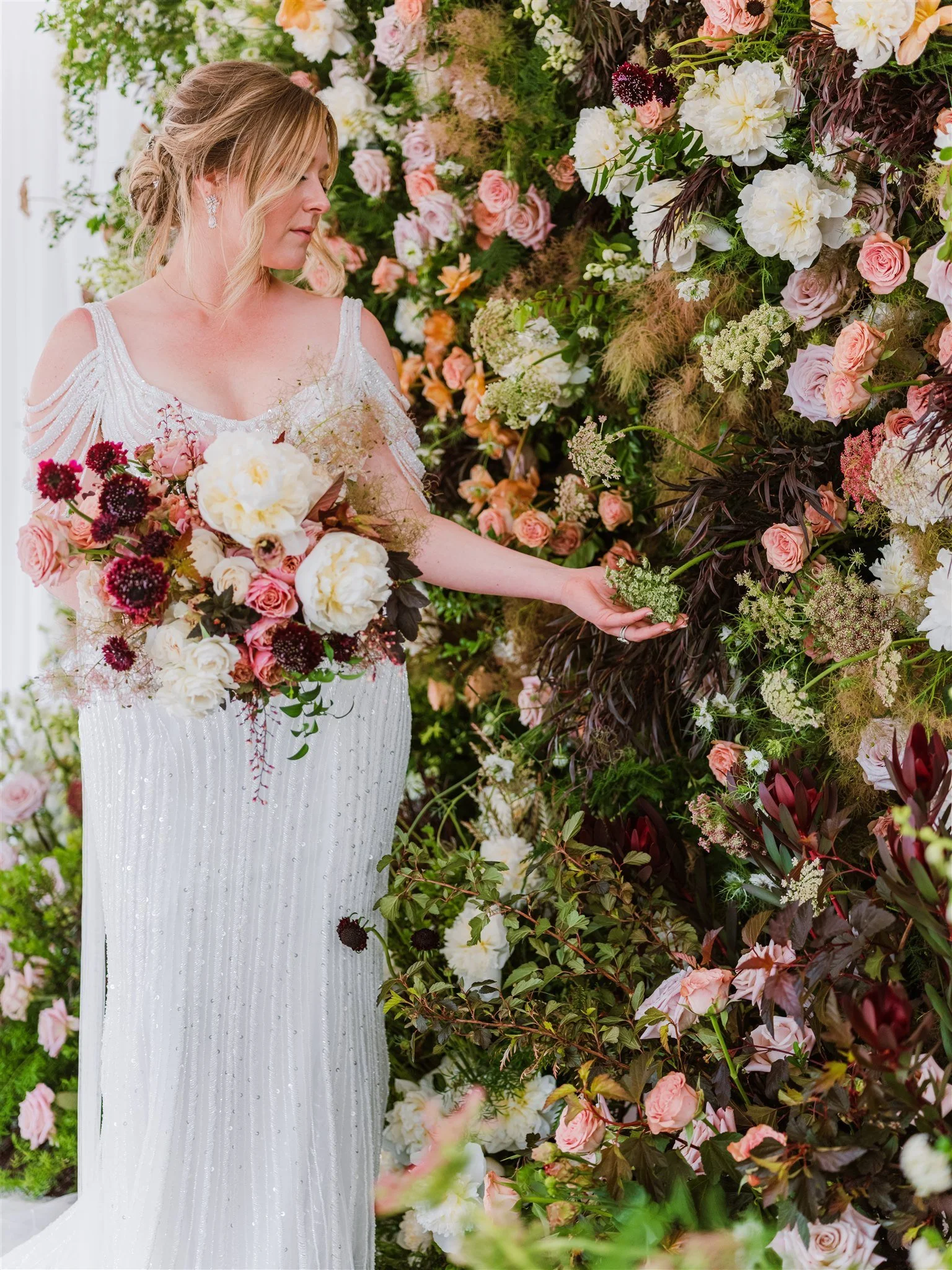Rachel and Jonathon’s wedding was a fantasy-filled day. We loved creating an epic flower wall for them and finished the day with a lush greenery ceiling above the dance floor. Planning by Arielle for Summer & Co Events and photography by Victoria Heer Photography.