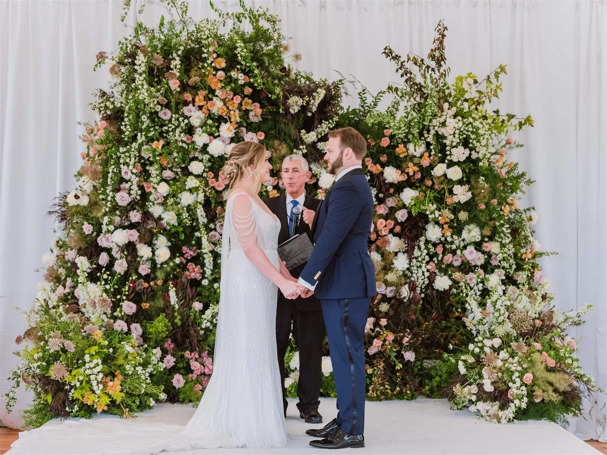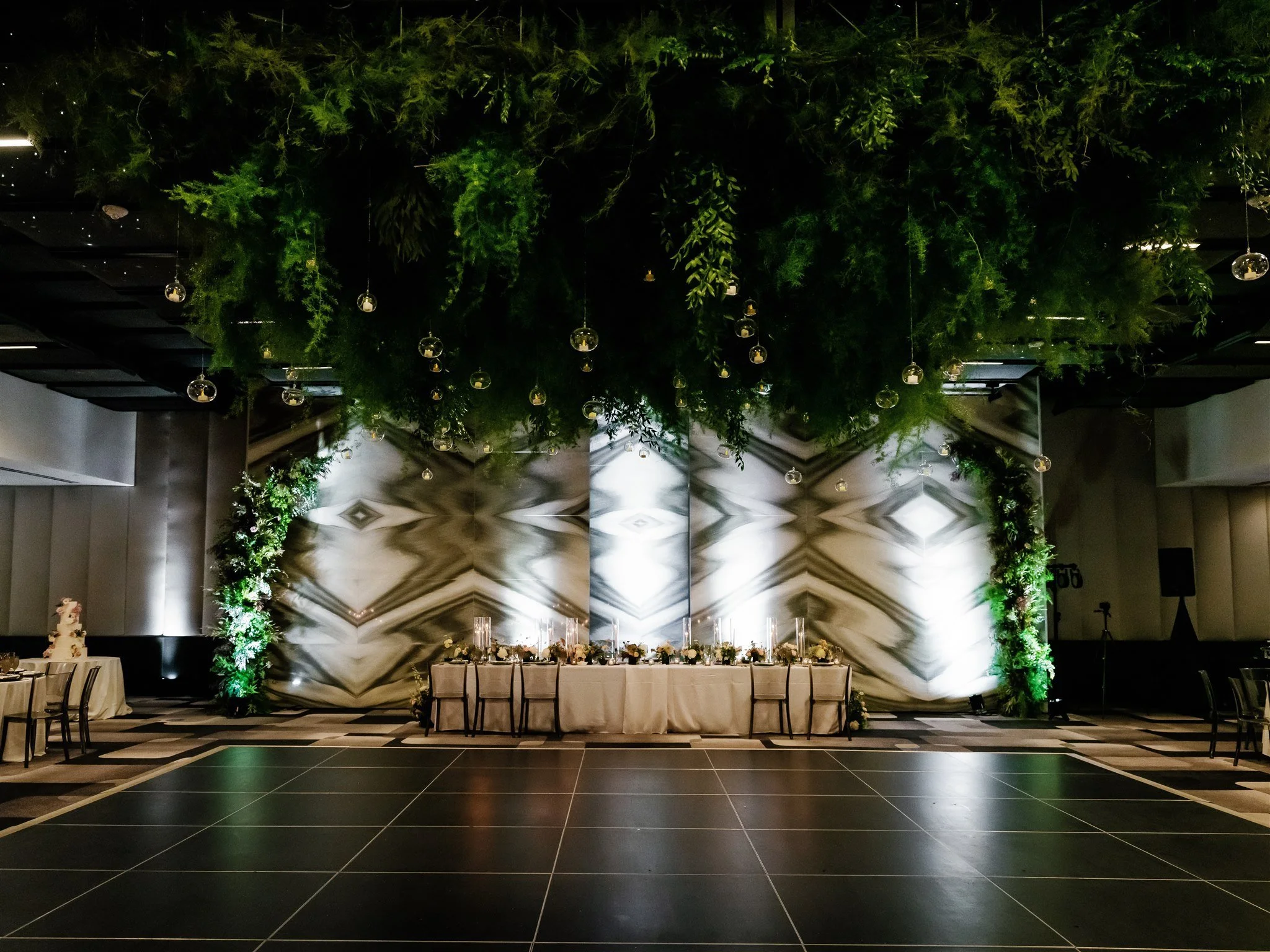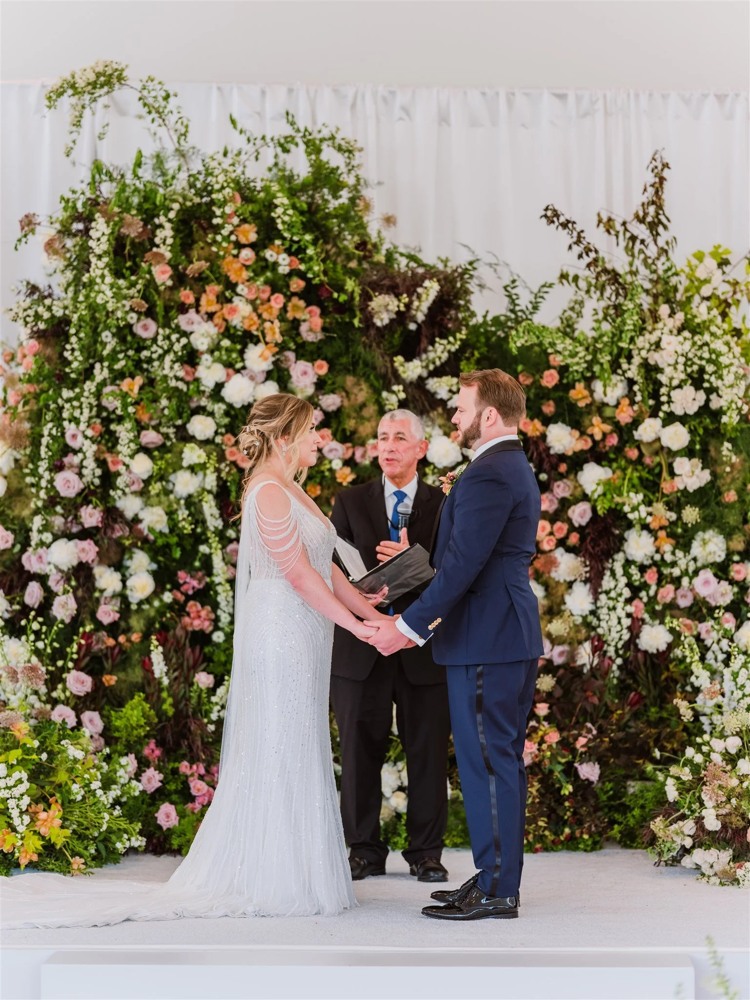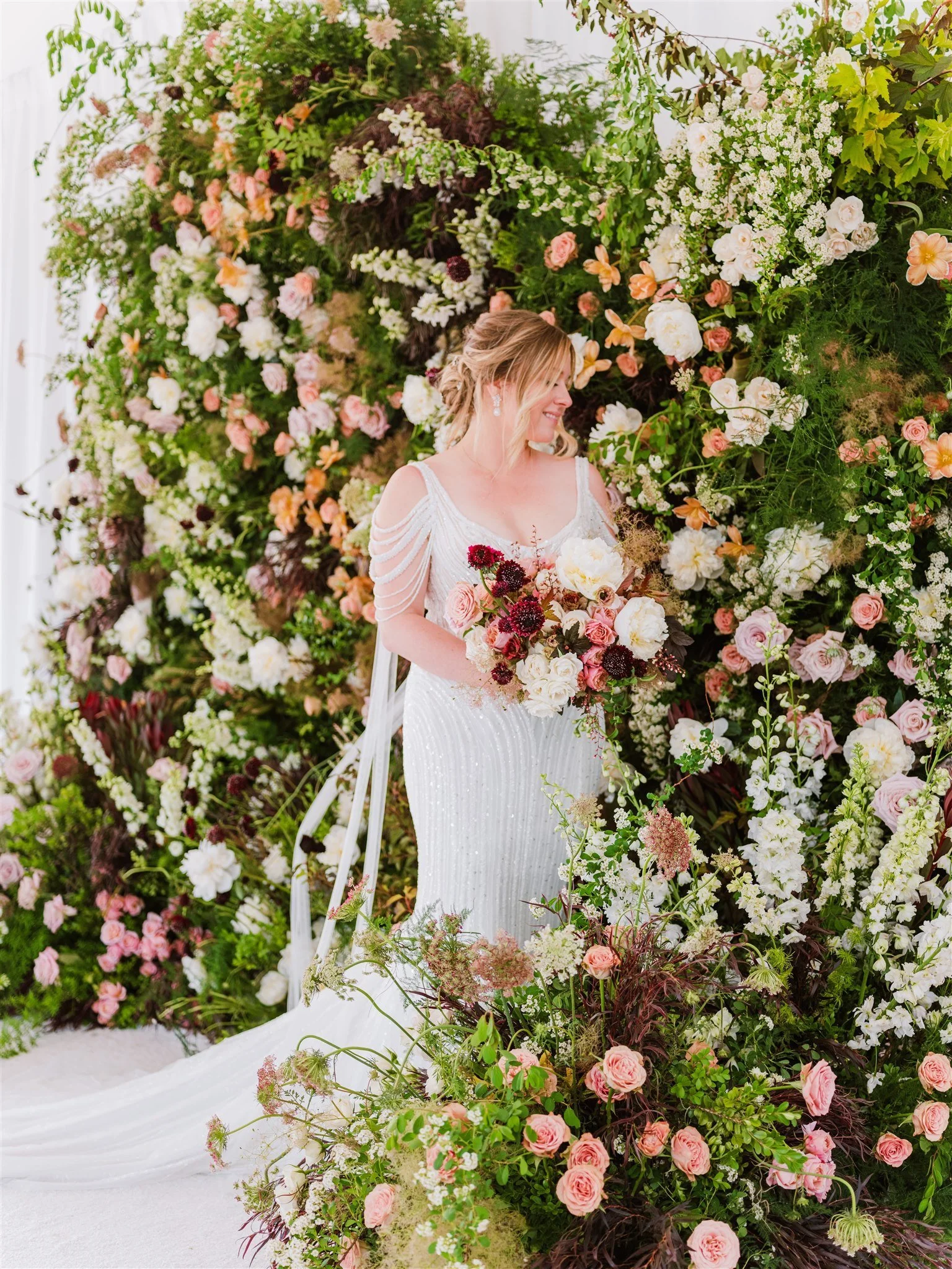 Rachel and Jonathon’s wedding was a fantasy-filled day. We loved creating an epic flower wall for them and finished the day with a lush greenery ceiling above the dance floor. Planning by Arielle for Summer & Co Events and photography by Victoria Heer Photography.