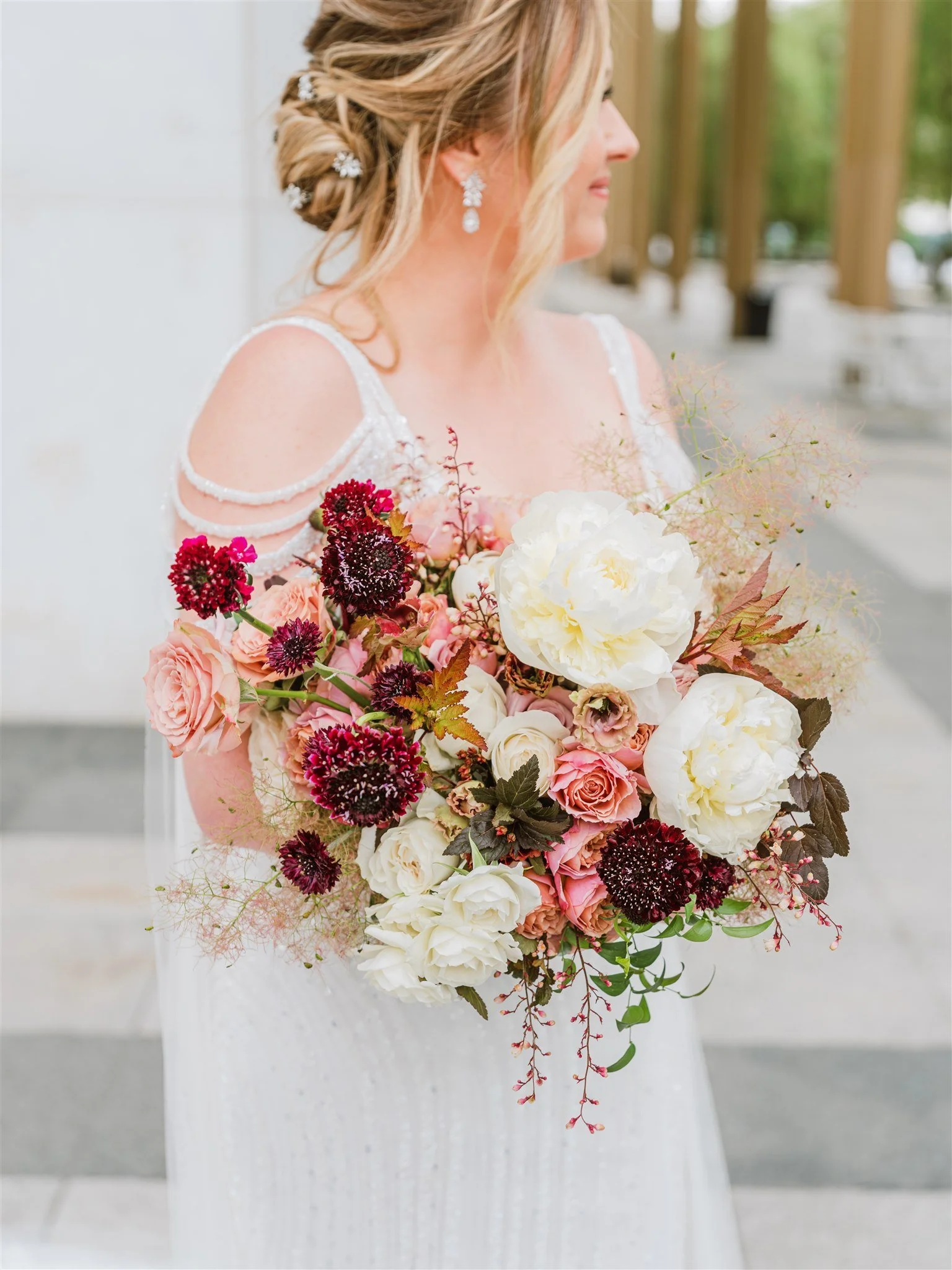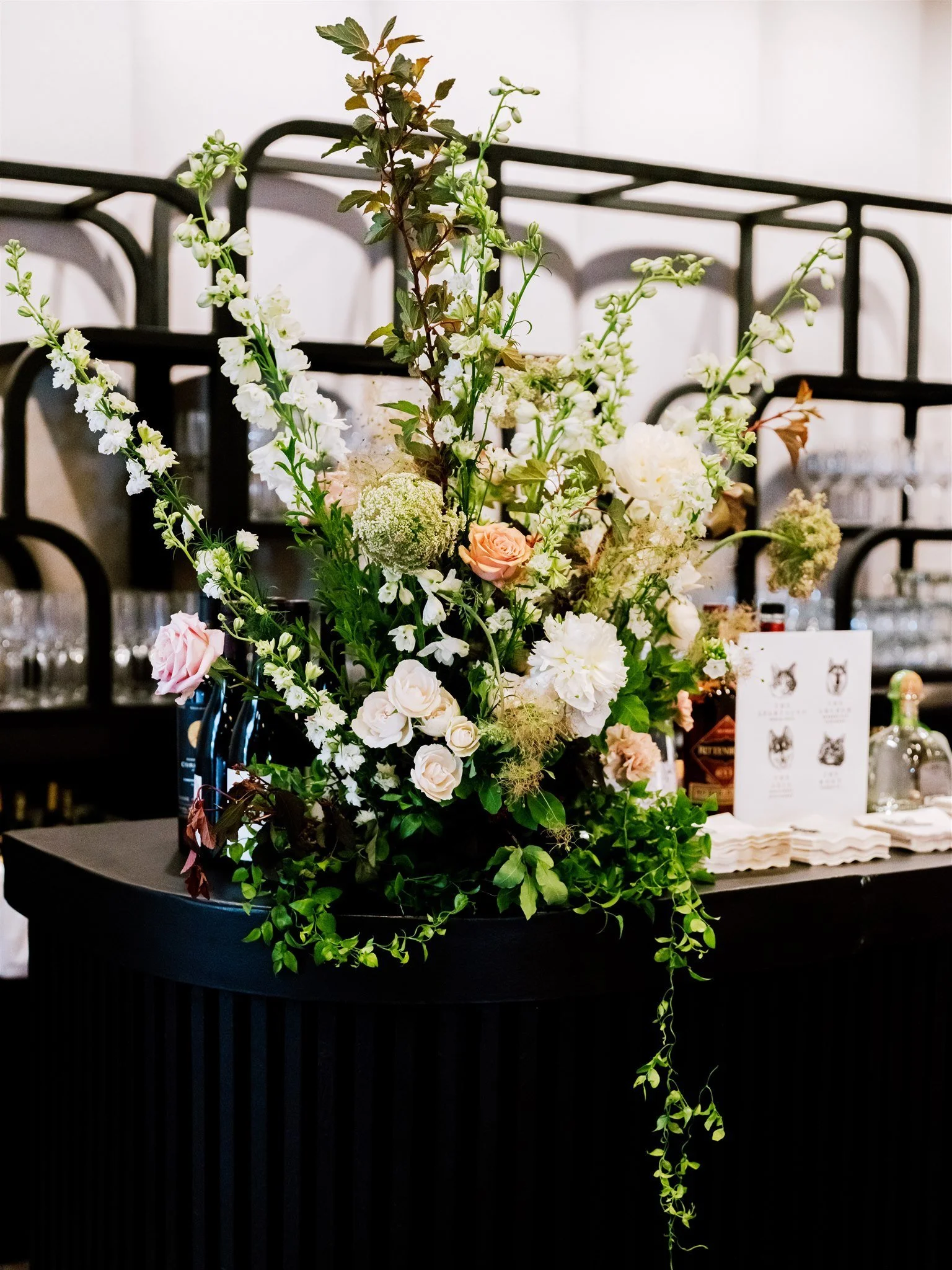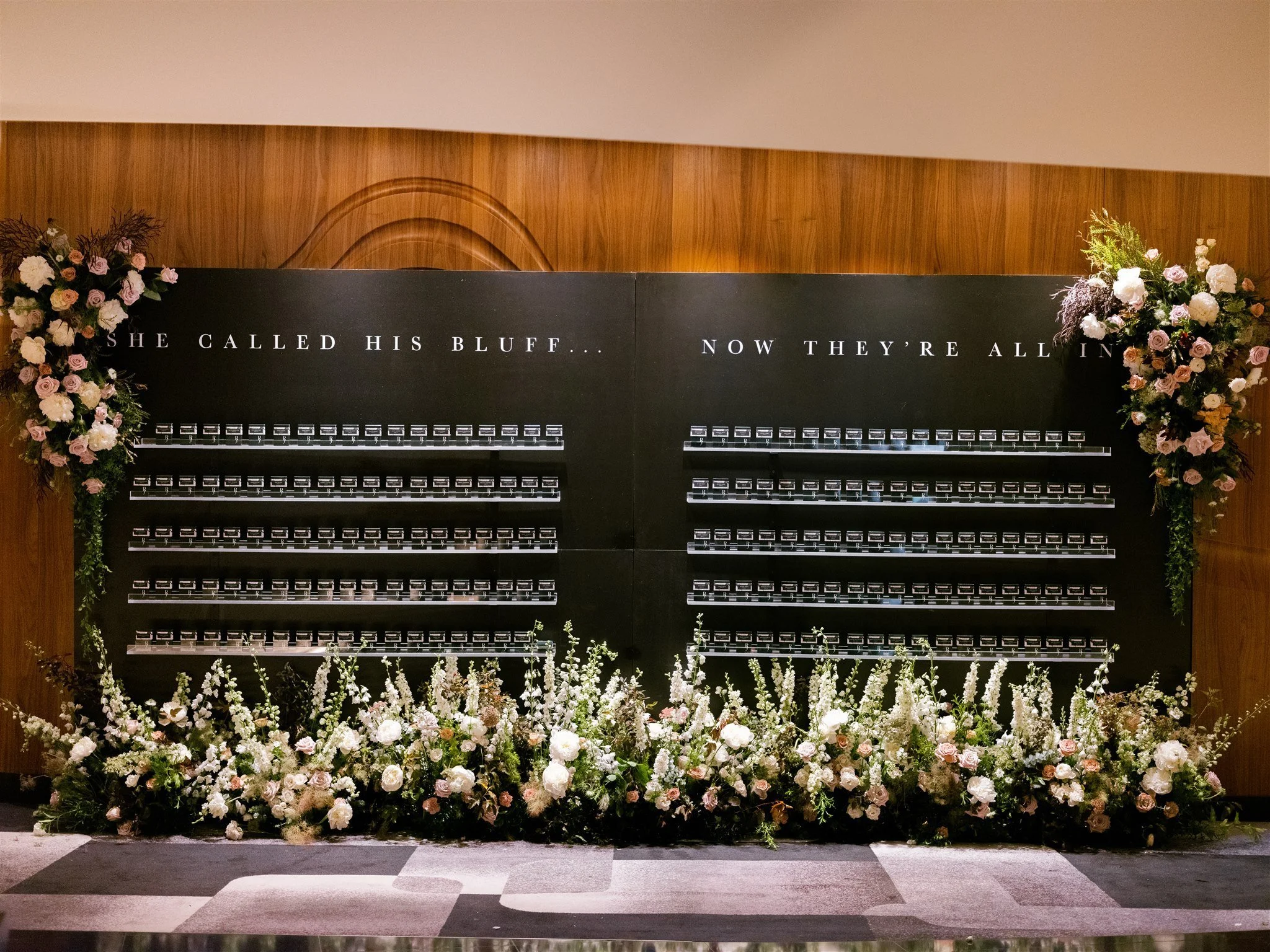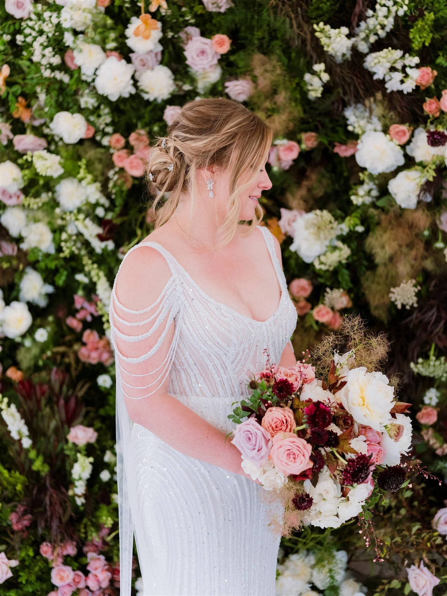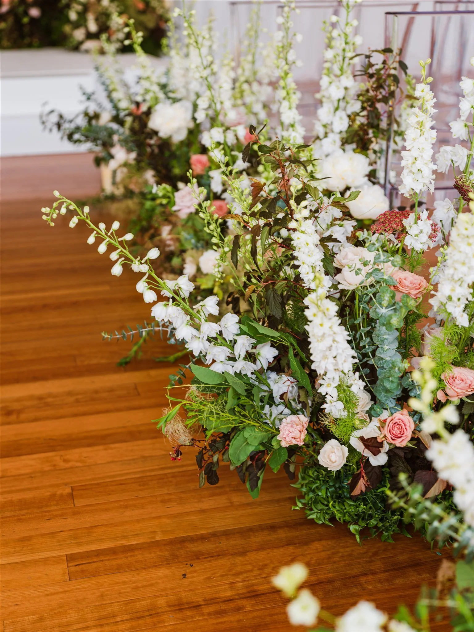 Rachel and Jonathon’s wedding was a fantasy-filled day. We loved creating an epic flower wall for them and finished the day with a lush greenery ceiling above the dance floor. Planning by Arielle for Summer & Co Events and photography by Victoria Heer Photography.
