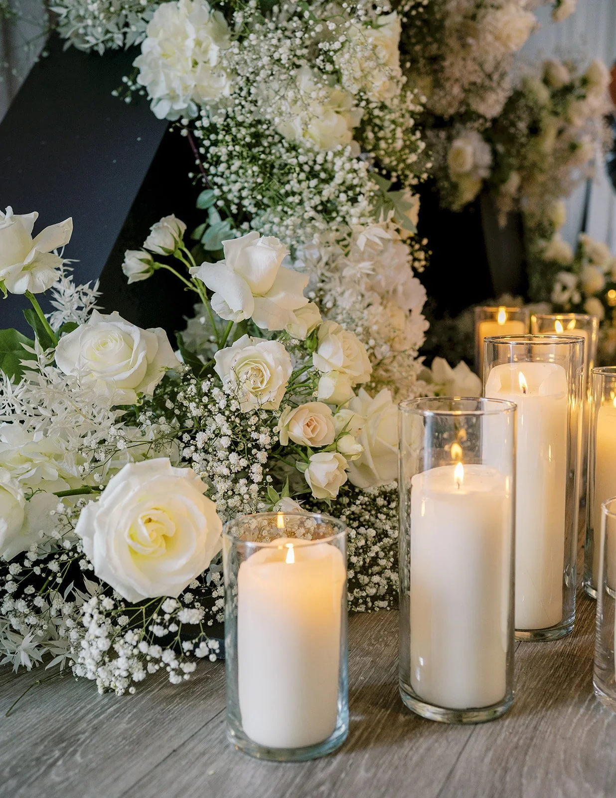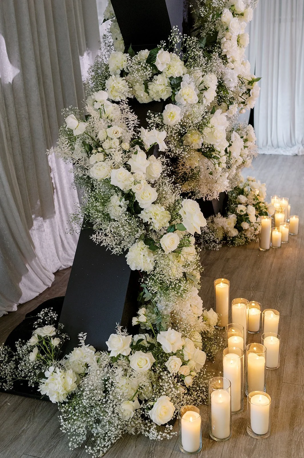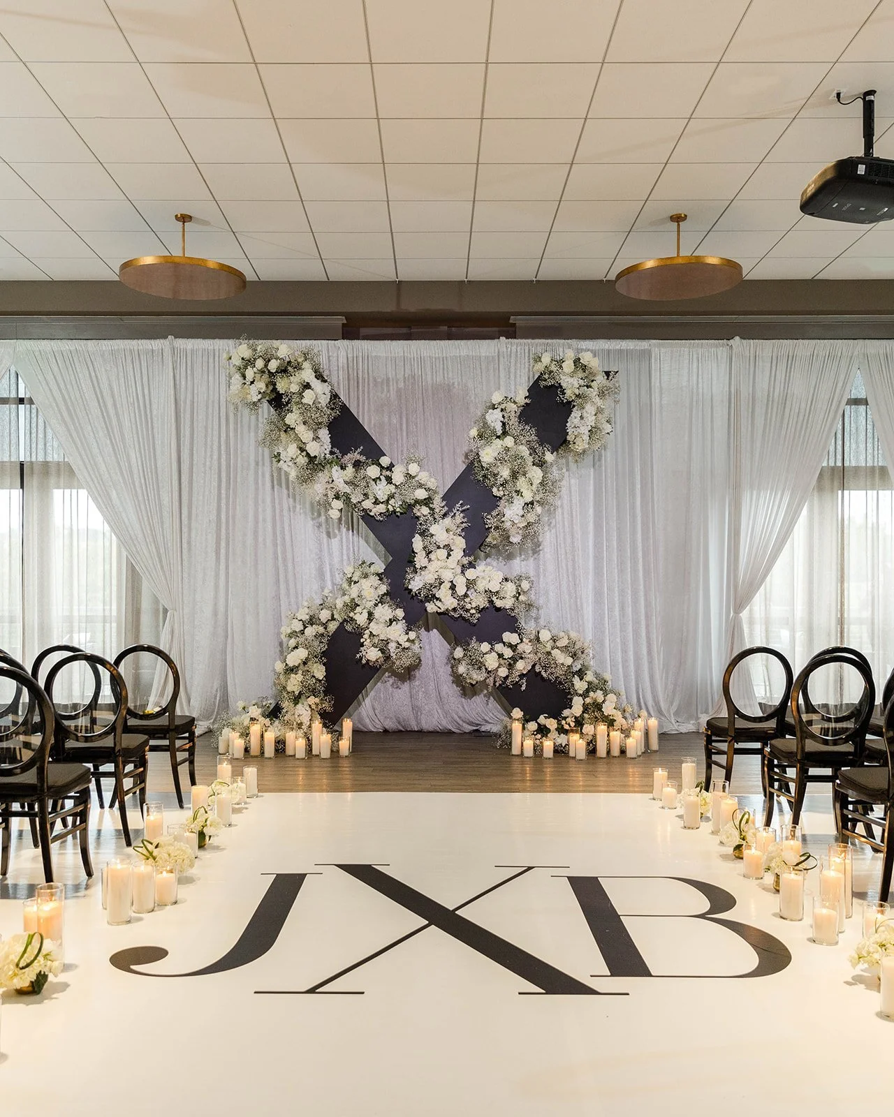 Janell and Berry’s romantic vow renewal blew us away with their use of understated glamor to highlight their love. We were so excited to be able to design huge fluffy baby’s breath clouds, wrapping around a giant ”X” . Planning by Favored by Yodit Events & Design and photography by Kyla Jeanette.