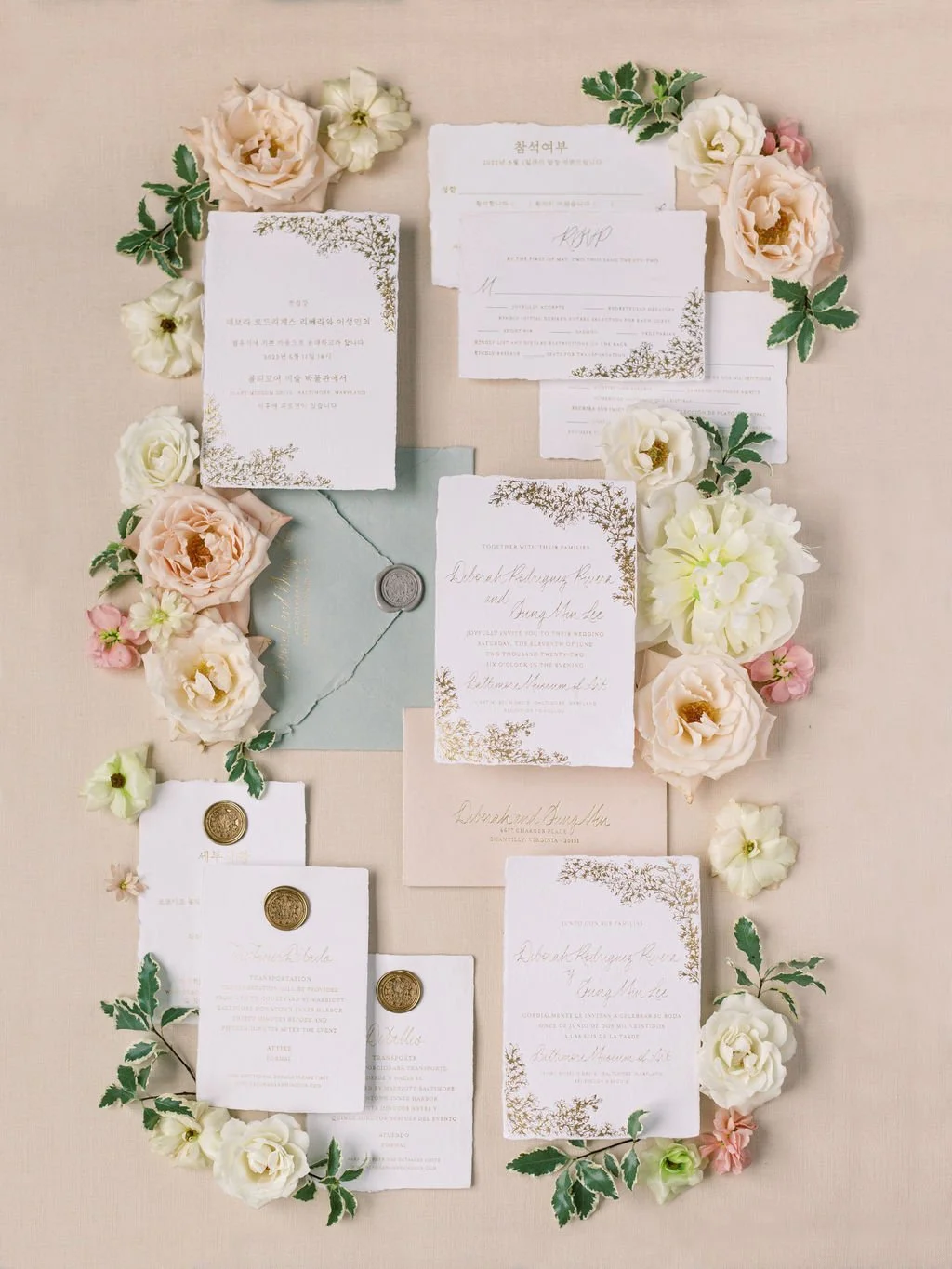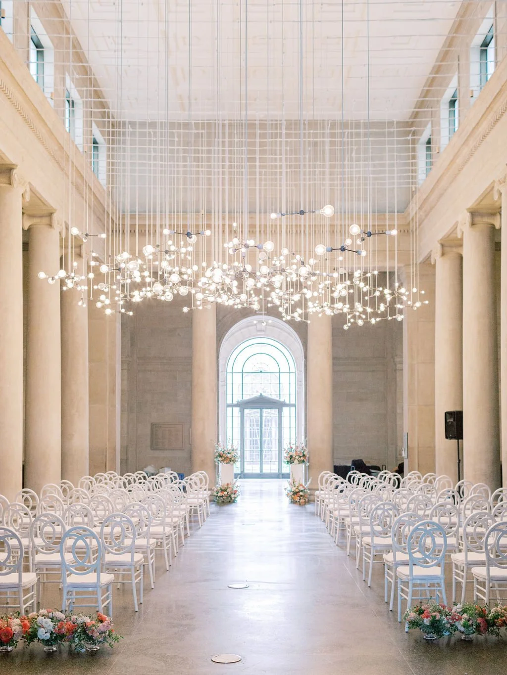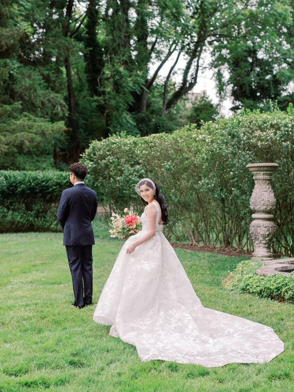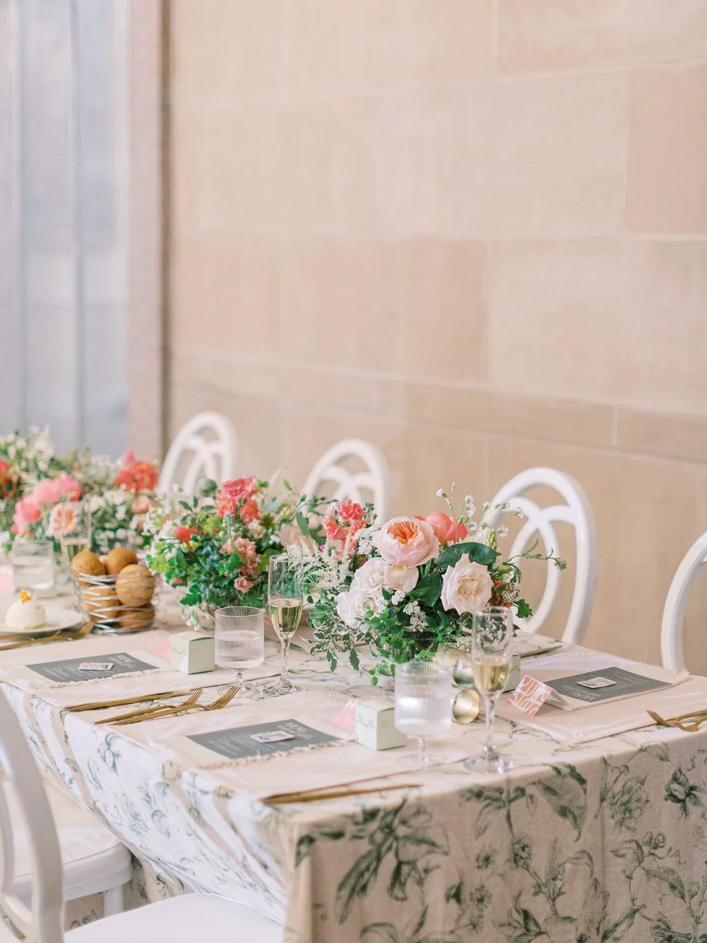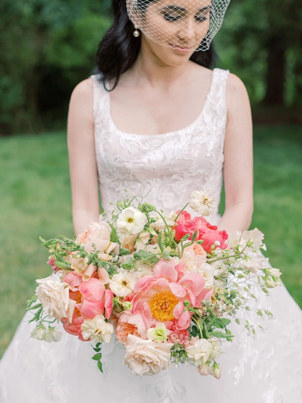 Deborah and Steven’s sweet wedding focused on classic neutrals, with pops of bright peonies. They used our Refined Collection for their florals at the Baltimore Museum of Art. Photography by Molly Lichten.