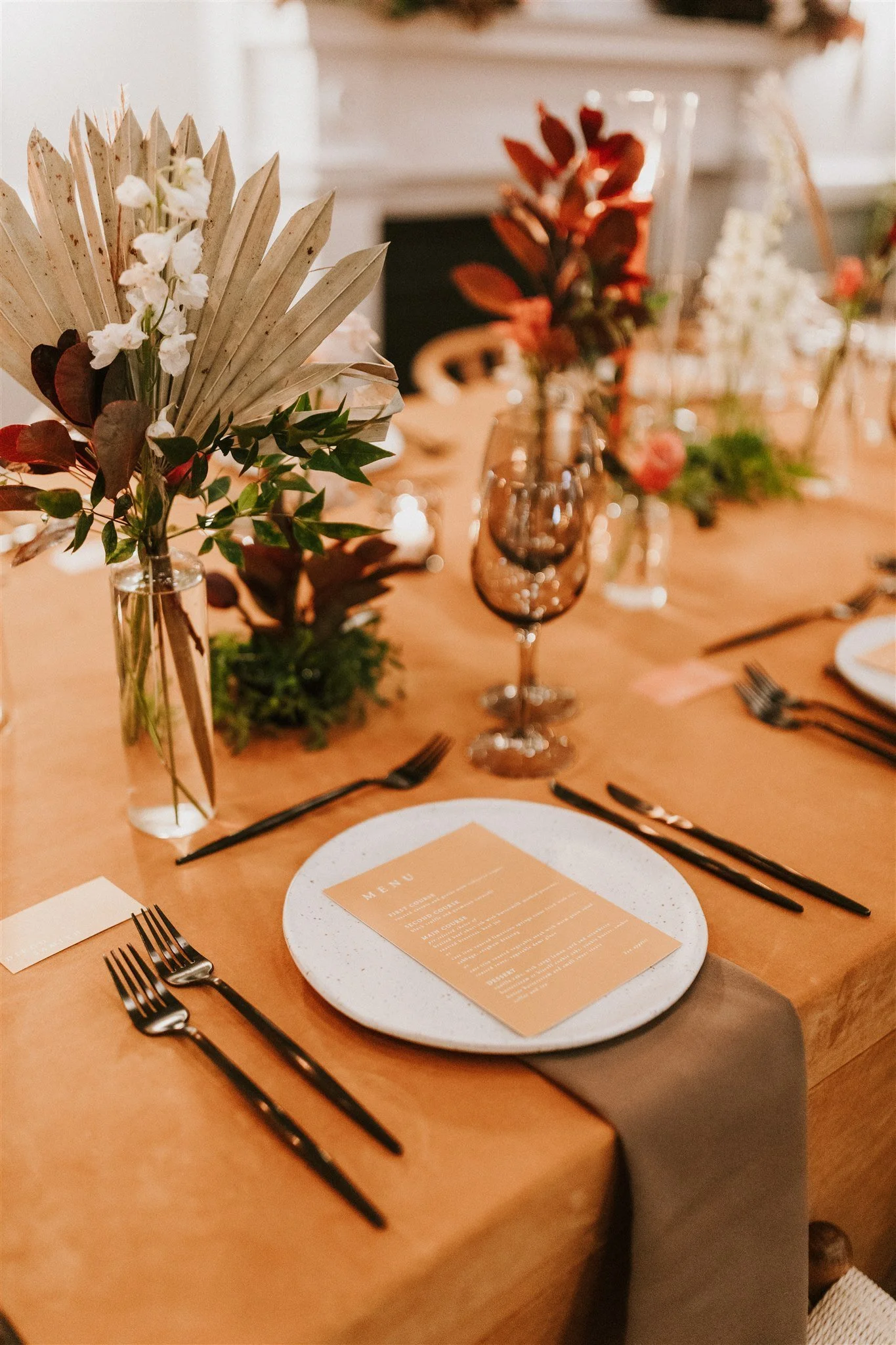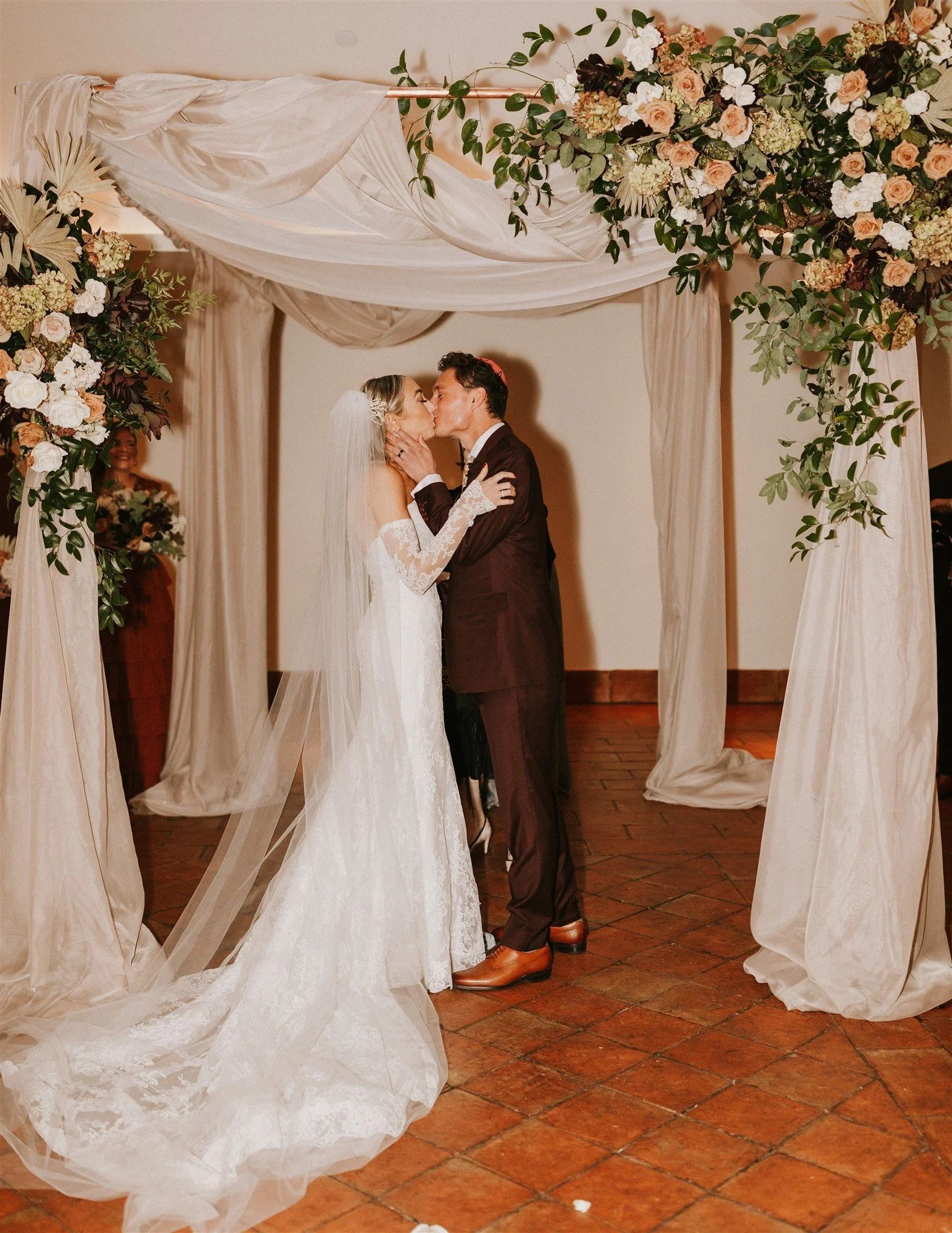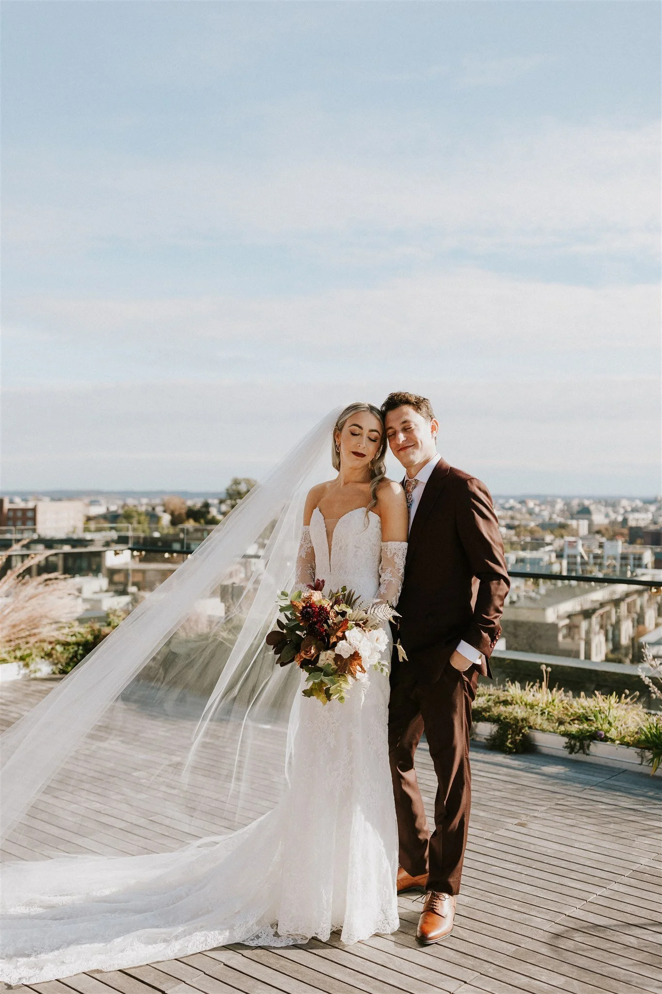 Elizabeth and Eric’s autumnal DC wedding at the Line Hotel was personal, elegant and fun. Deep, rich colors with contrasting textural elements made this bride and her wedding stand out on a cold November day. The modern touches mixed with lush florals was a favorite of ours, and we can’t wait to do more color schemes like this. Planning by Julie Vieira and photography by Barbarah Perttula Photography.