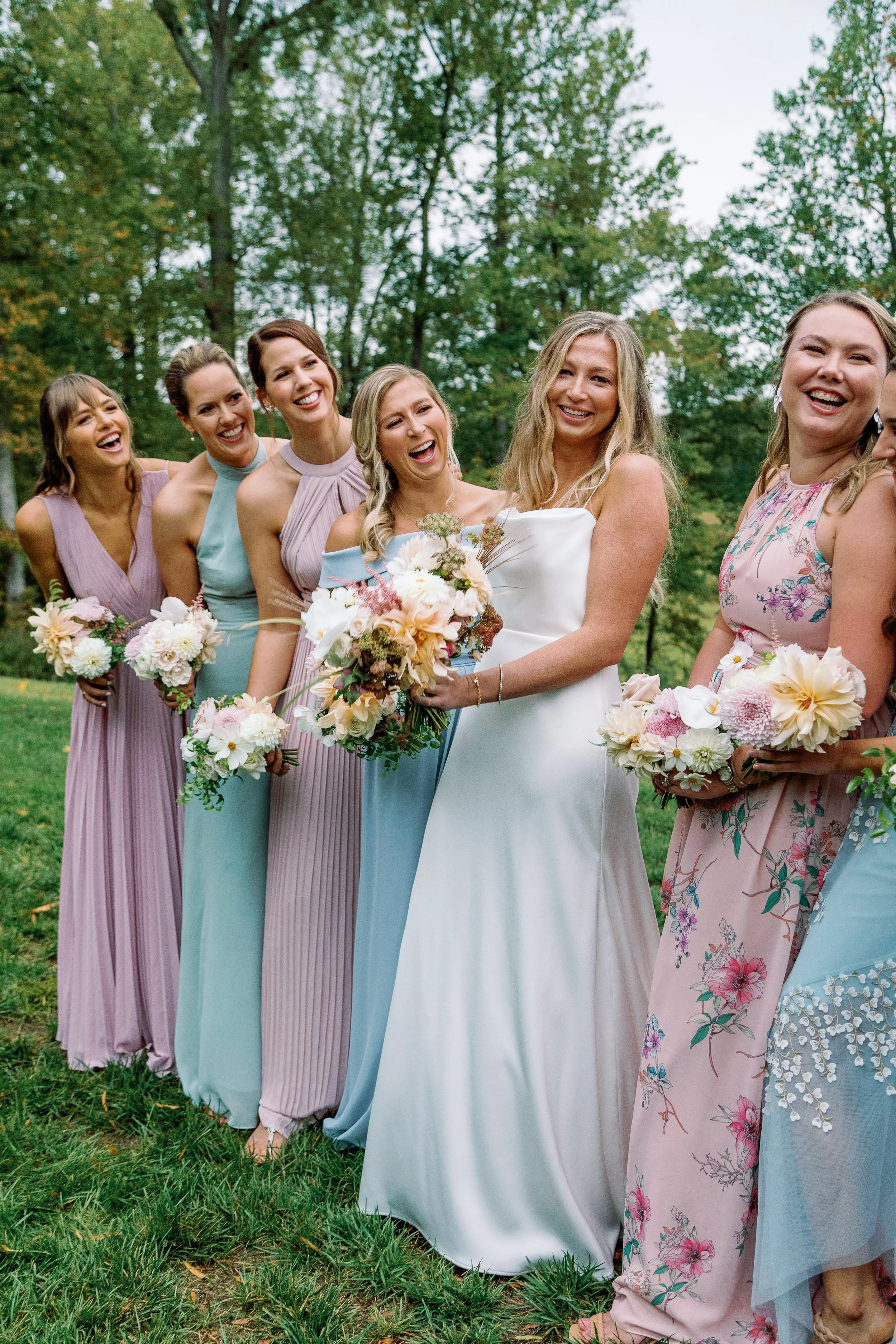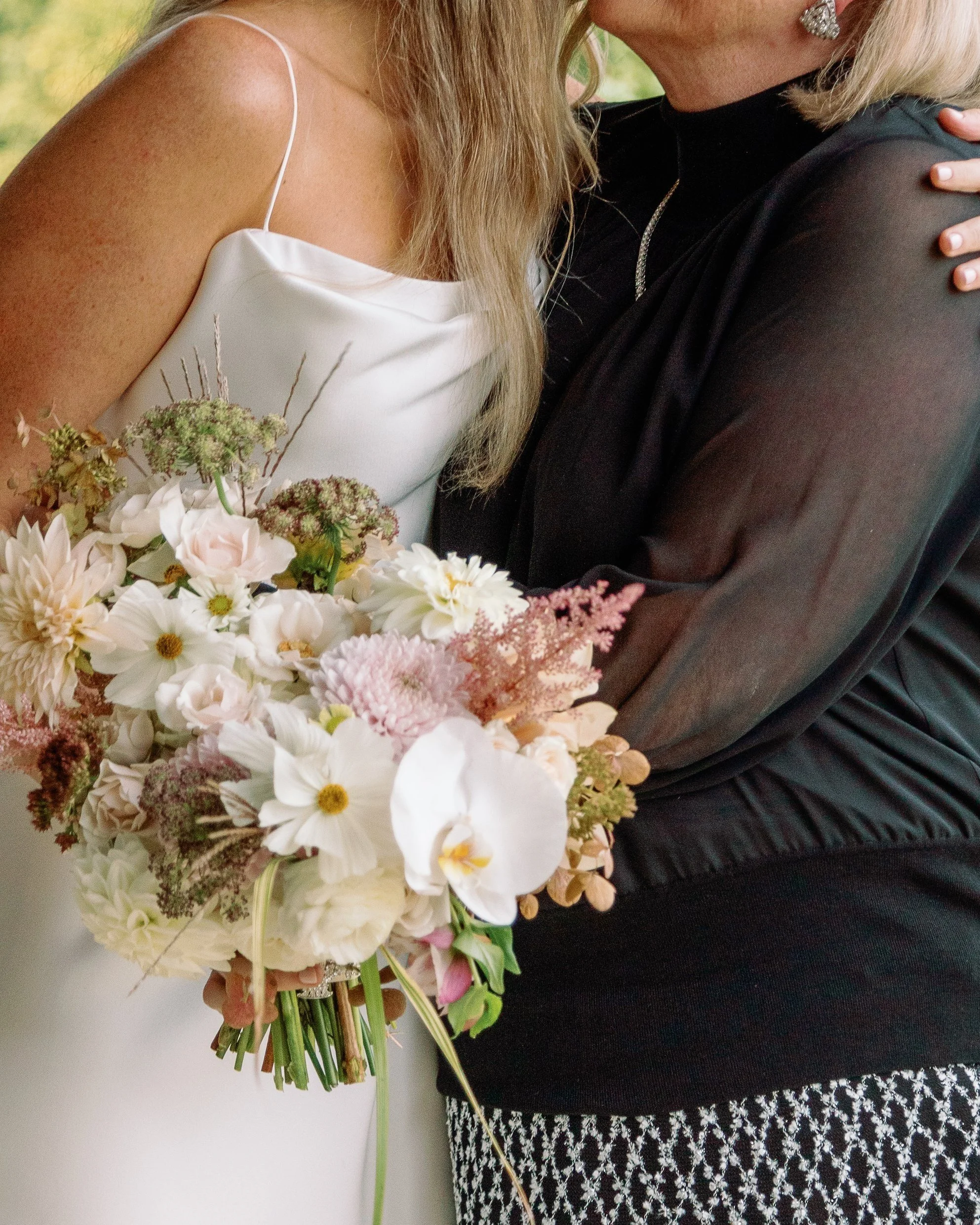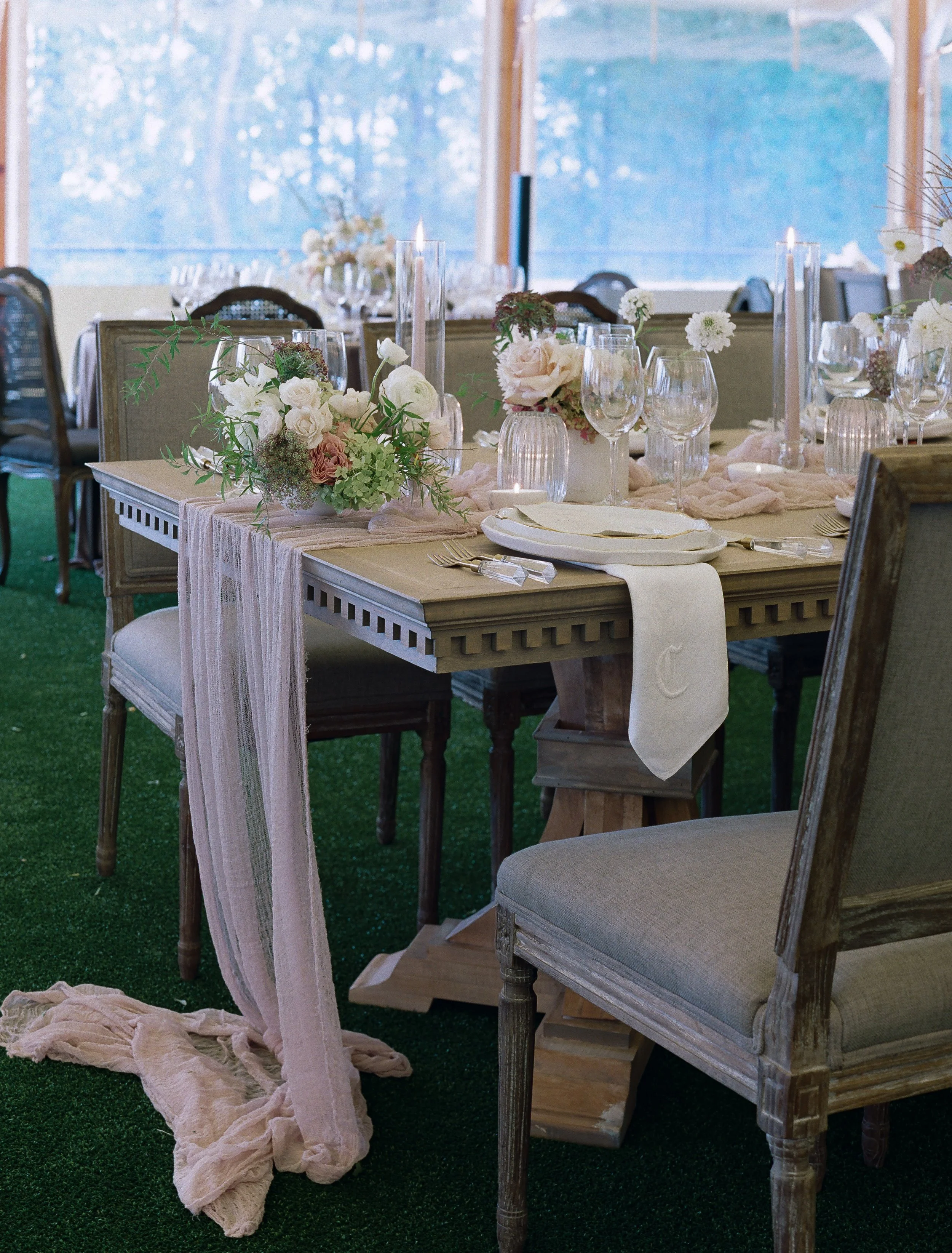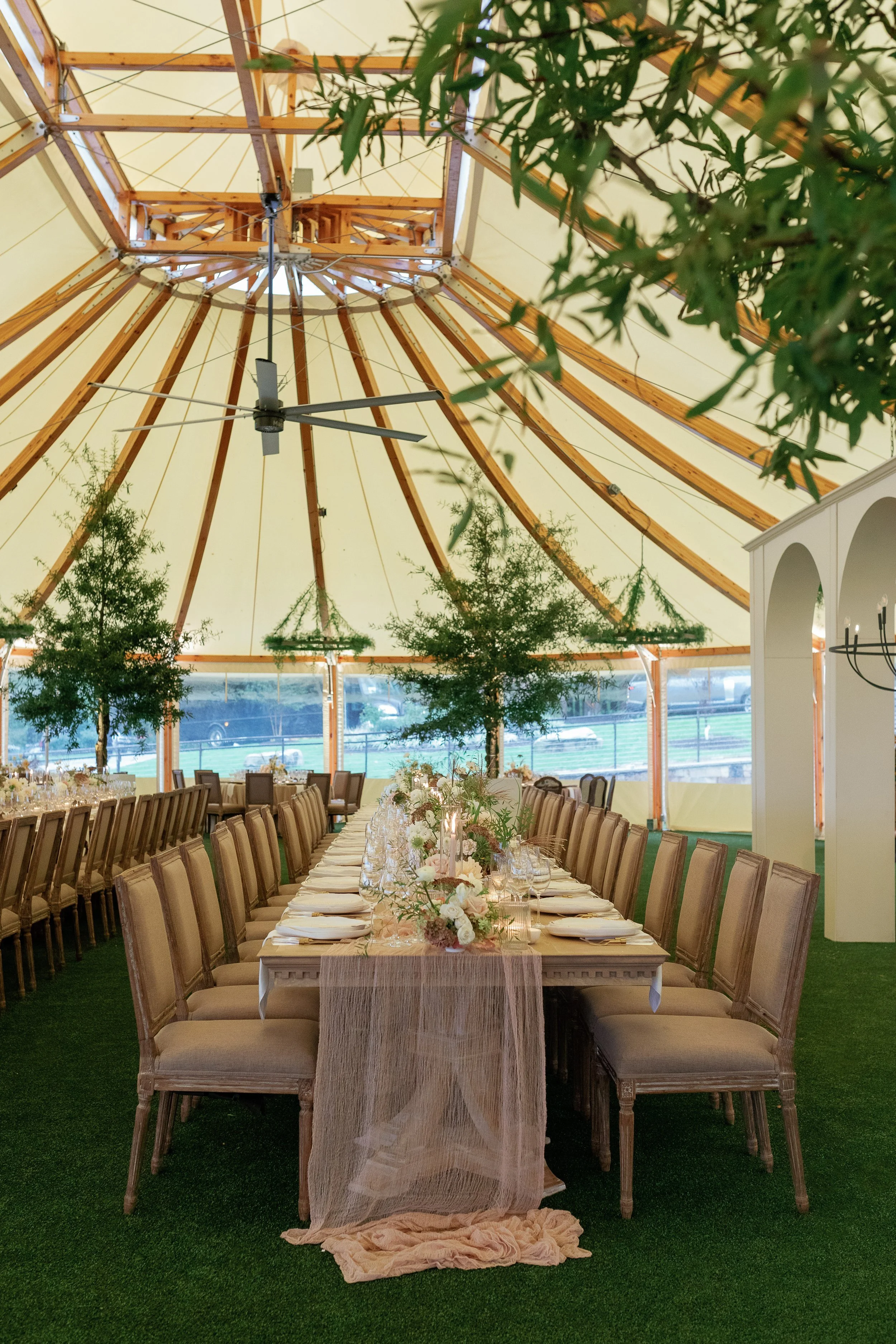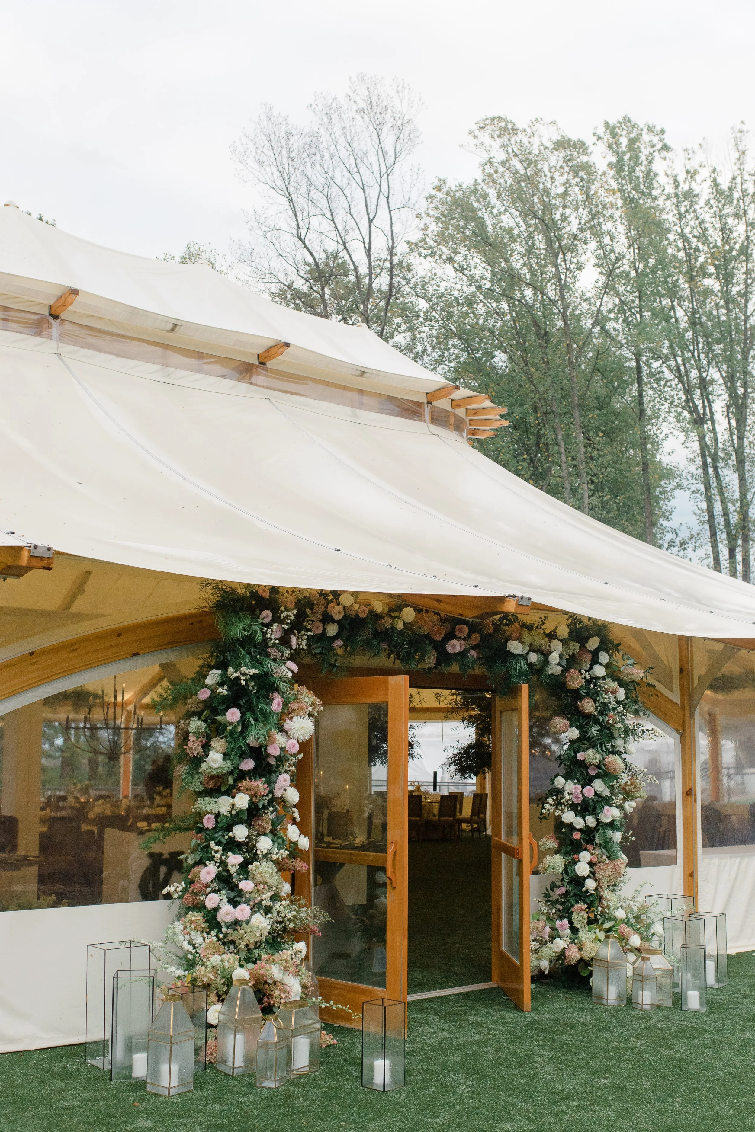 Kylie and Rich’s magical wedding at The Lodge at Moss Neck was full of whimsy and fairytale vibes. Burnished blush, muted mauve, and greenery gave this rustic woodland wedding an elegant and romantic touch. This total stunner of the day was the long path of gardens, appearing to grow from the ground, all leading up to the huge wall filled to the brim with roses and mums. Planning by Evoke DC and photography by Laura Murray.