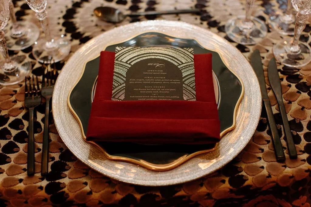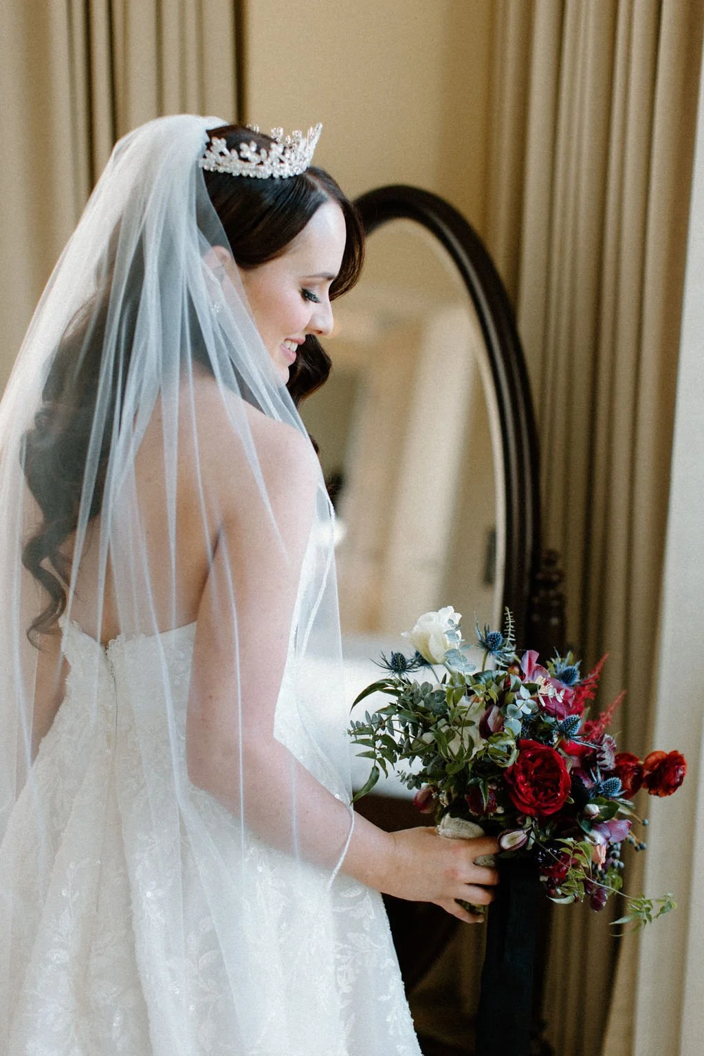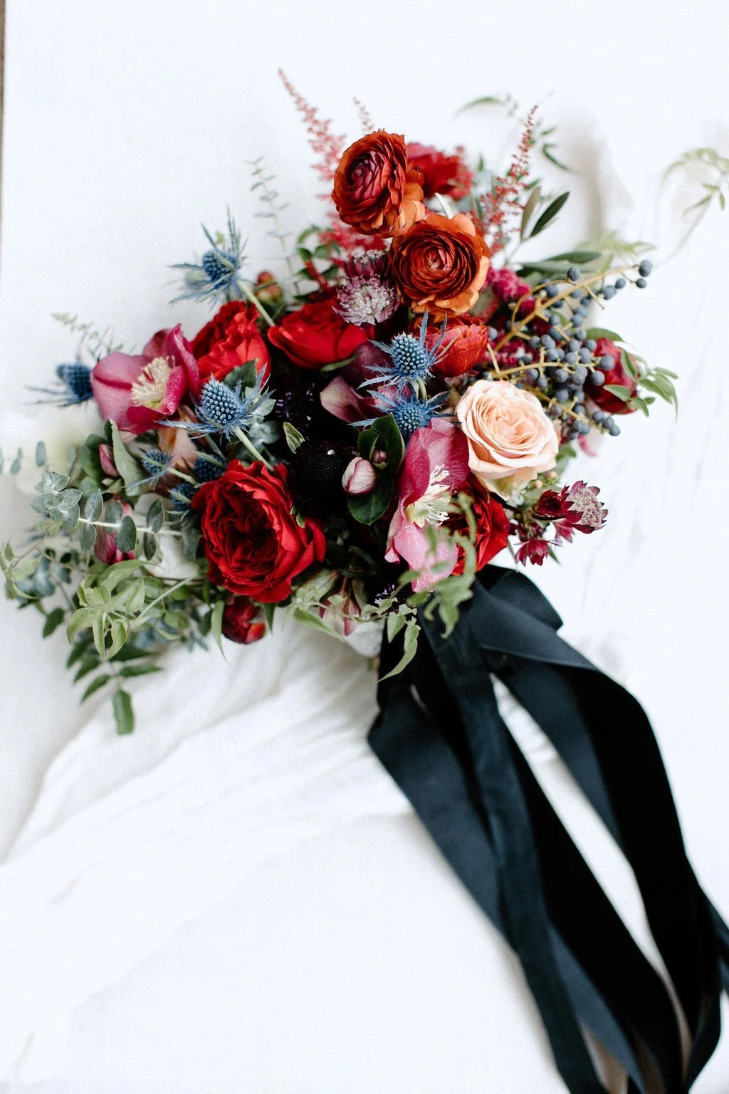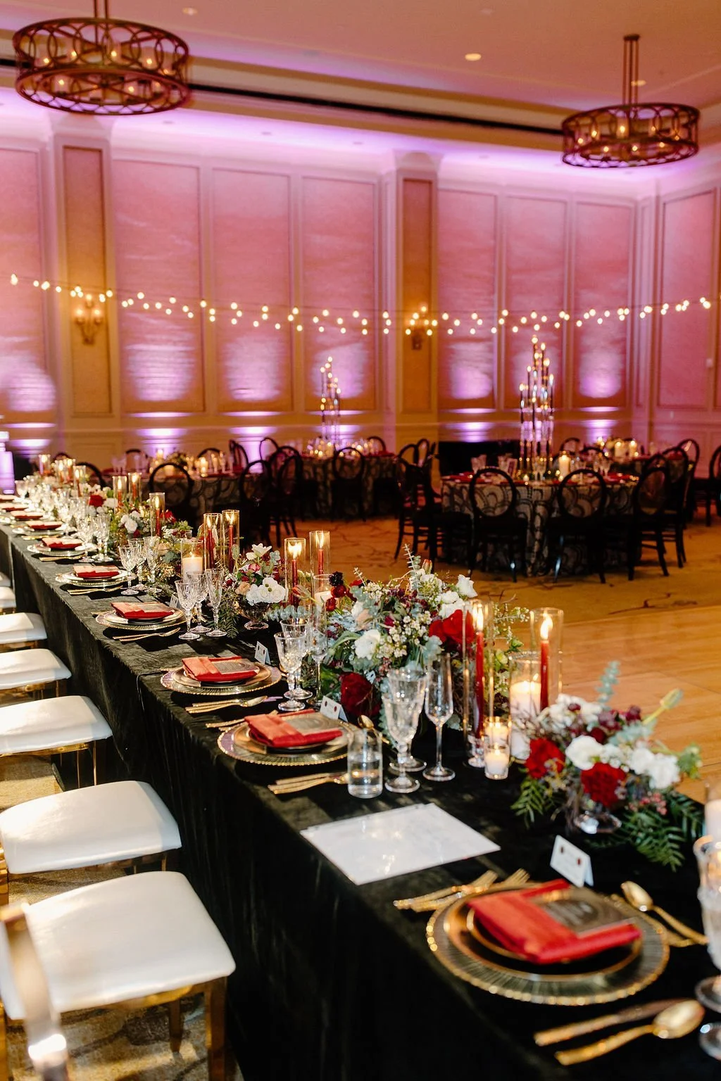 Rachel + Alex’s holiday wedding was beautifully elegant with rich touches. The couple focused on lush, deep details that complimented the winter affair. Along with the velvet and jewel-tones, the showstopper of the day was truly the large arch behind the couple at the ceremony. Planning by Havard Events and Design and photography by Erika Tuesta