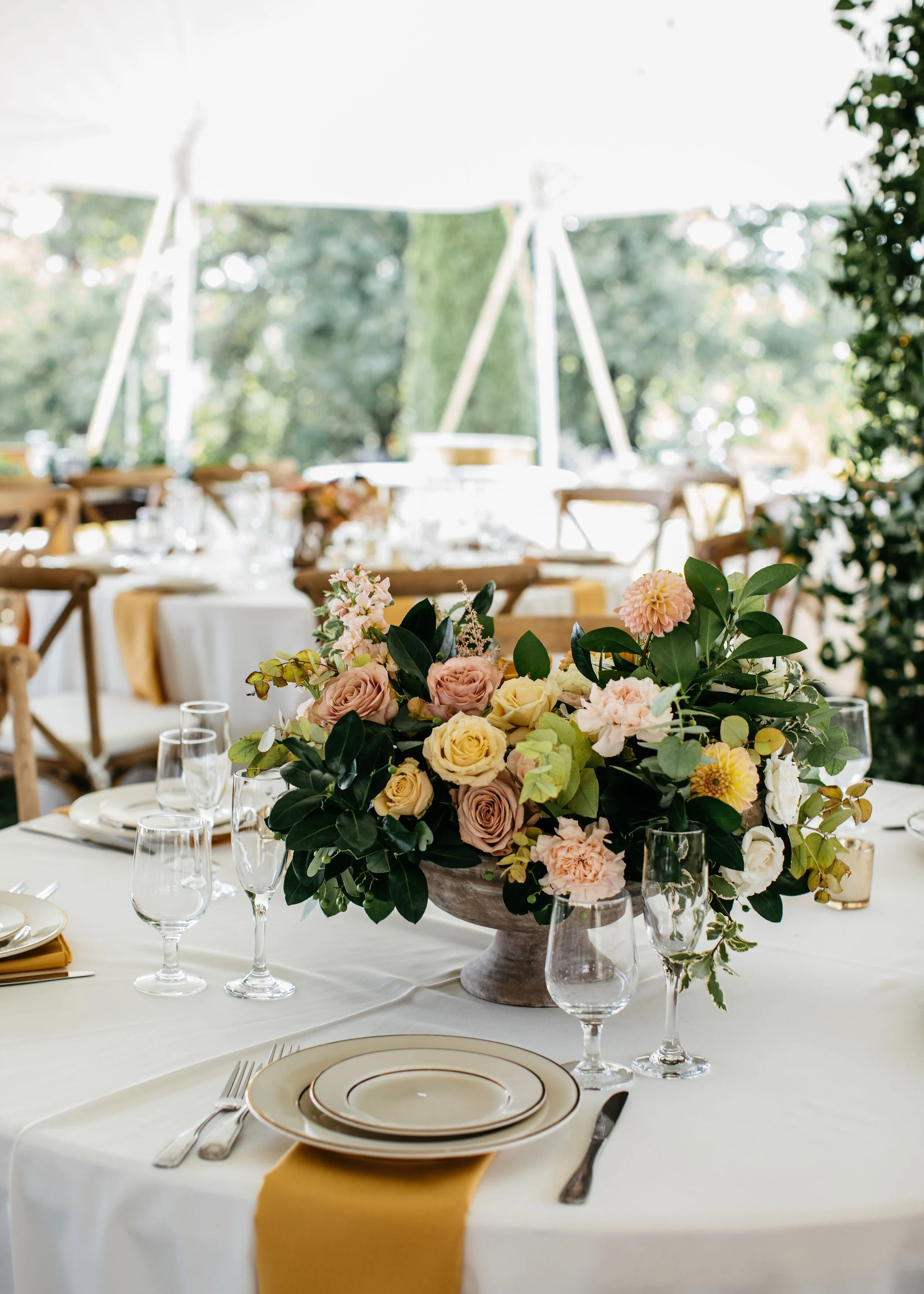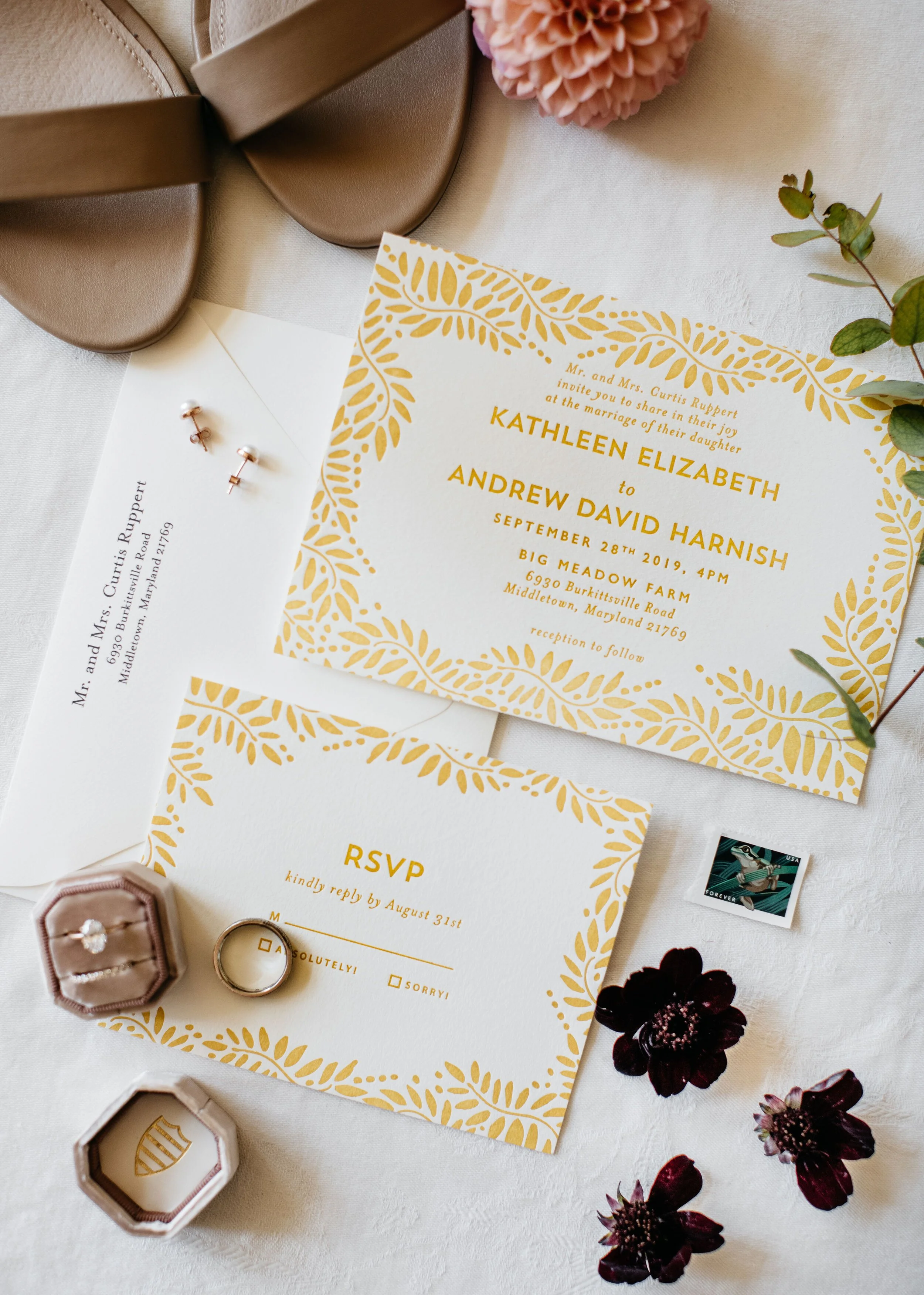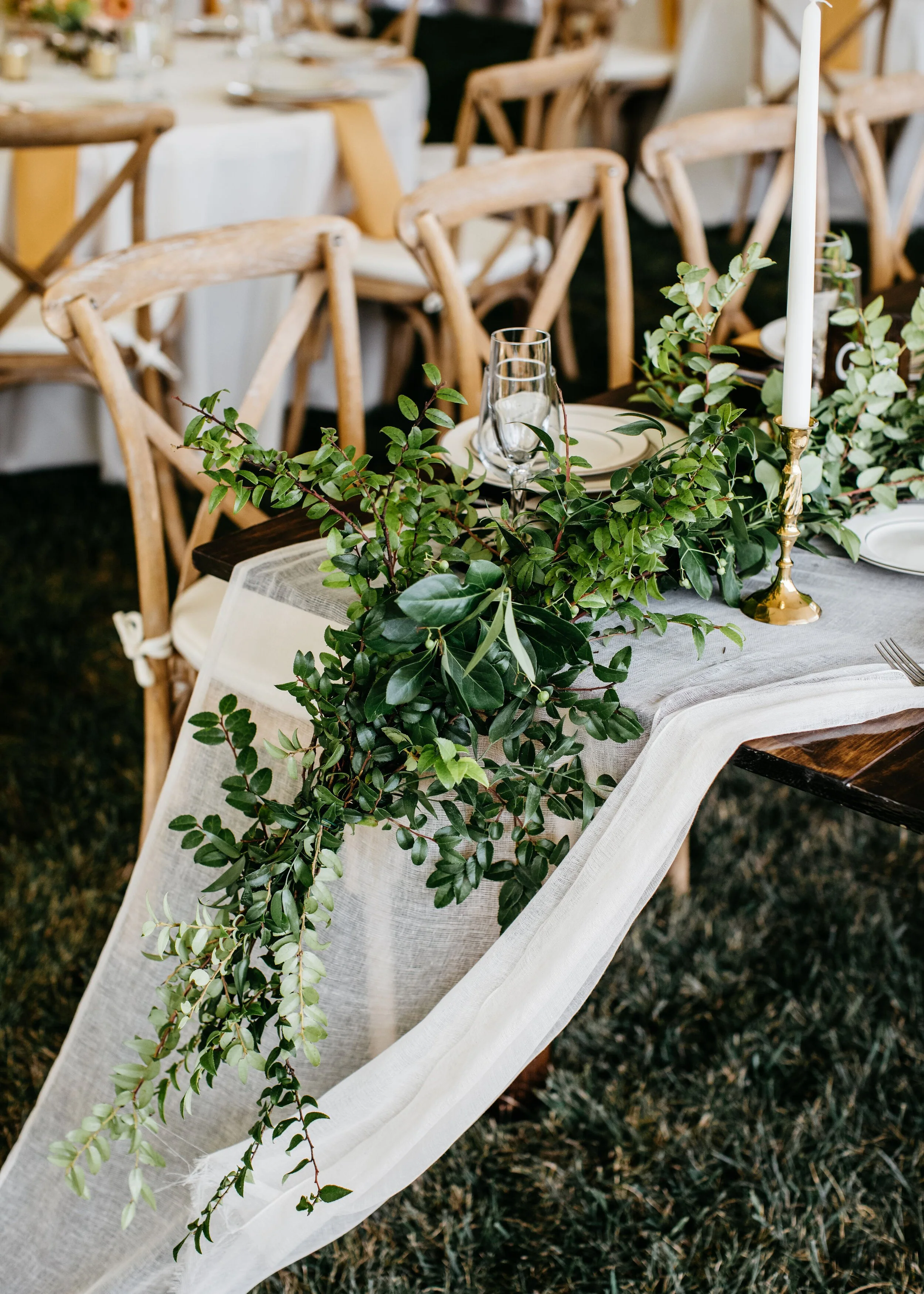 Sophie's sweet cousin Kathleen got married to Andy at her family farm in Burkettsville, MD. It was so wonderful working along with Kim Newton Weddings to make their dream wedding a reality. From the lush greenery climbing up the tent poles to the muted but colorful bouquets, to dancing the night away with family; this wedding goes down on our list of all-time-favorites. Emily Gude captured beautiful photos of this night to be remembered.