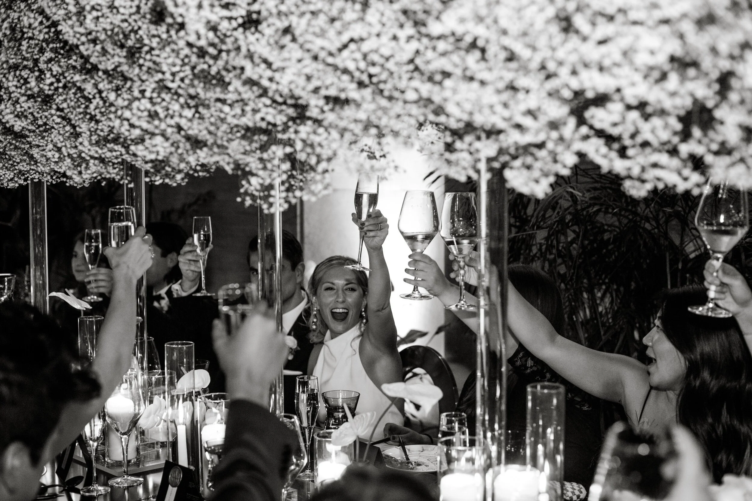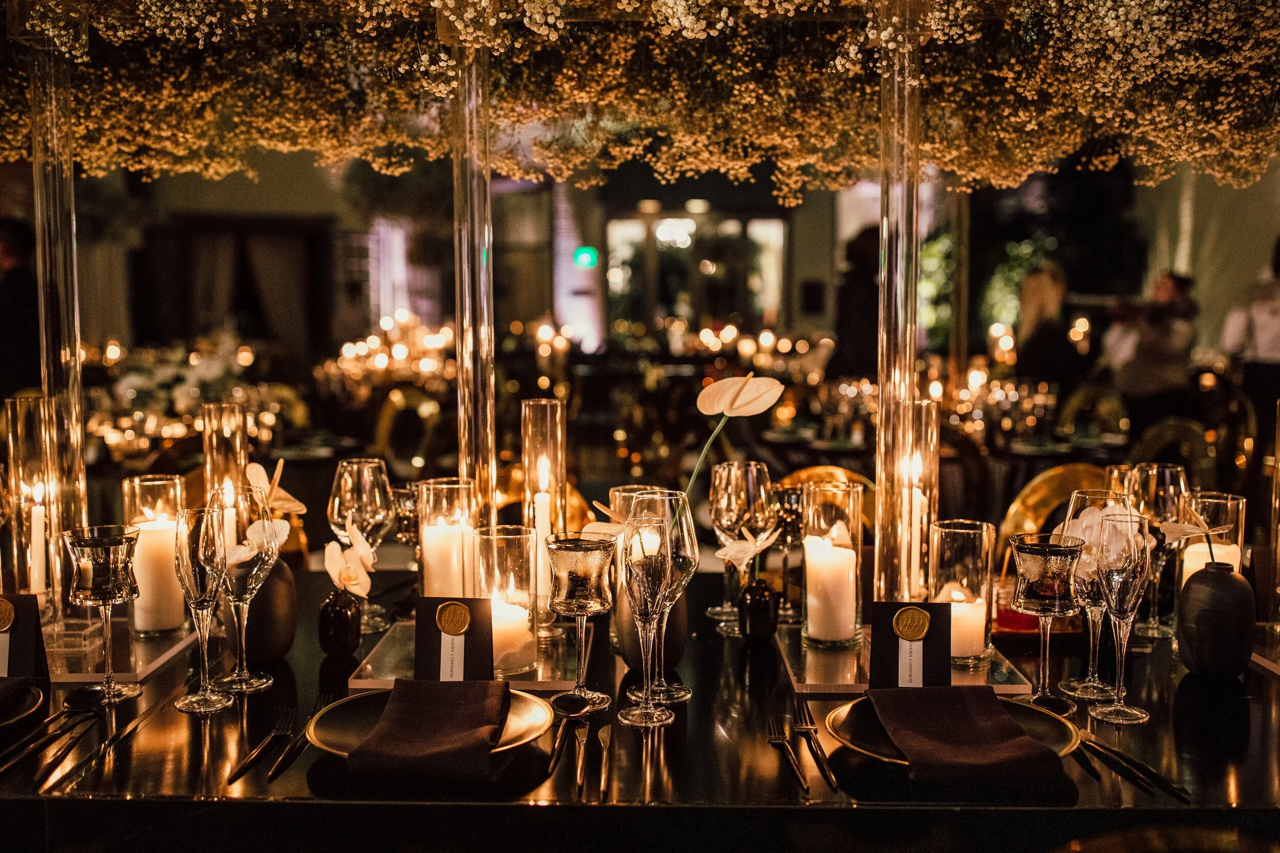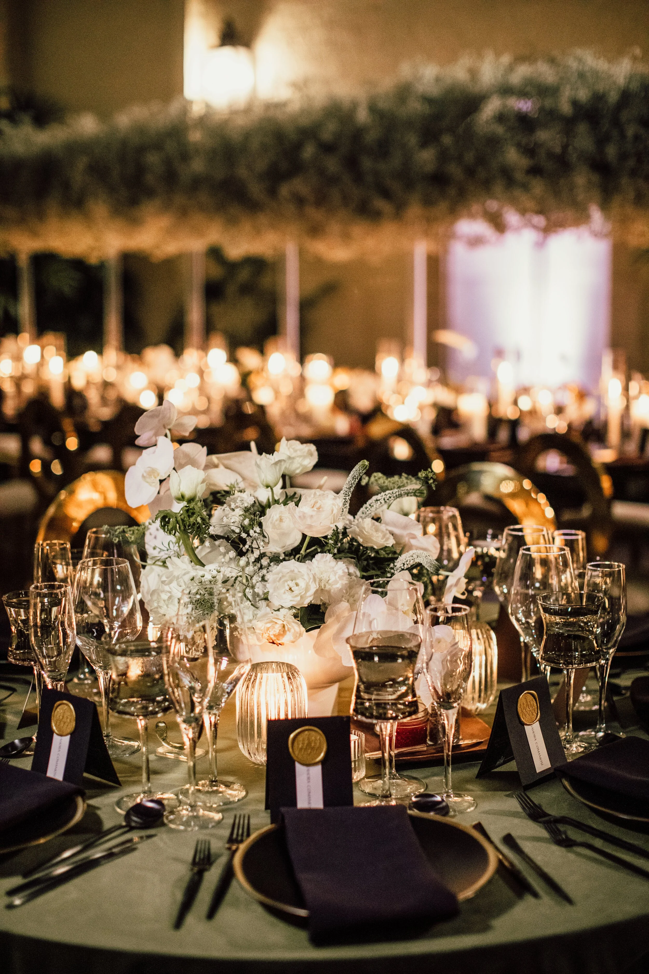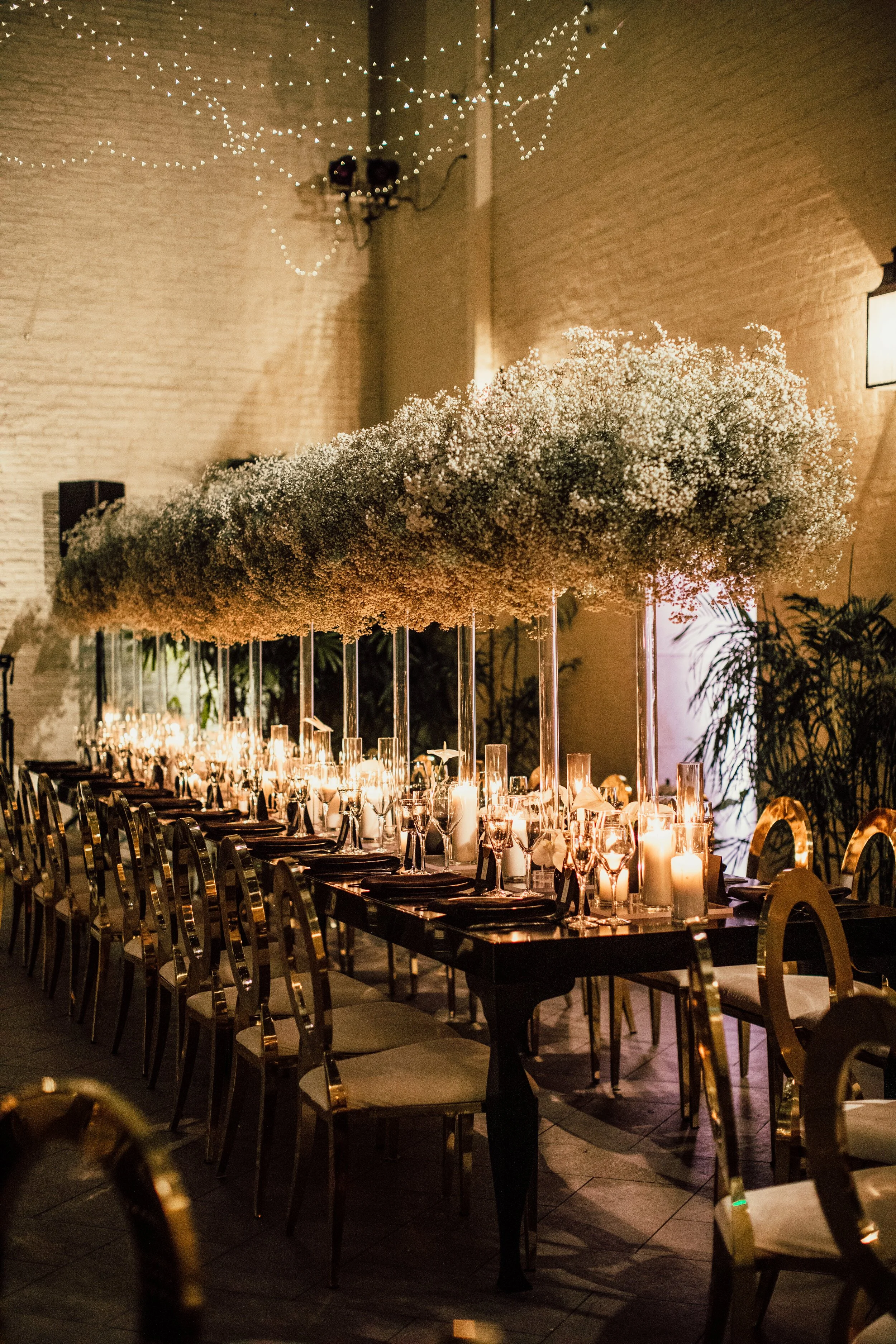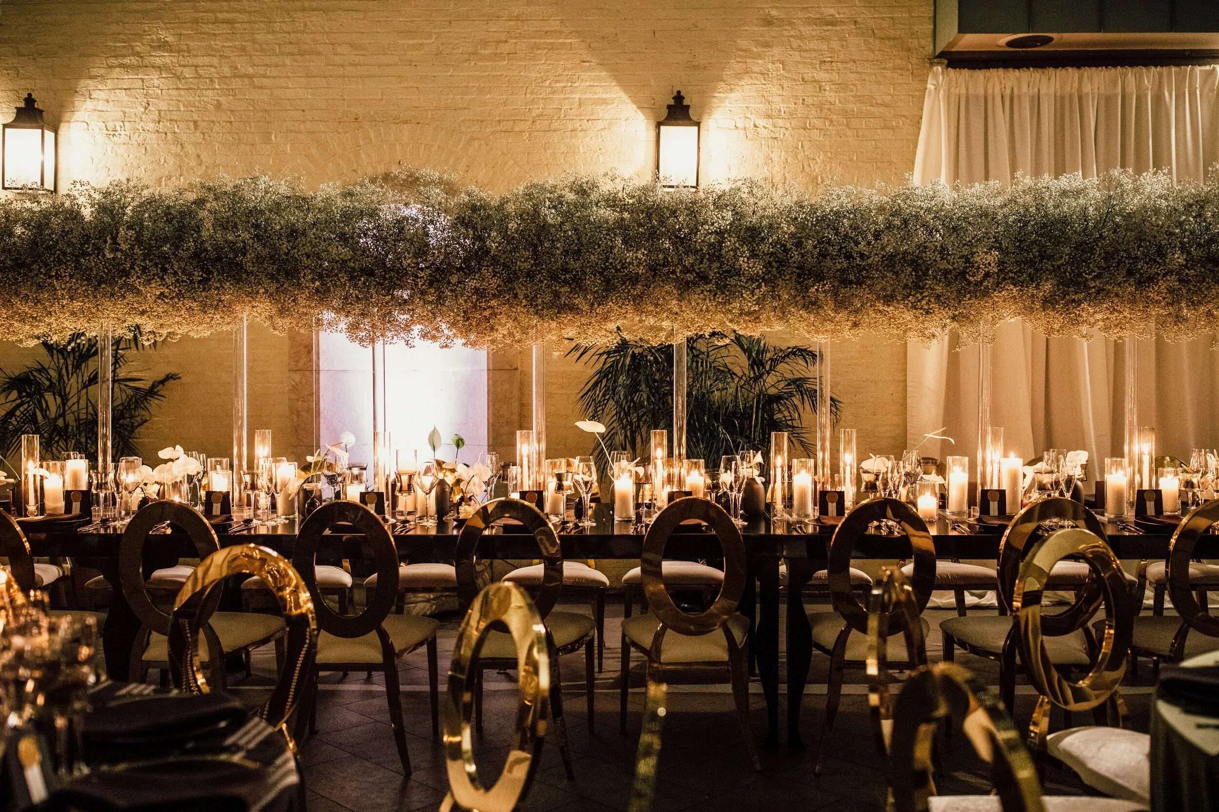 Katie + Ben’s wedding was recently featured on Carats and Cake! This sweet couple was married under clouds of baby’s breath and clusters of candles at the Engineer’s Club. Shades of cream and ivory made up the floral arrangements. Centerpieces accented with orchids and anthurium graced the reception area as guests dined amidst the flickering candlelight. A giant cloud of baby’s breath floated above the head table creating an airy and romantic atmosphere. This event was designed by Lisa Gaskarth Design www.lisagaskarth.com and photographed by Lilly Red.