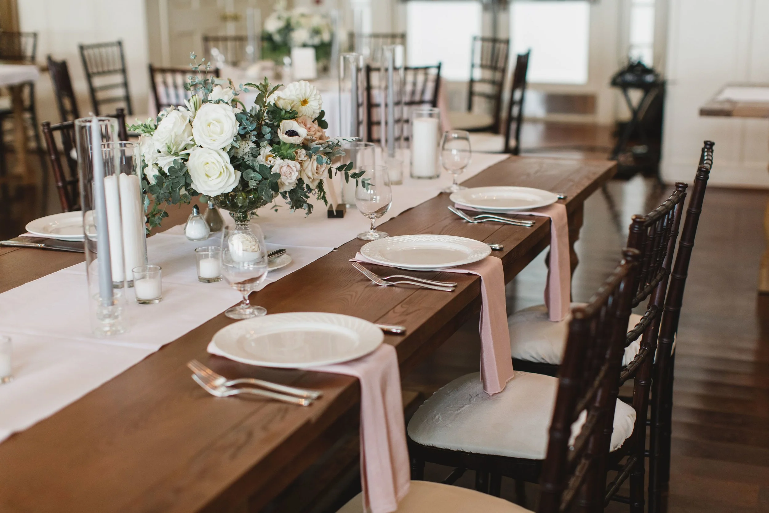 This early September wedding at The Chesapeake Bay Beach Club, on the Eastern Shore, was our definition of dreamy. This stunning bride had a big vision and it was an honor watching it come to life! From the picturesque ceremony arch with a view, to the Cocktail hour space that was draped in smilax. We were in love with how everything came together! It was such a pleasure to be a part of this fun couple’s special day. Photos captured by Dani Leigh Photography for Adriana Marie Events.