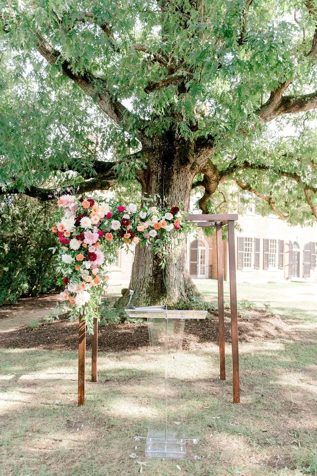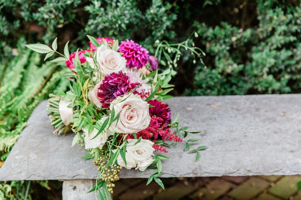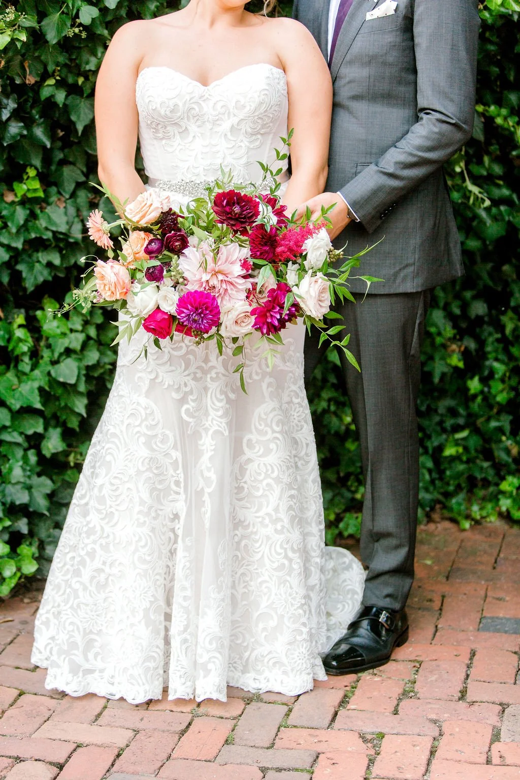 J + G were inspired to use blush and wine tones as their floral color palette after returning from a trip through the wine country of Italy. There day was captured by Love Without Bounds for Kelley Cannon Events at Woodlawn and Pope-Leighey House.