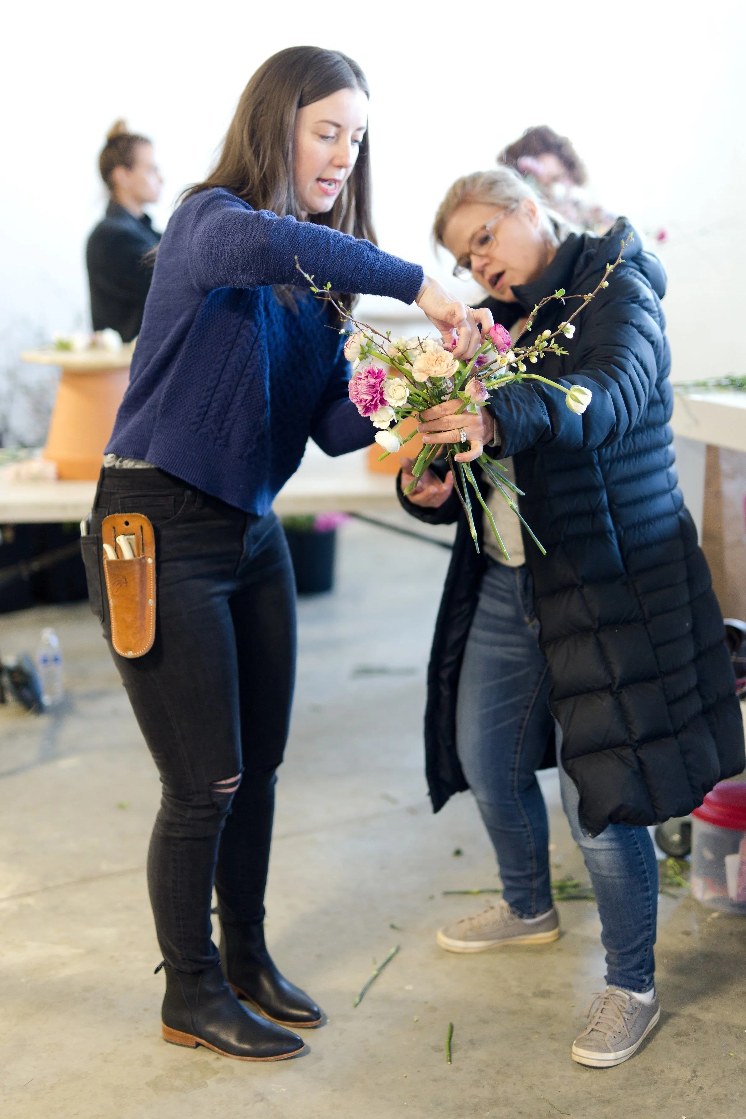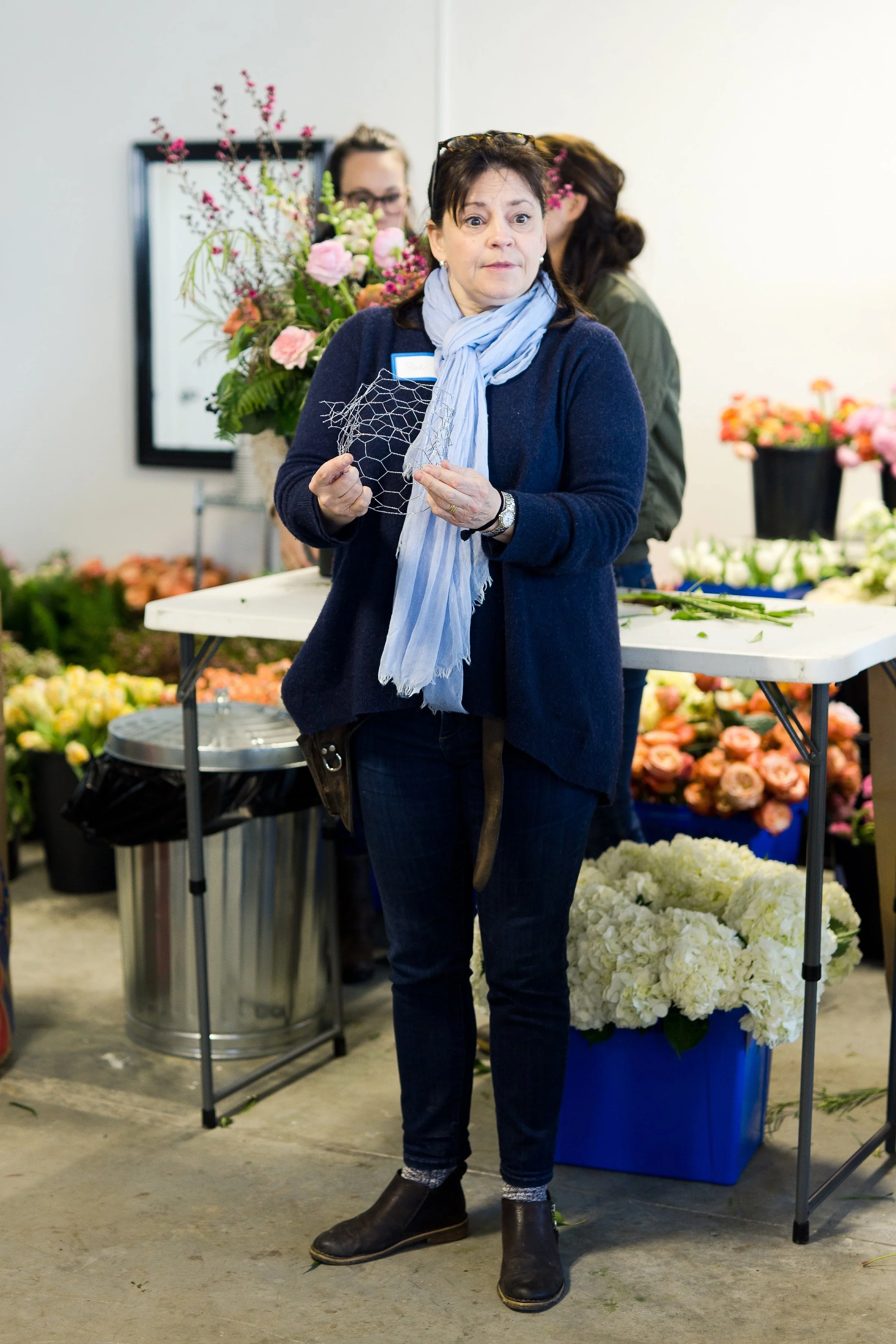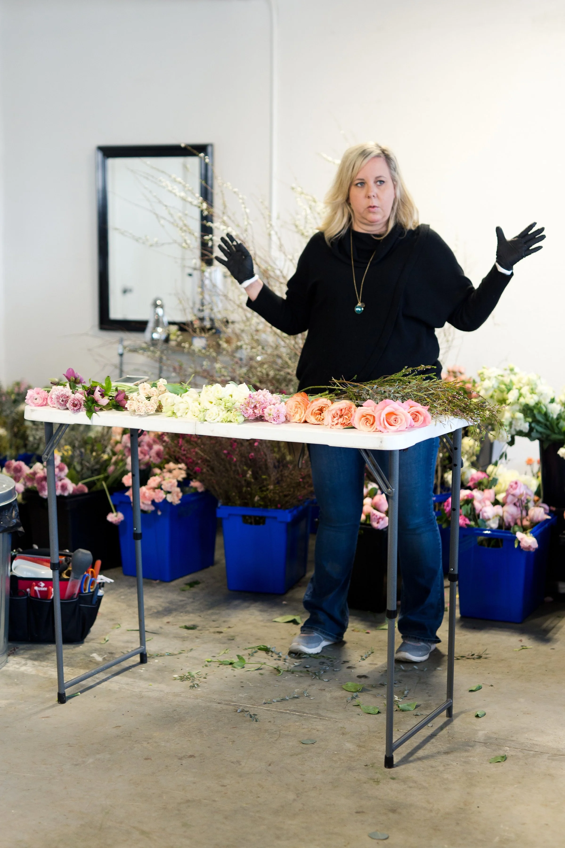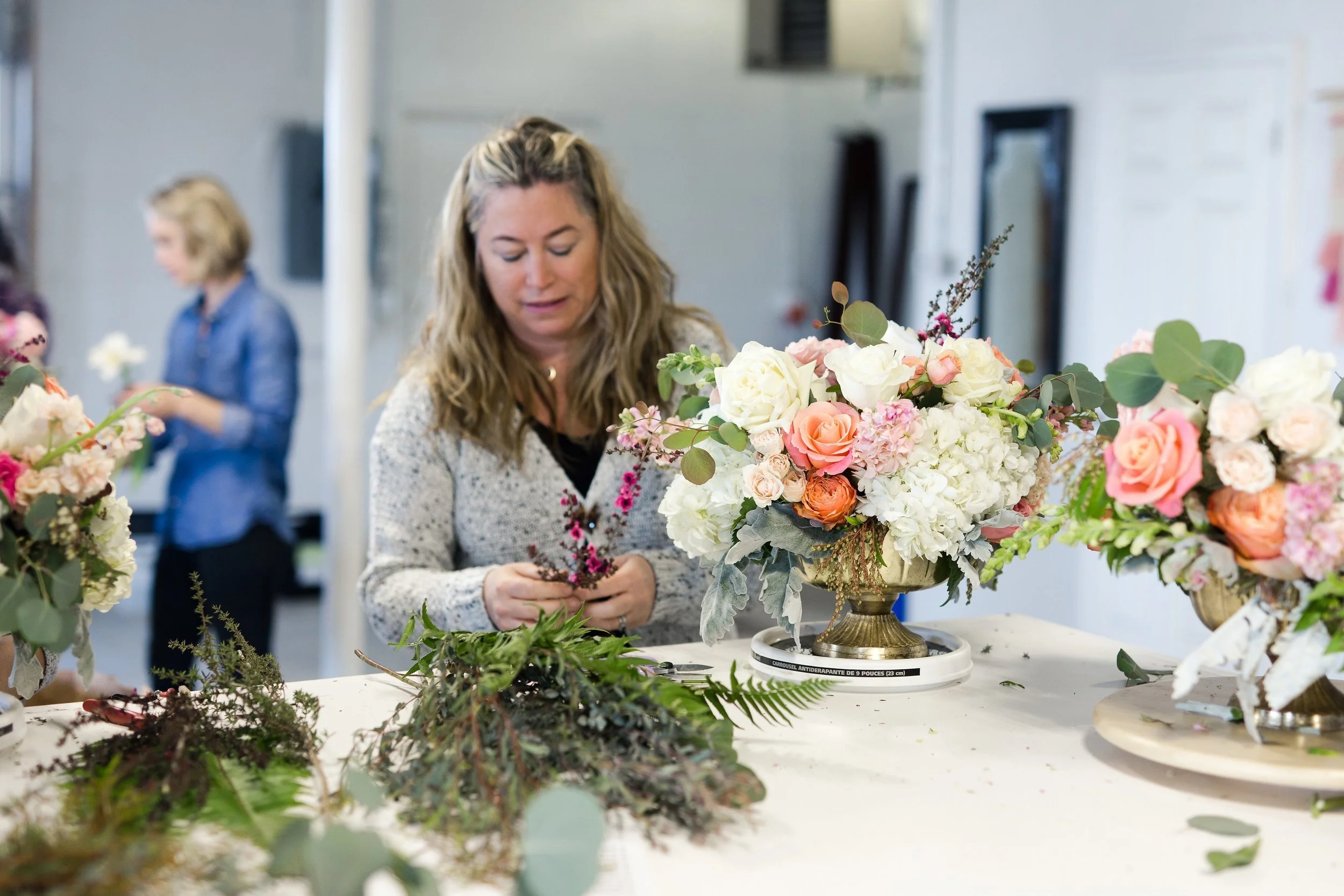 Kelly Shore, from Petals by the Shore, teaching students to design centerpieces.