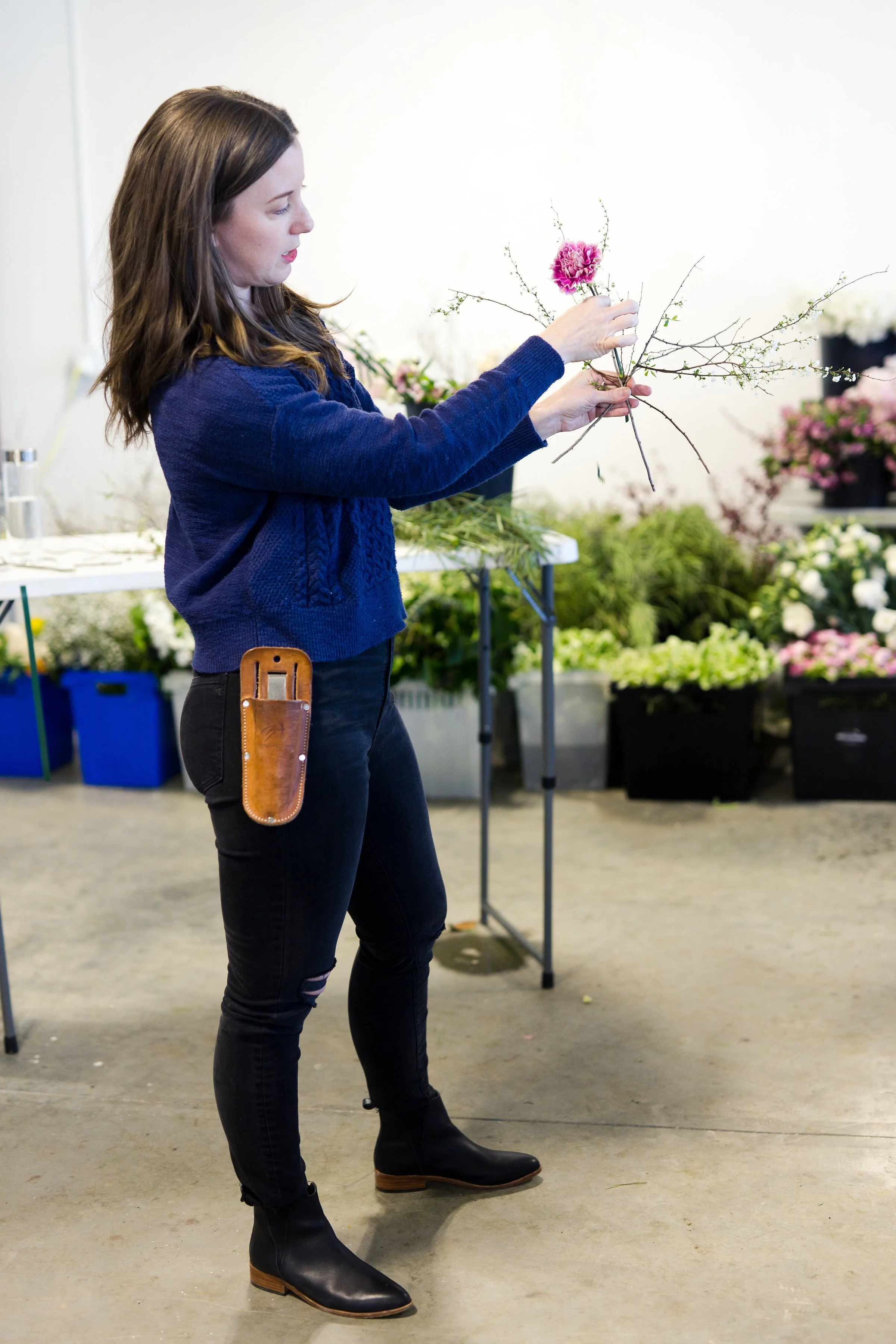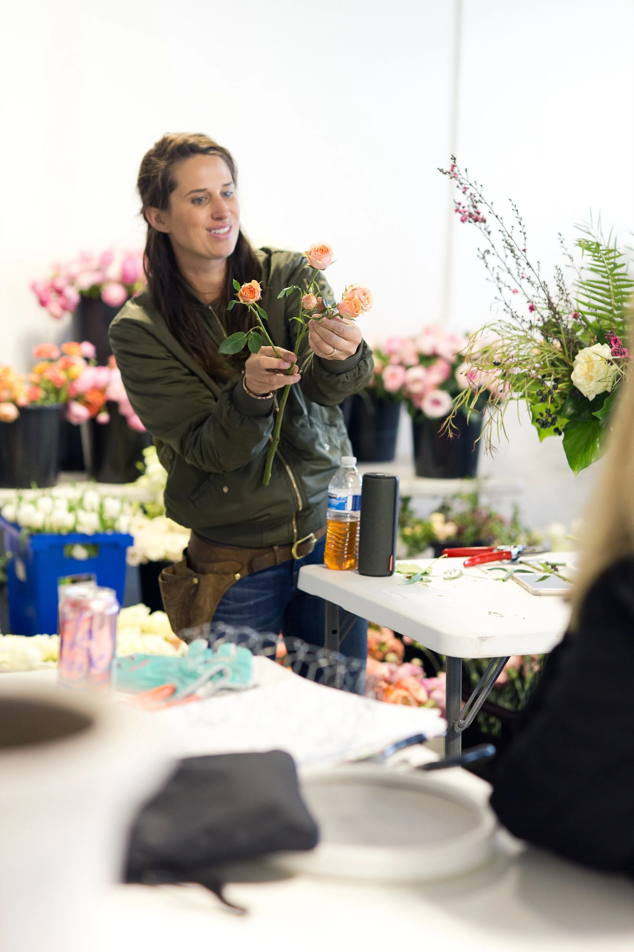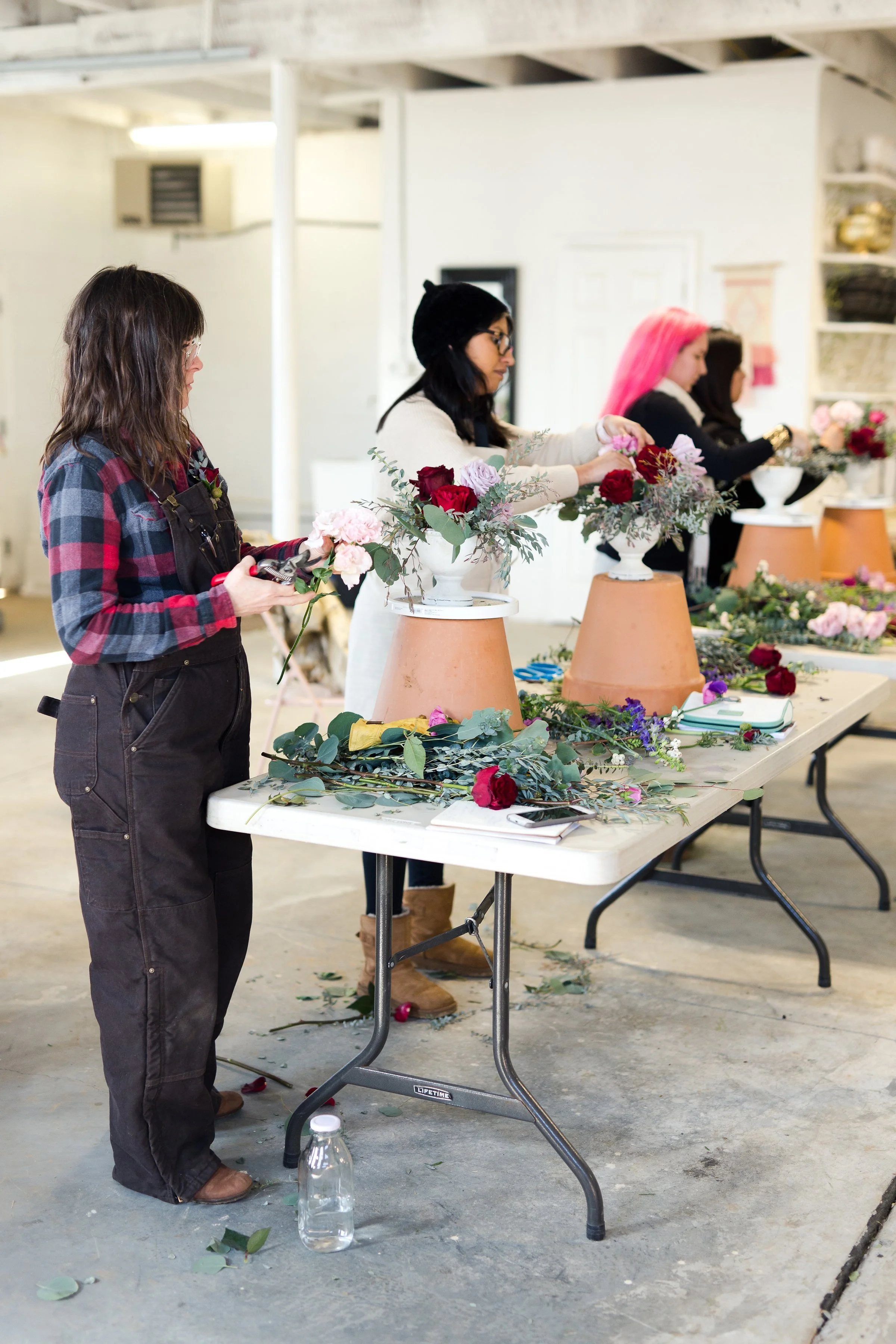 Kelly Shore, from Petals by the Shore, teaching students to design centerpieces.