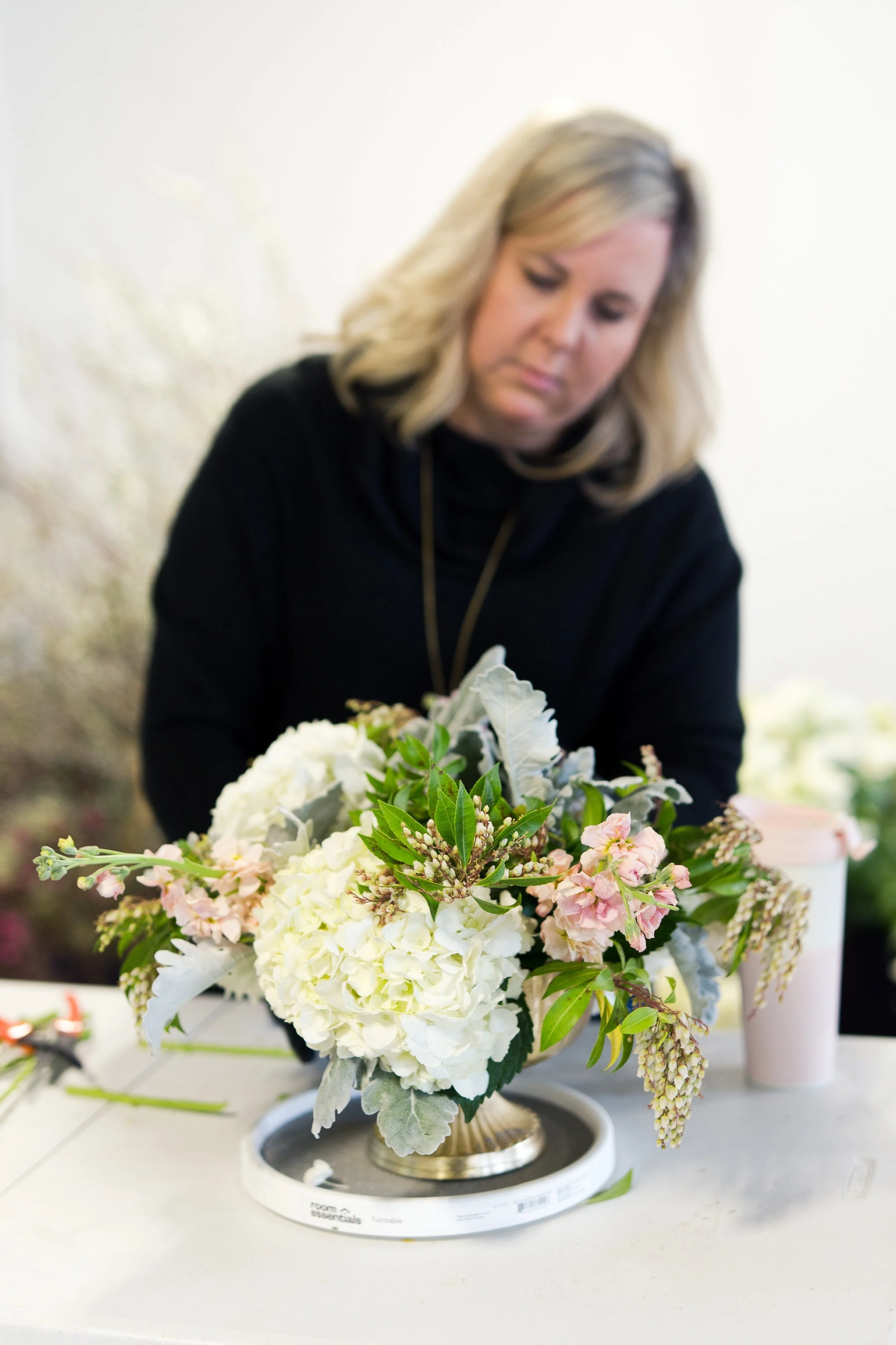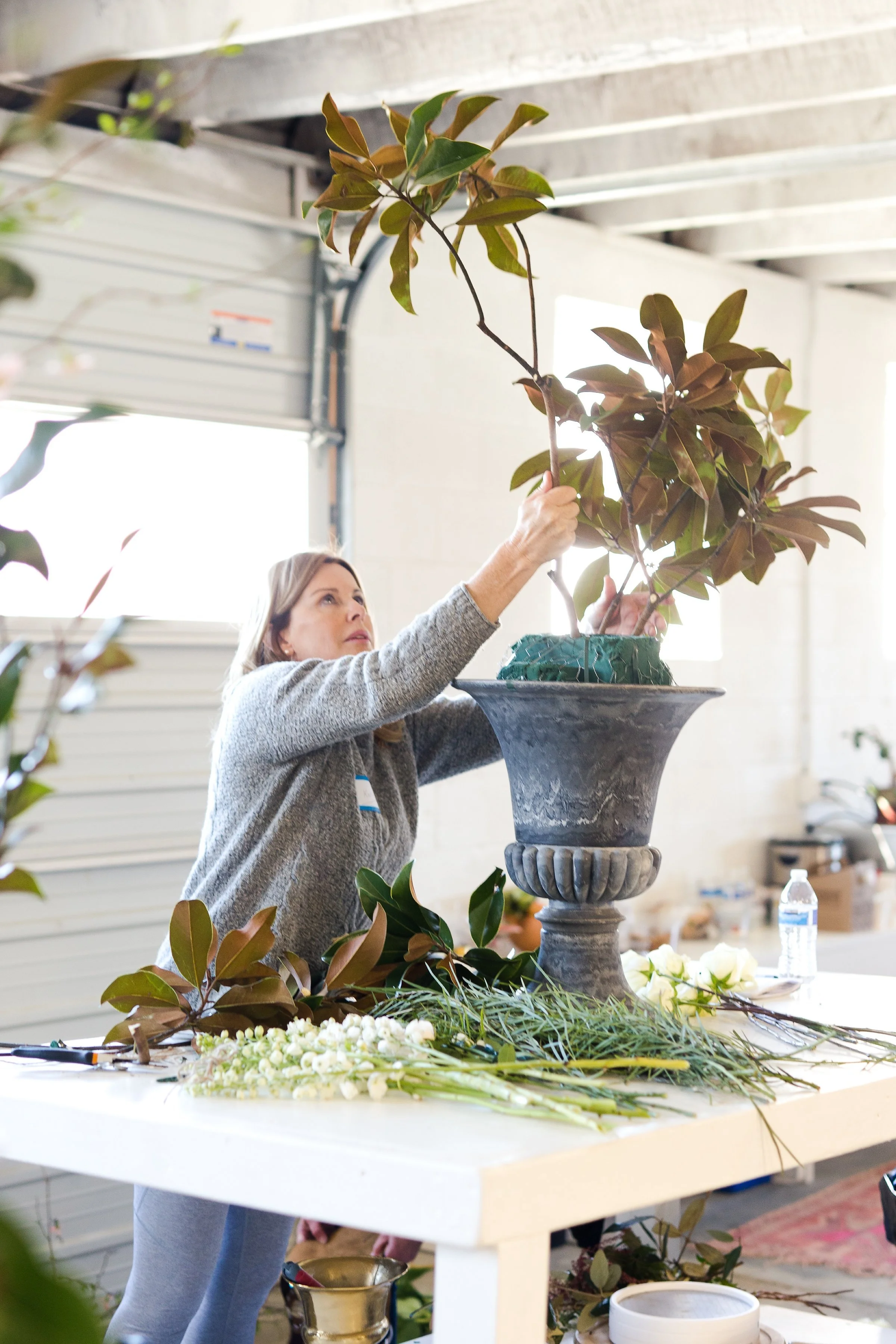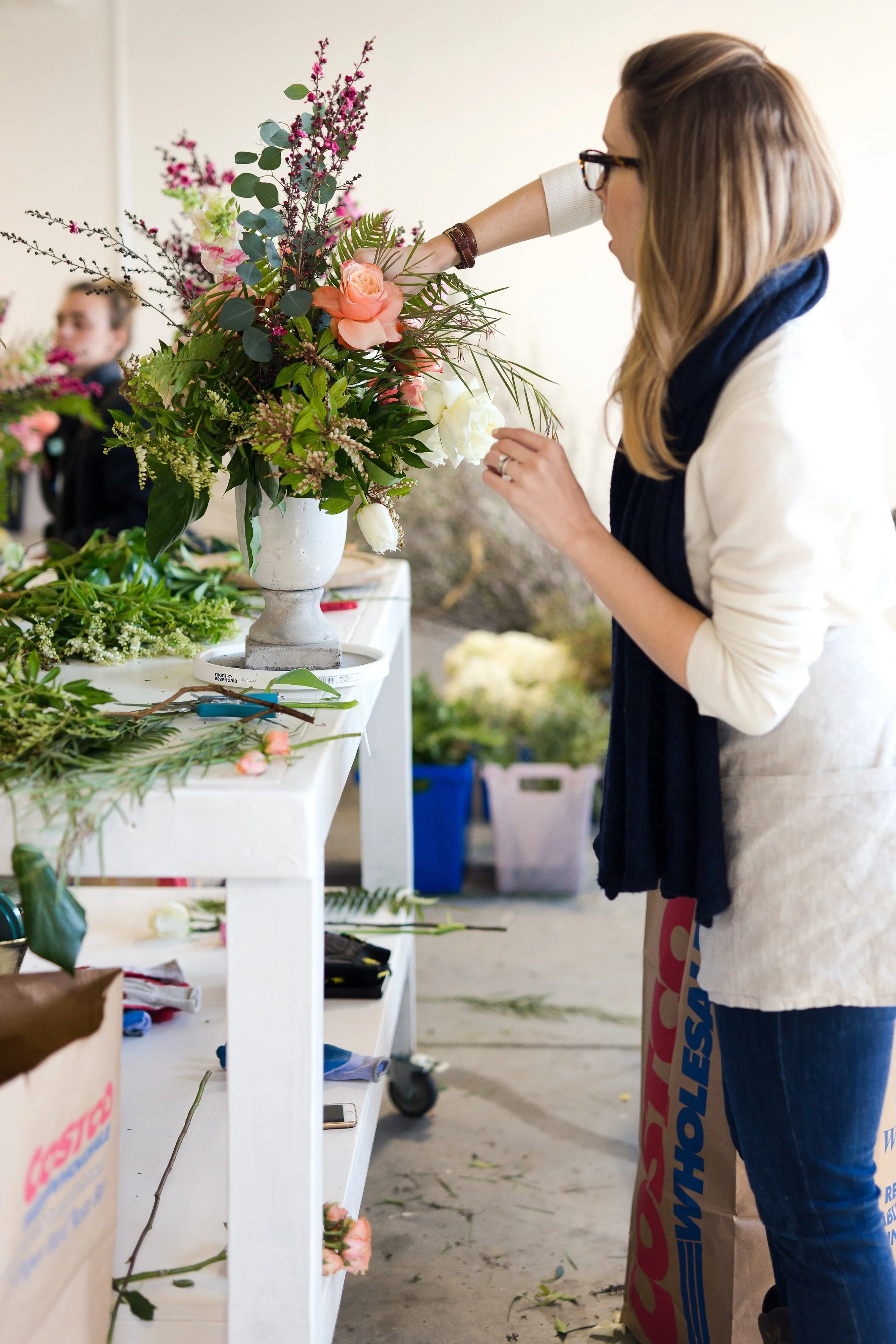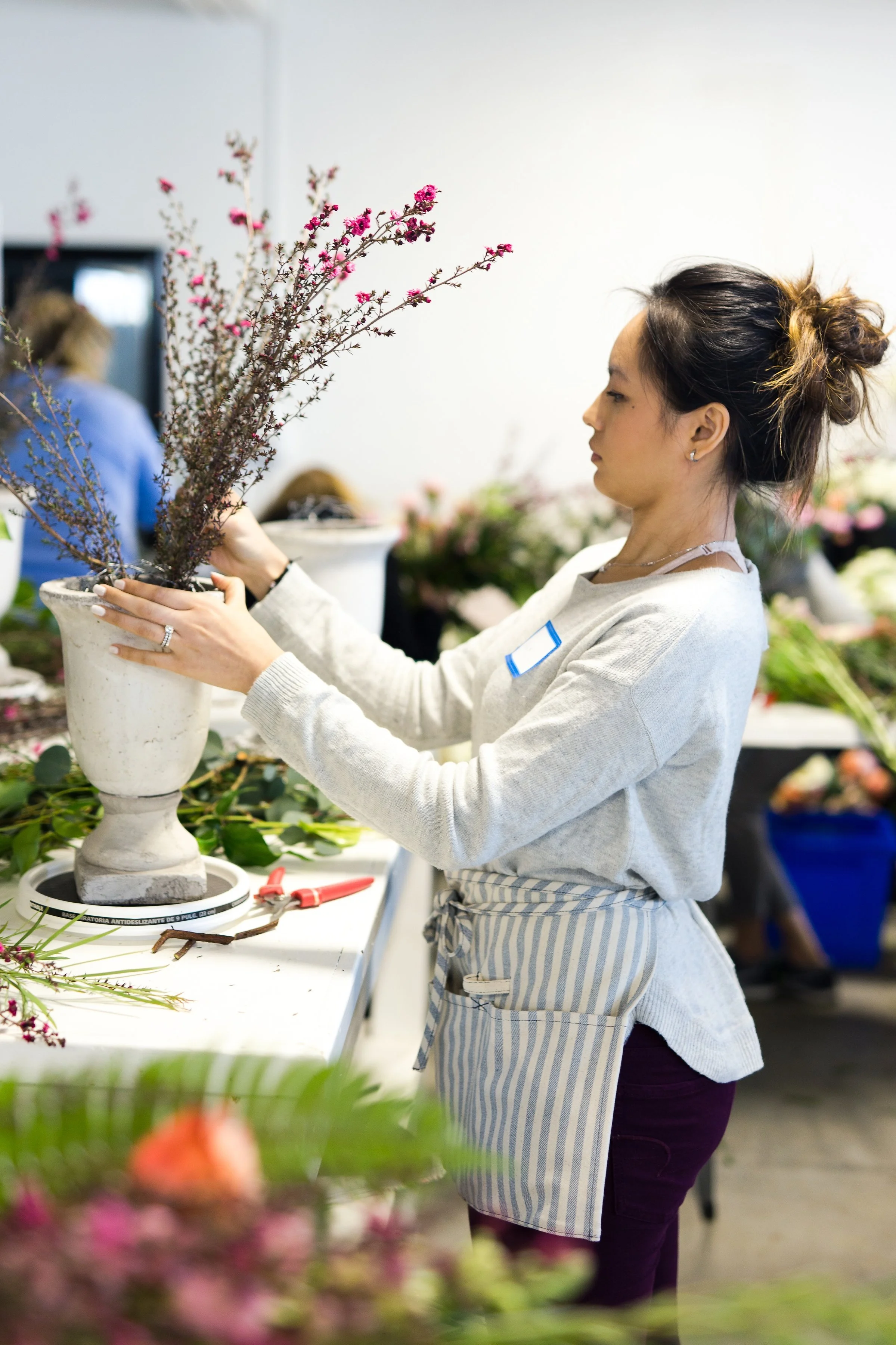 Kelly Shore, from Petals by the Shore, teaching students to design centerpieces.