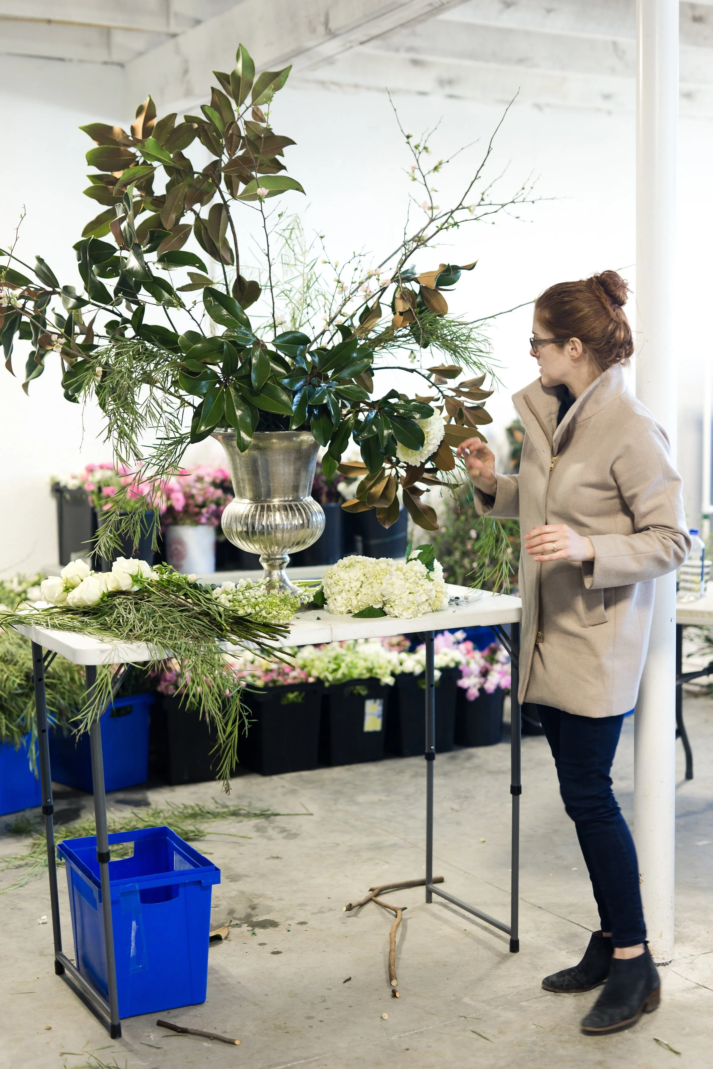 Mary Ellen of Steelcut Flower Co. teaching students to design centerpiece and installations.