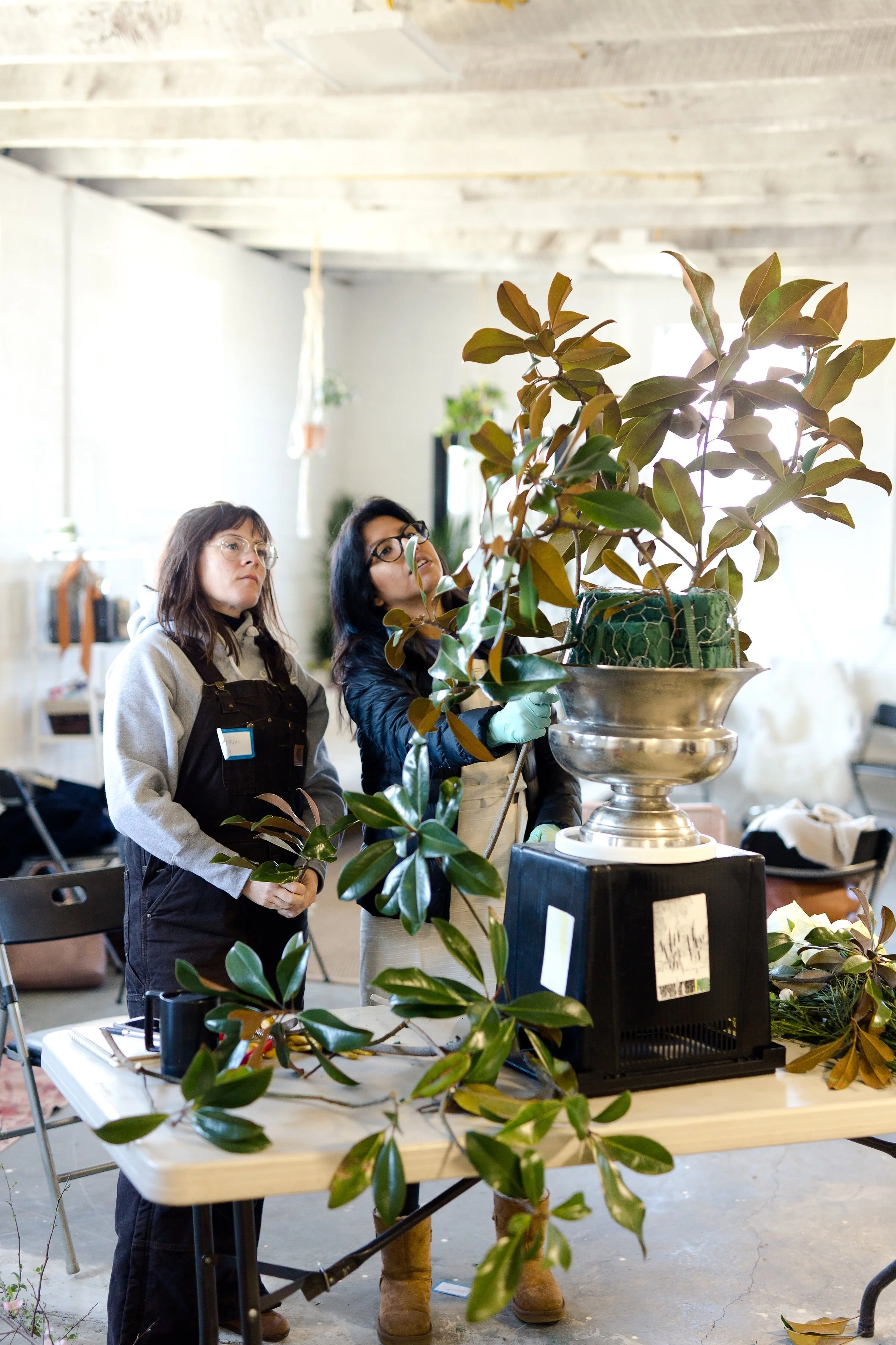 Lauren and Rachel, of Sweet Root Village, teaching on large scale arrangements and installations.