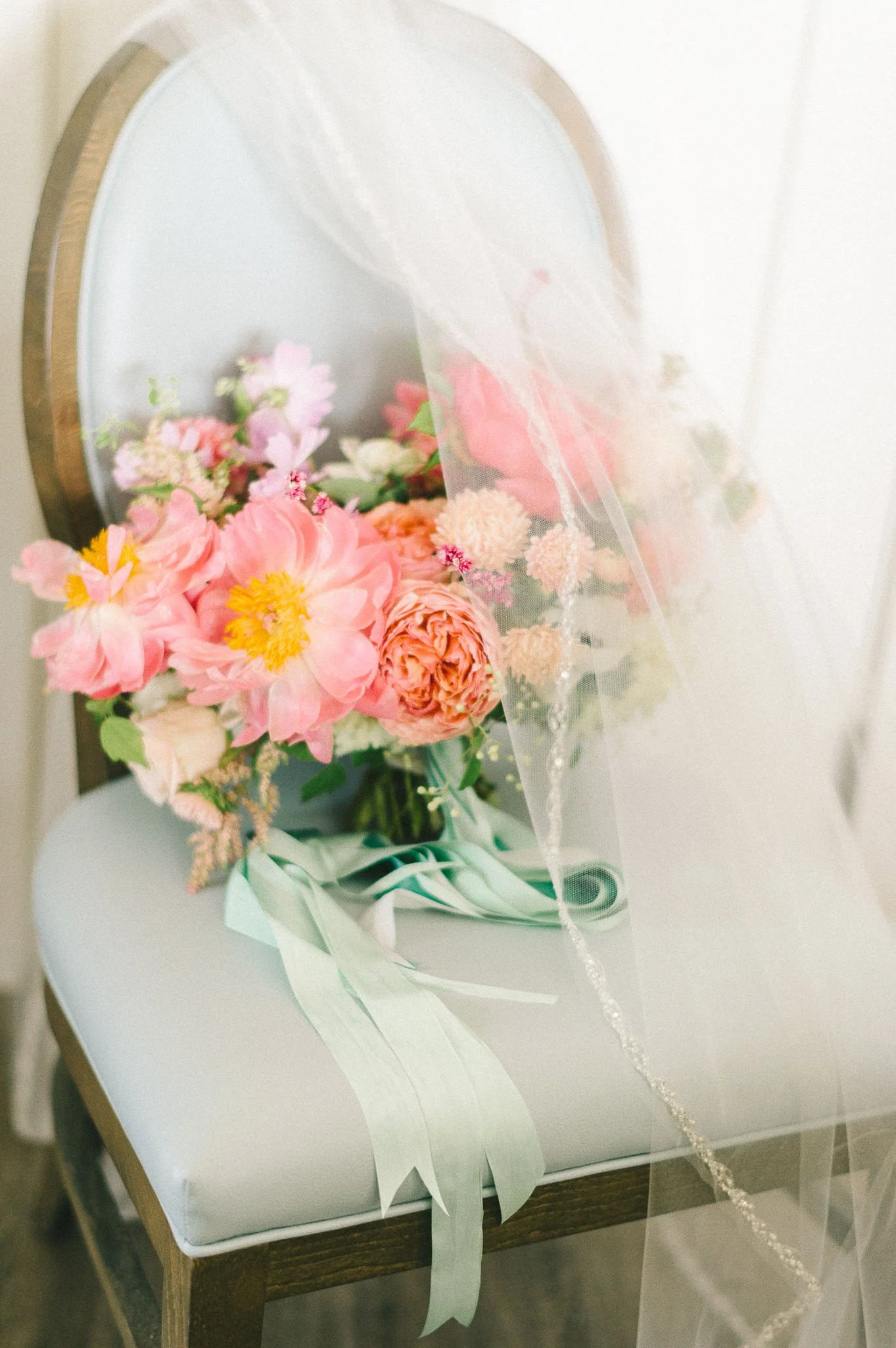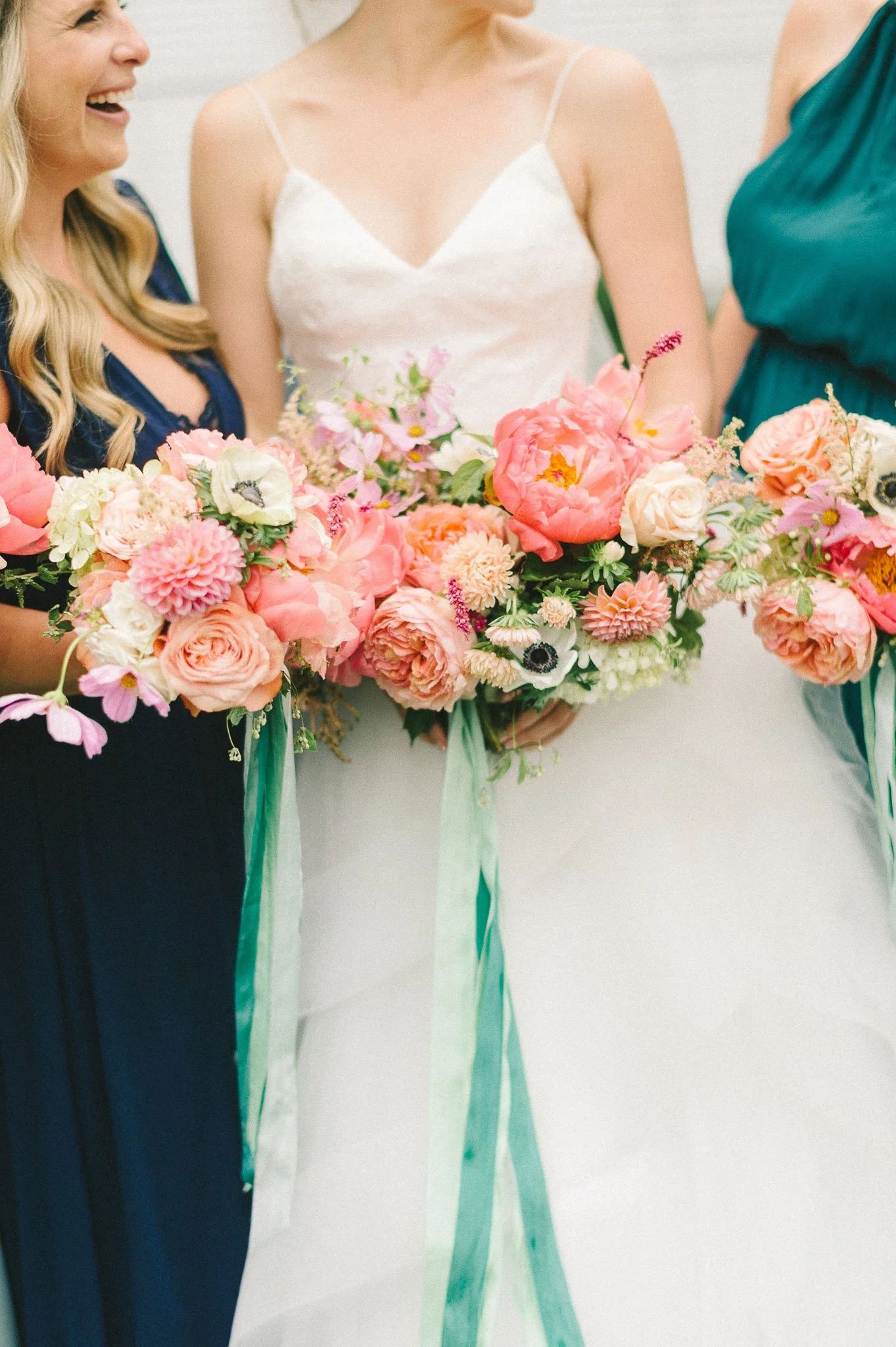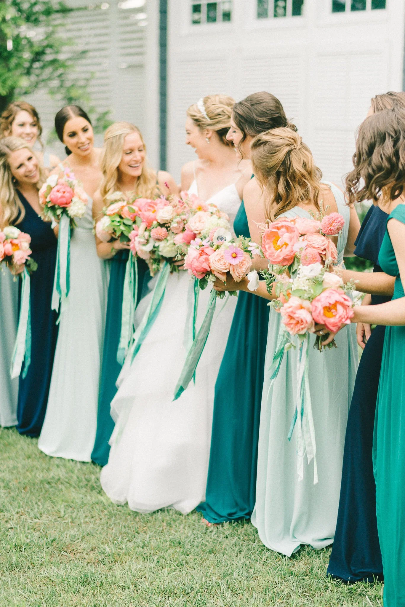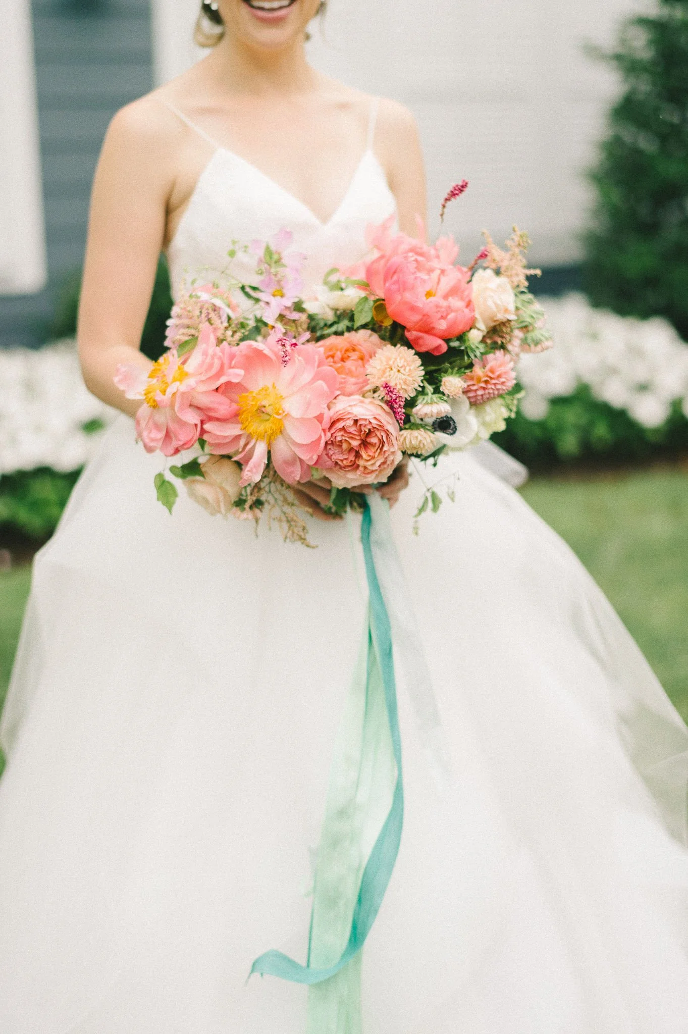 This colorful and dreamy coastal wedding stole our hearts. We are in love with these lush coral blooms and all of the teal accents. Alyssa and Michael’s day was beautifully captured by Elizabeth Fogarty at the Chesapeake Bay Beach Club.