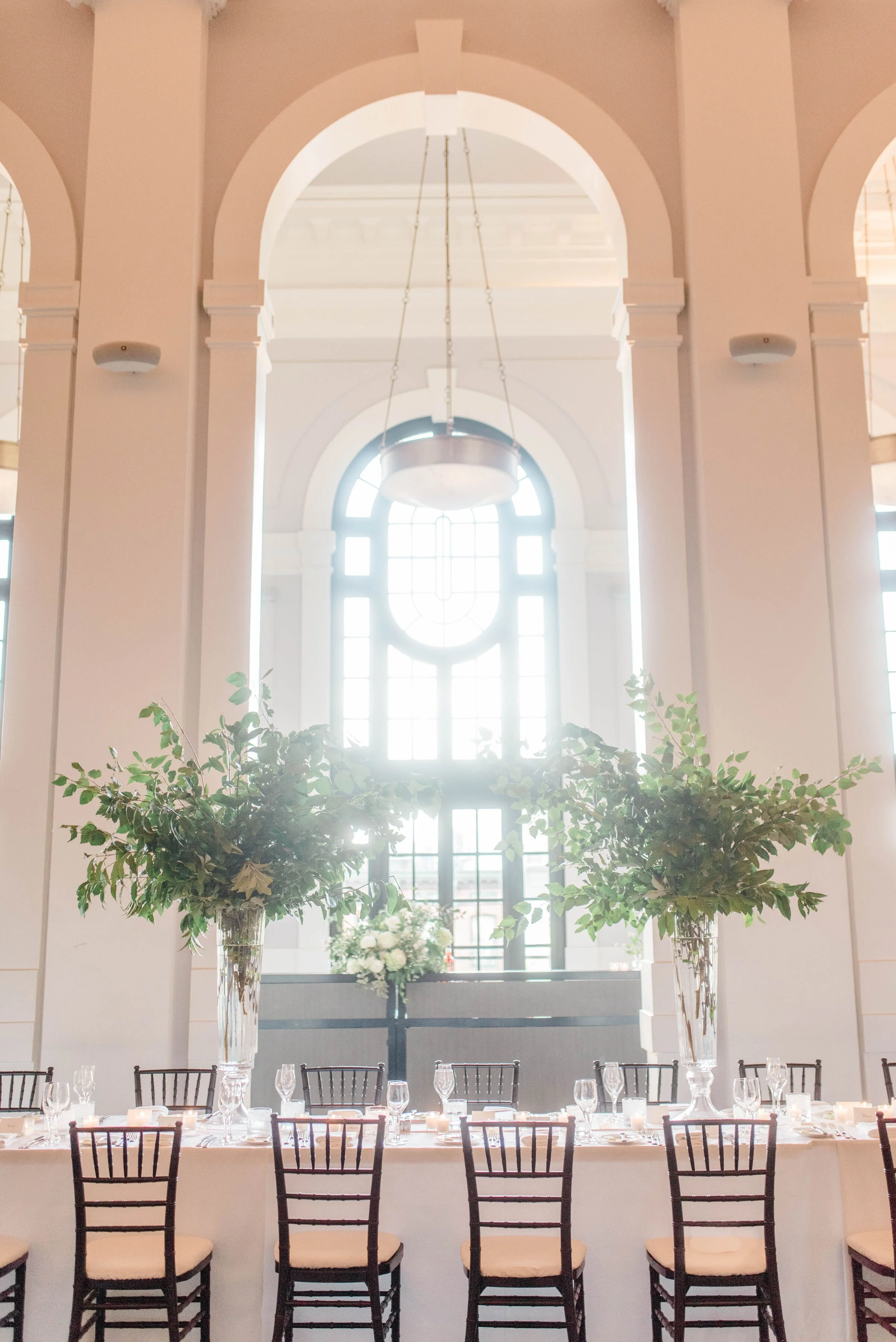 Last fall, Debbie and Rodger married at Sagamore Pendry in Baltimore. They planned a modern black and white wedding with elegant personal details. To not distract from the beautiful architecture of the space, we kept it simple with white flowers and lush greenery..