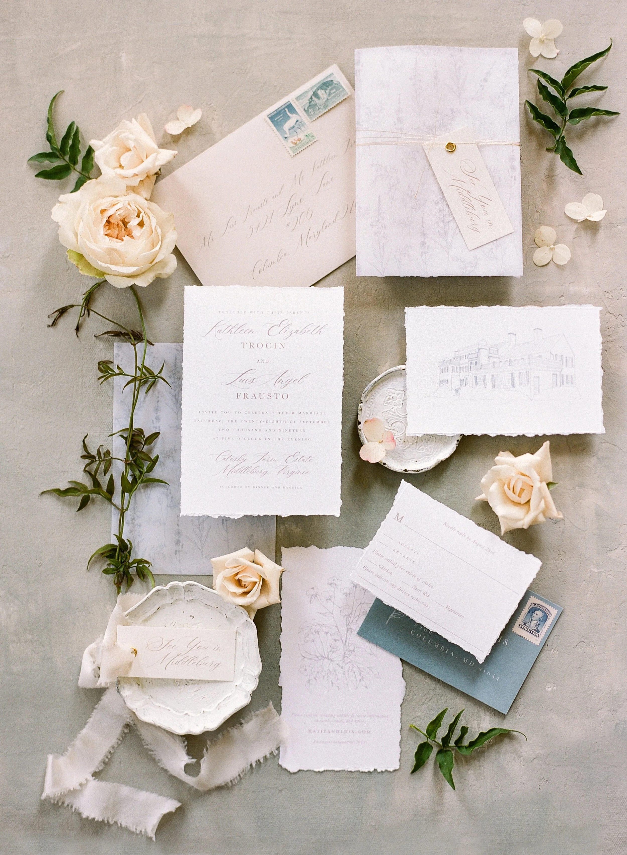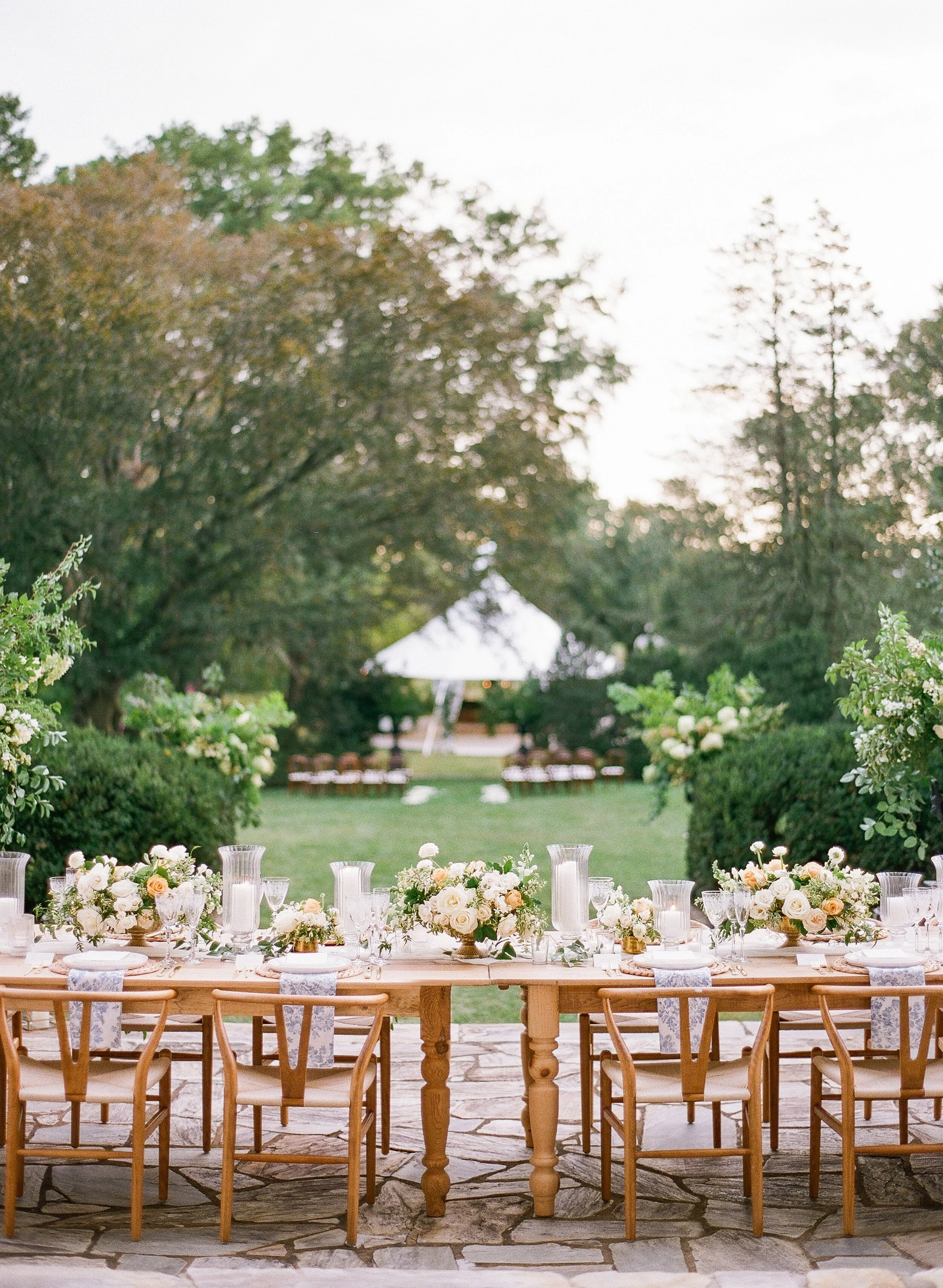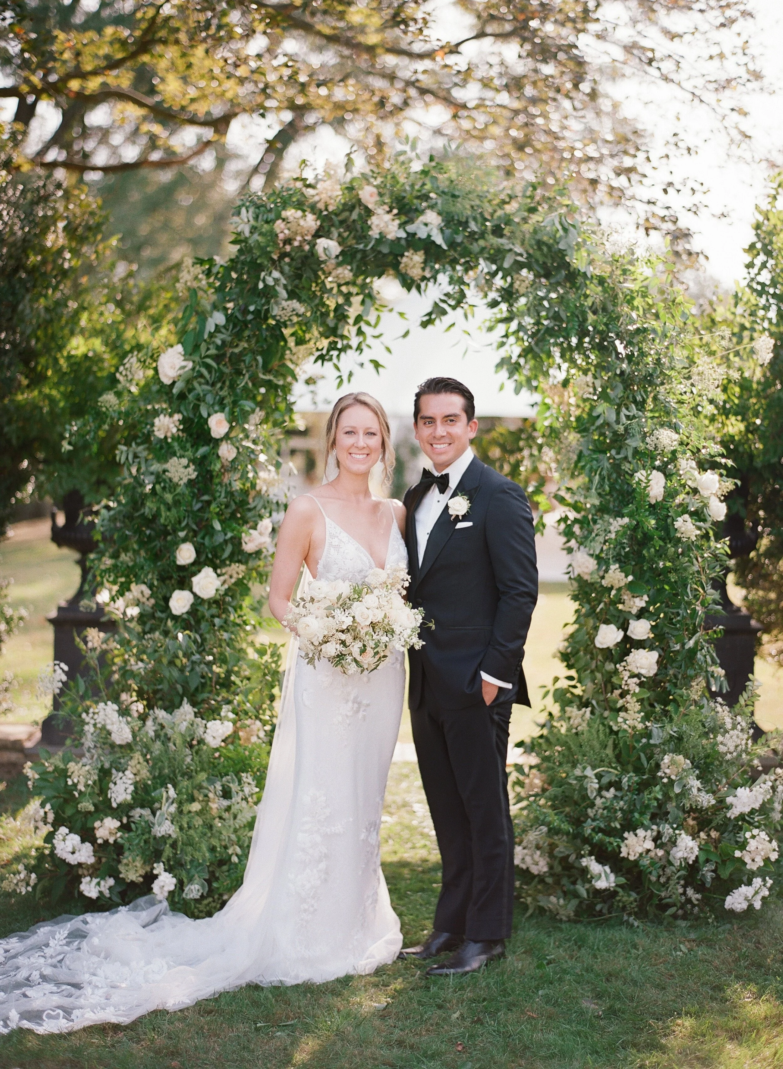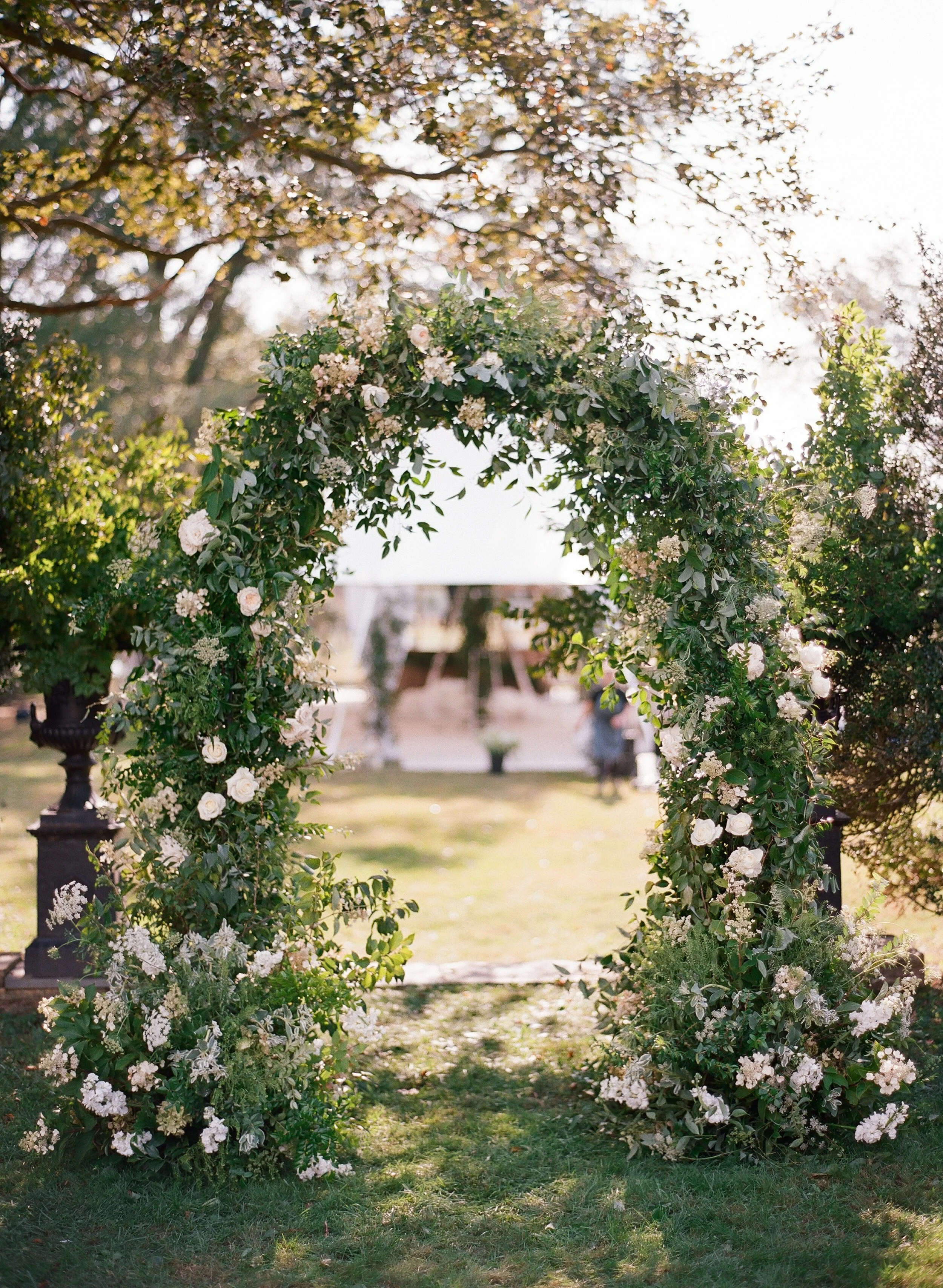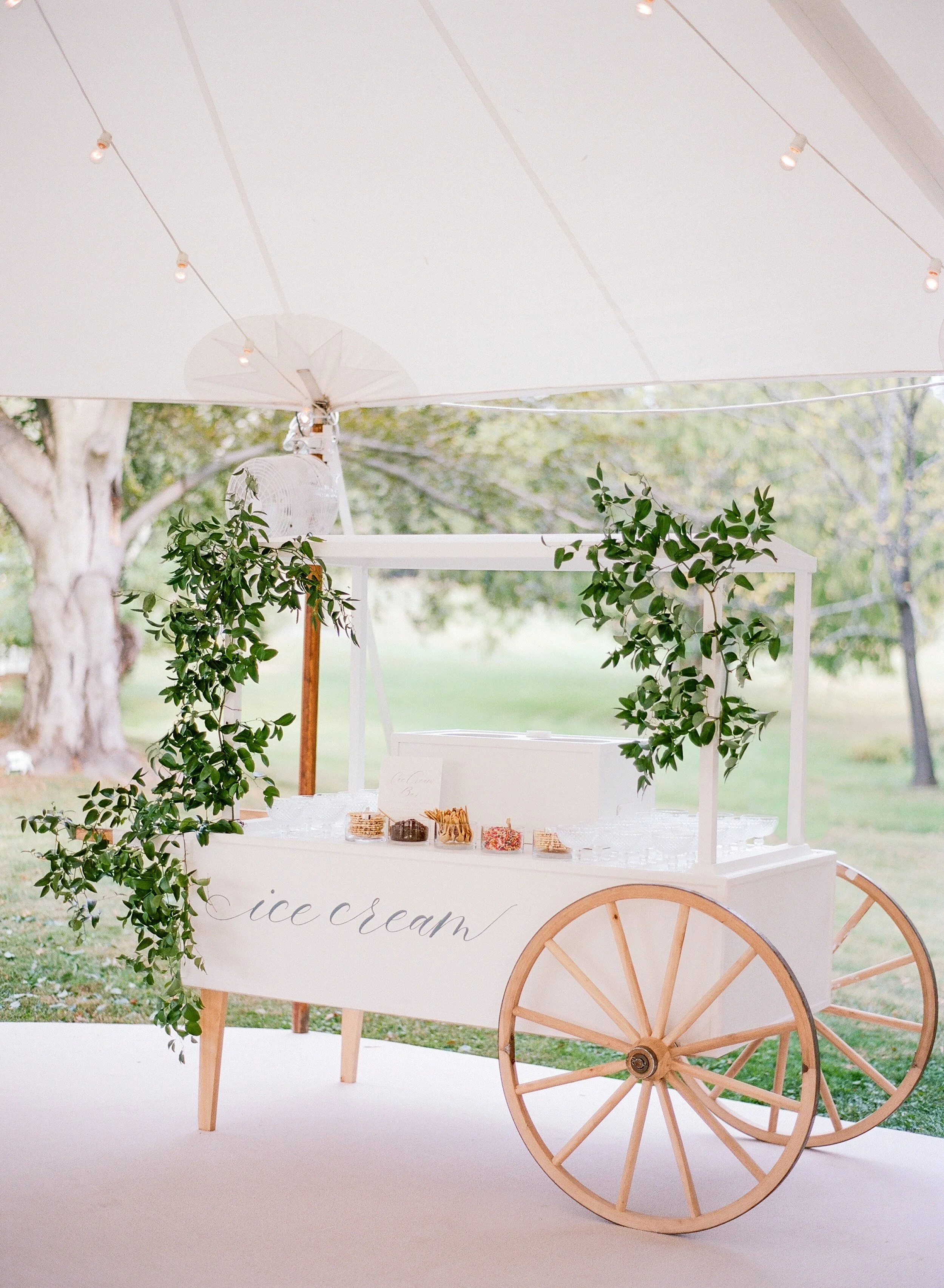 Katie + Luis’s intimate garden ceremony was featured in Martha Stuart Weddings. Inspired by the English Countryside, they were married at Catesby Farm surrounded by the natural, open landscape. Delicate, white petals lined the aisle leading to a floral arch adorned with ivory blooms. Low-lush centerpieces and clusters of candles spanned the cozy reception table as the sun began to set. Greenery wound up the tent poles and draped across the entrance where guests indulged themselves at the ice cream bar for desert. Audra Wrisley beautifully captured this day for Cheers Darling Events.