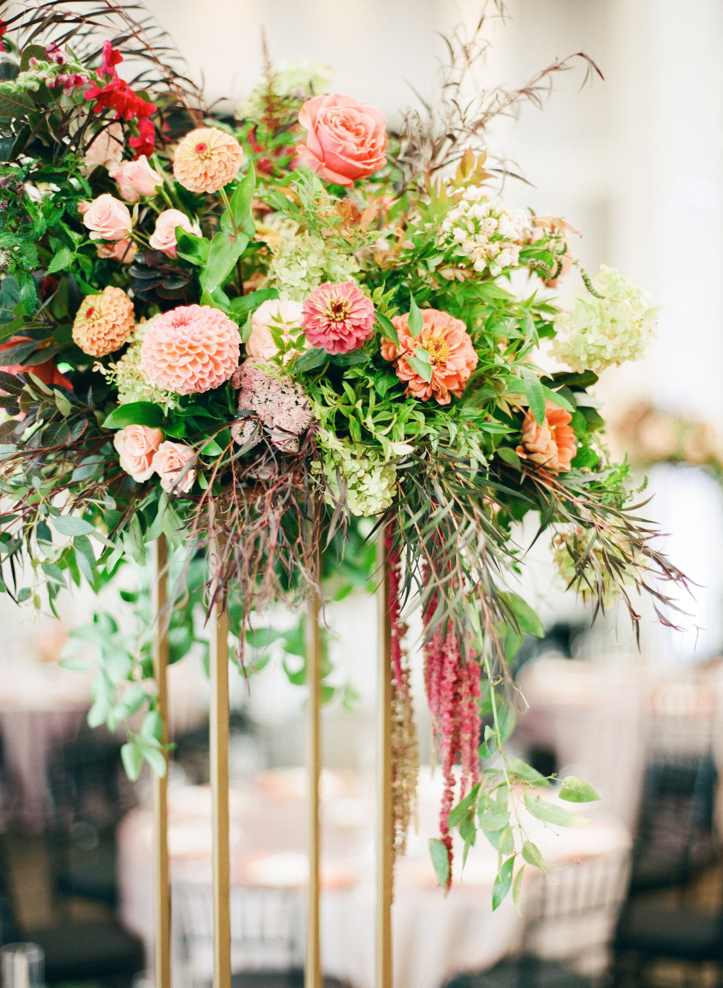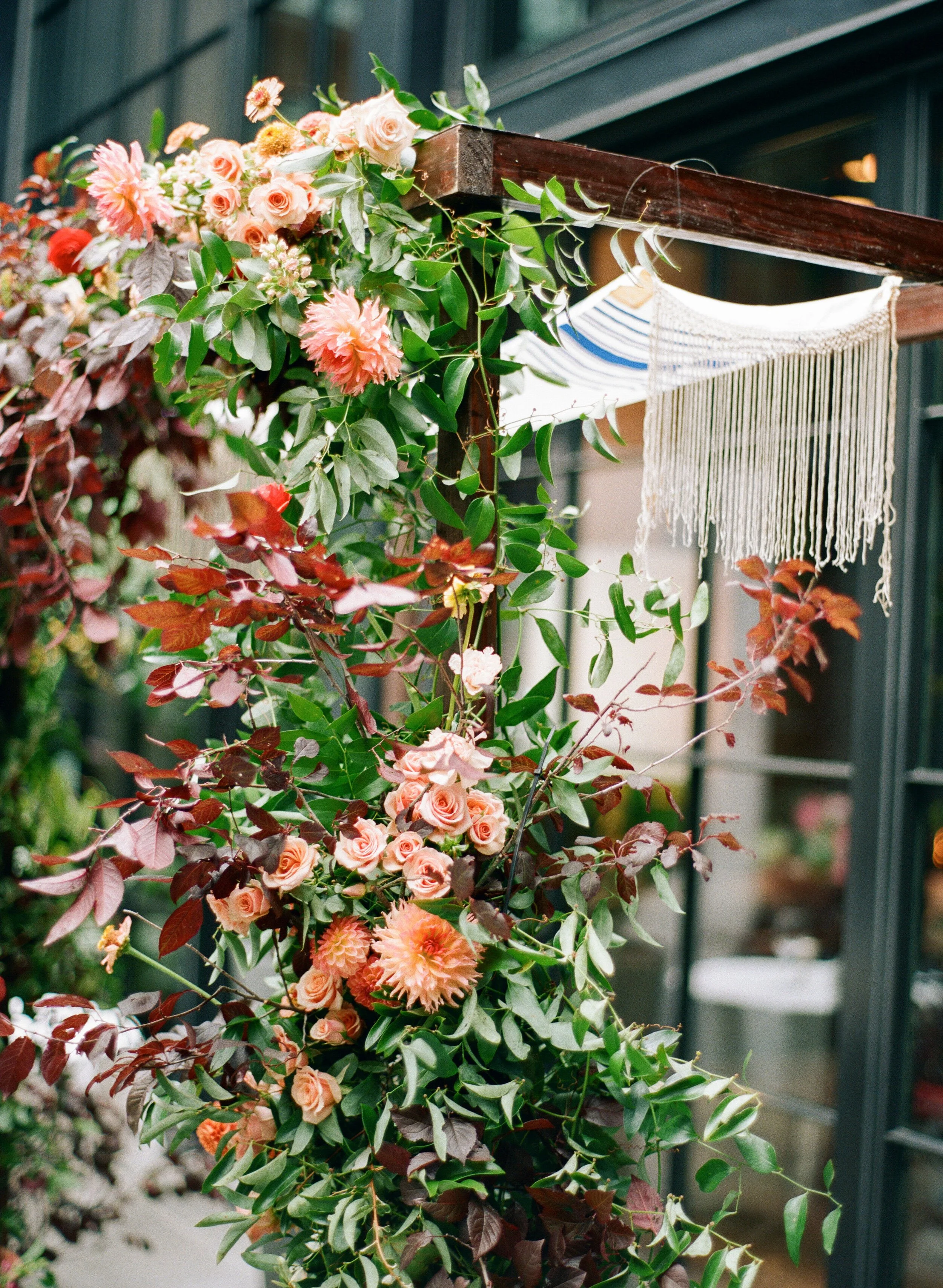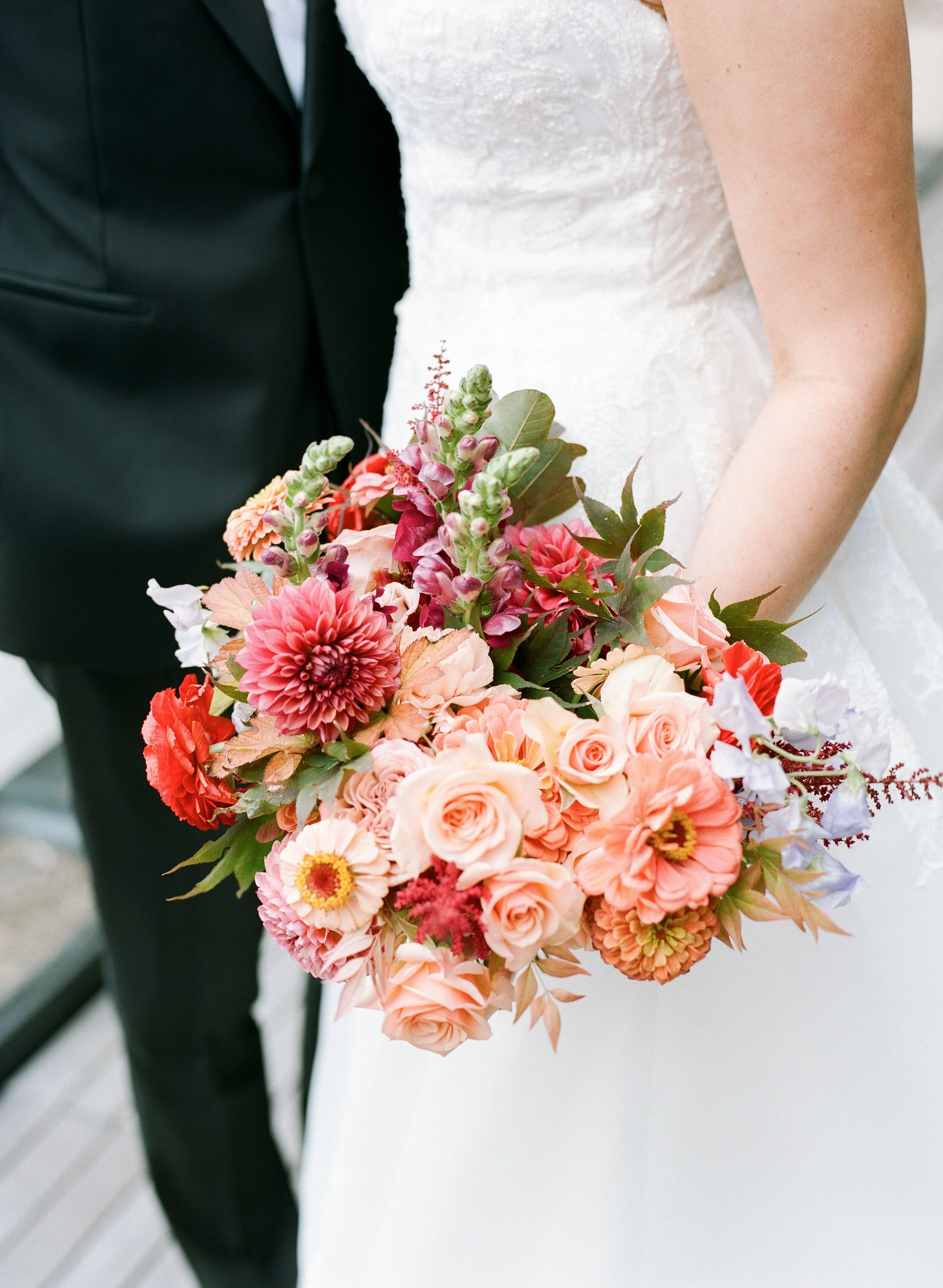 Nicole + Elliot’s color palette was inspired by the radiant hues of the sunset. We scoured the woods for fall foliage and plum leaves to add a fall aesthetic to this September wedding. Dahlias and Zinnias accented the bouquets and floral arch . We loved bringing this vision to life as we worked this event with Cheers Darling Events which Lisa Blume Photography so beautifully captured.