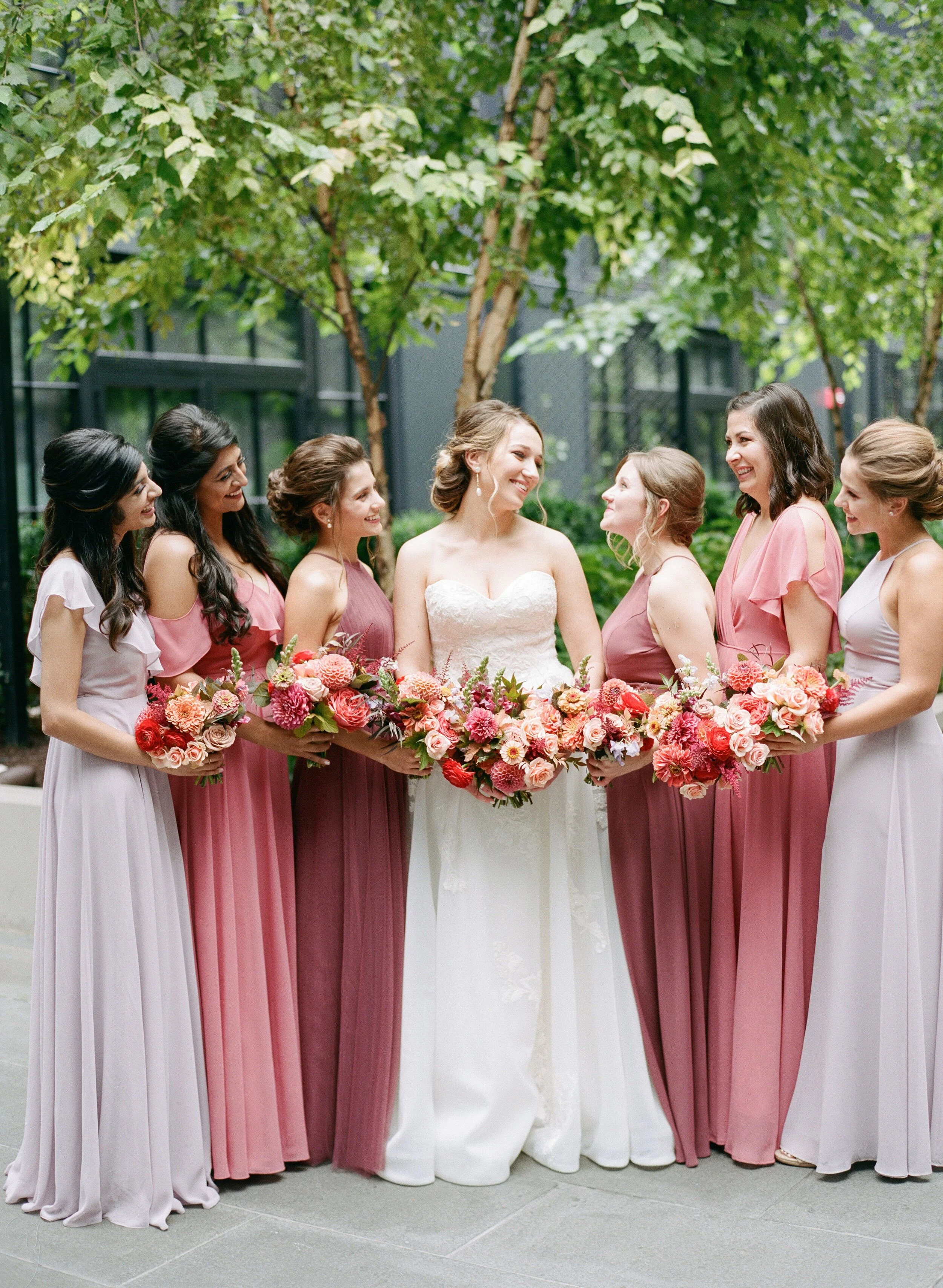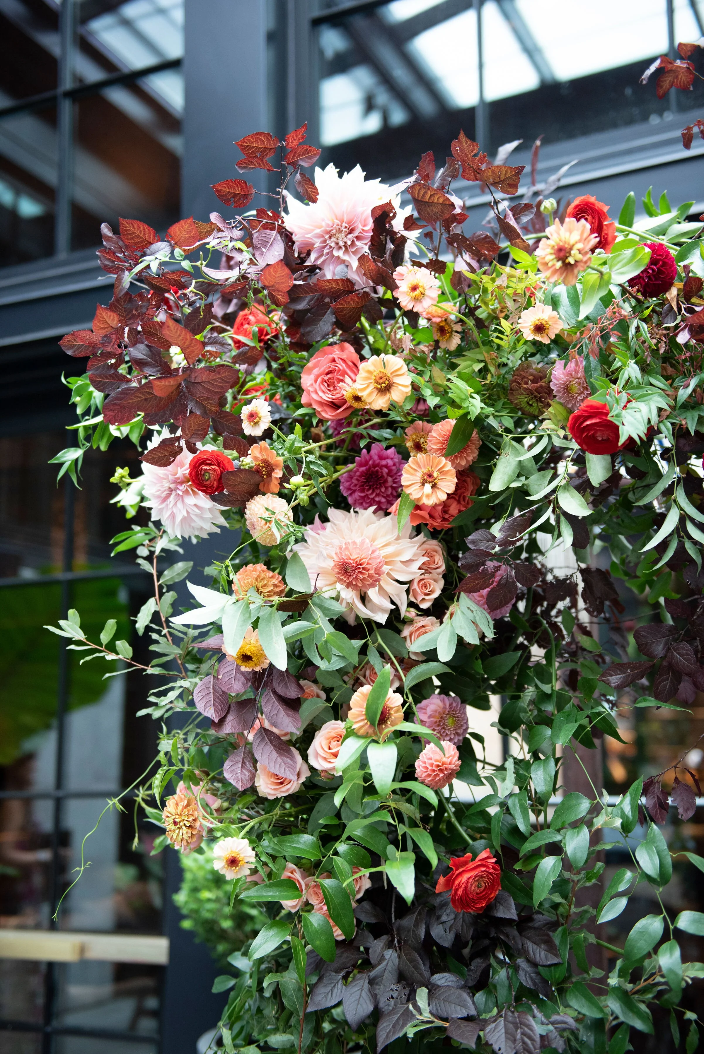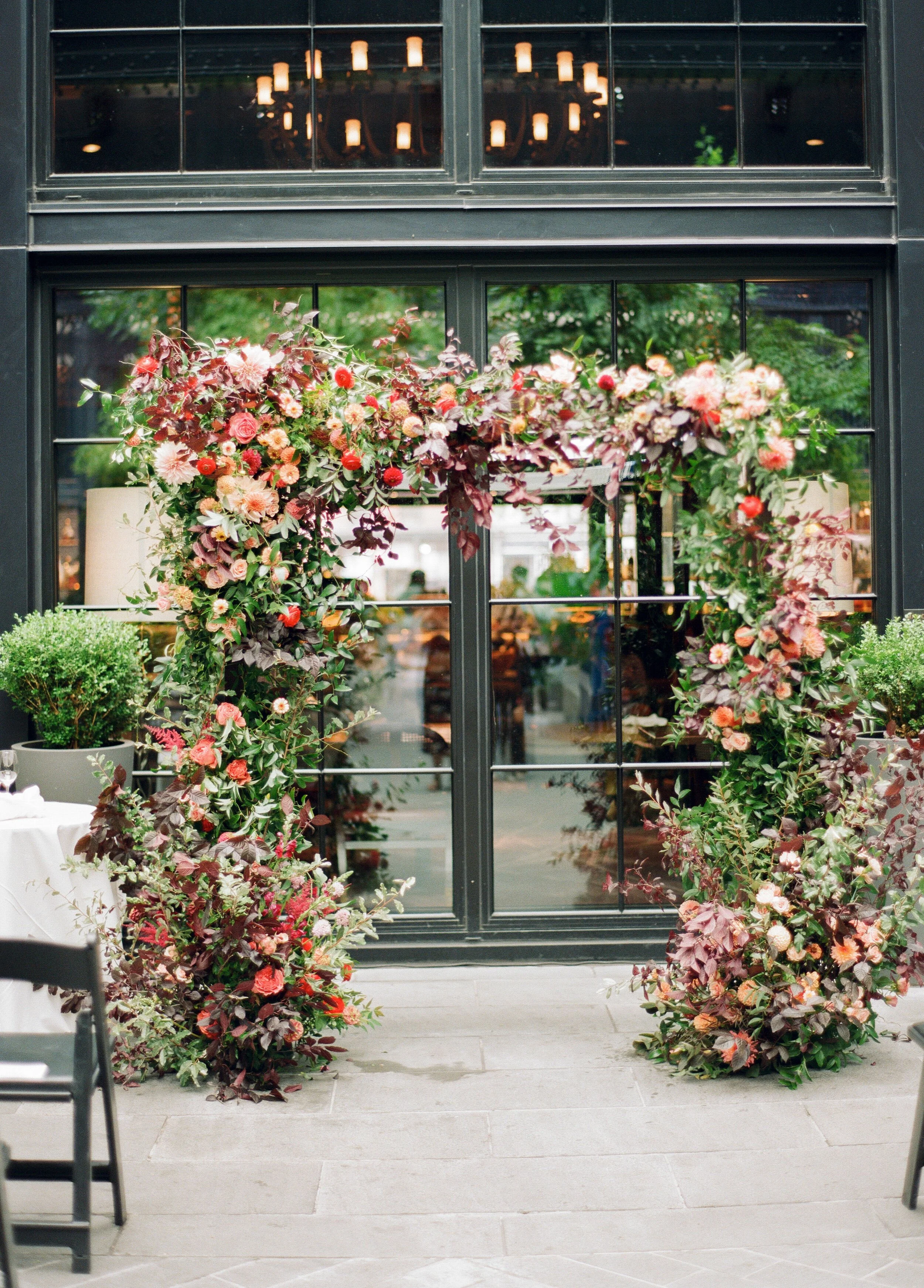 Nicole + Elliot’s color palette was inspired by the radiant hues of the sunset. We scoured the woods for fall foliage and plum leaves to add a fall aesthetic to this September wedding. Dahlias and Zinnias accented the bouquets and floral arch . We loved bringing this vision to life as we worked this event with Cheers Darling Events which Lisa Blume Photography so beautifully captured.