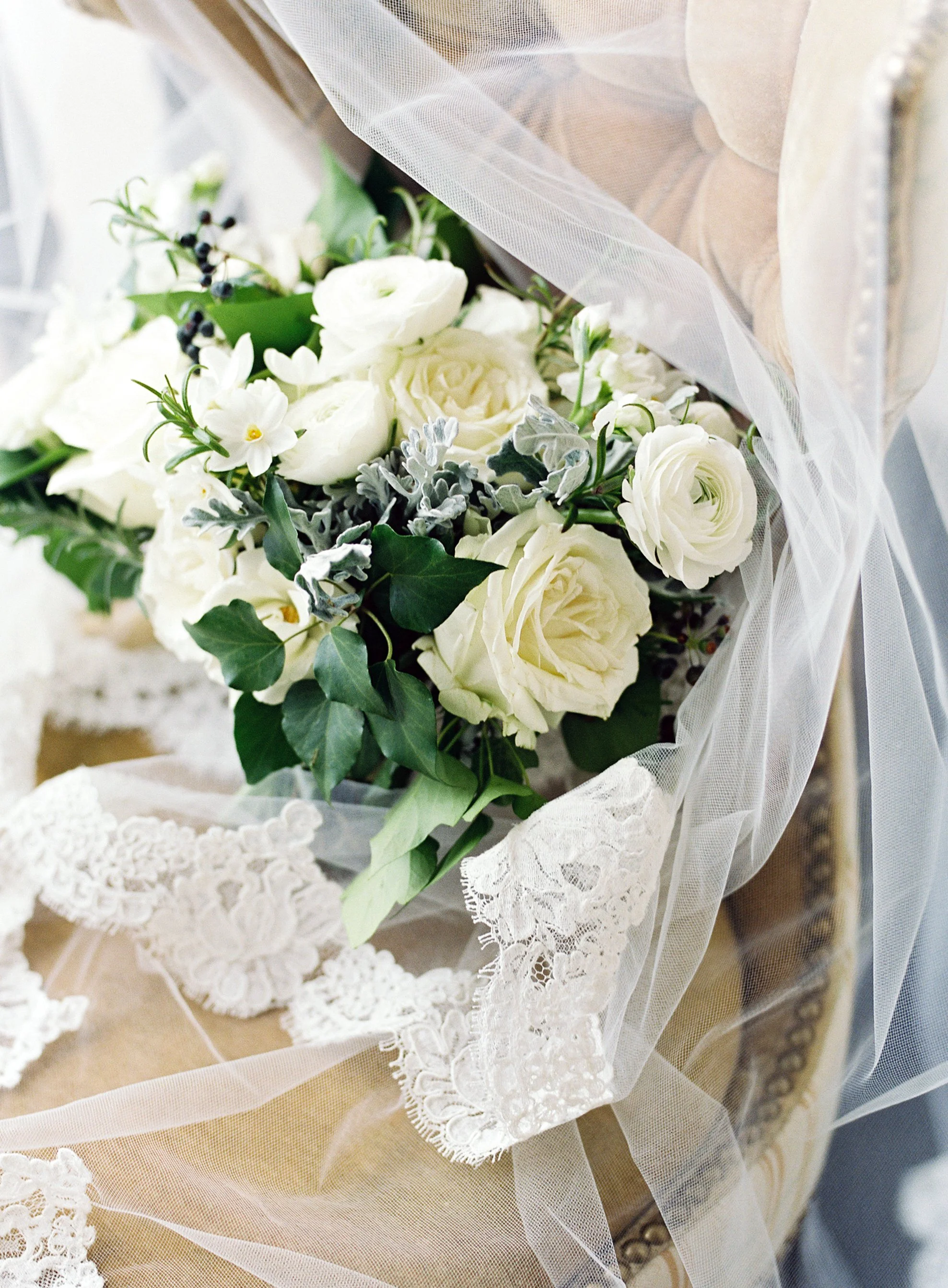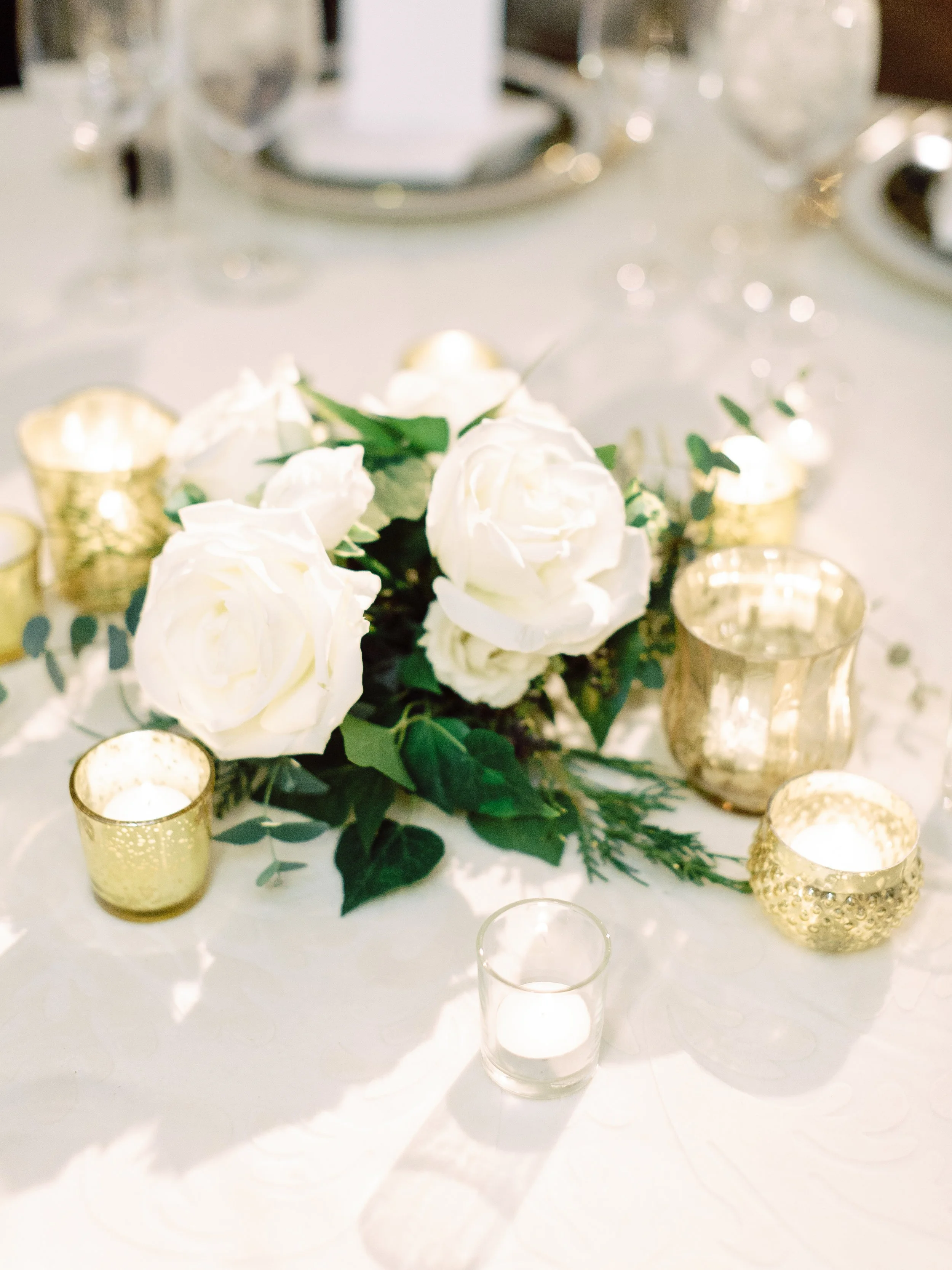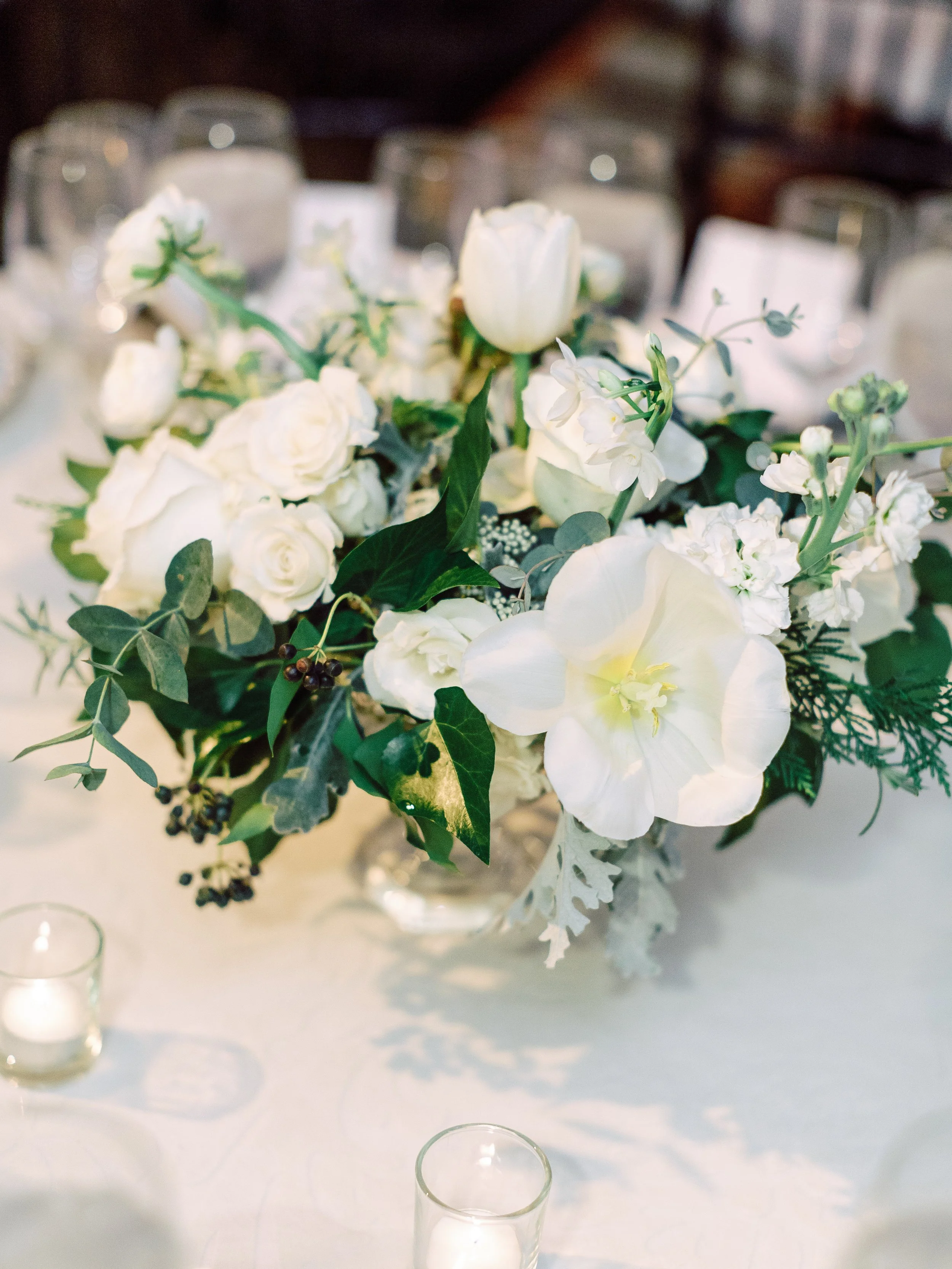 This Luxurious winter wedding at Decatur House in Washington DC was captured by Rachel May Photography for A. Dominick Events. We love the creamy blooms and bright greens that made up this stunning floral arch, as well as the cherry blossoms that brought some warmth into this chilly winter day.