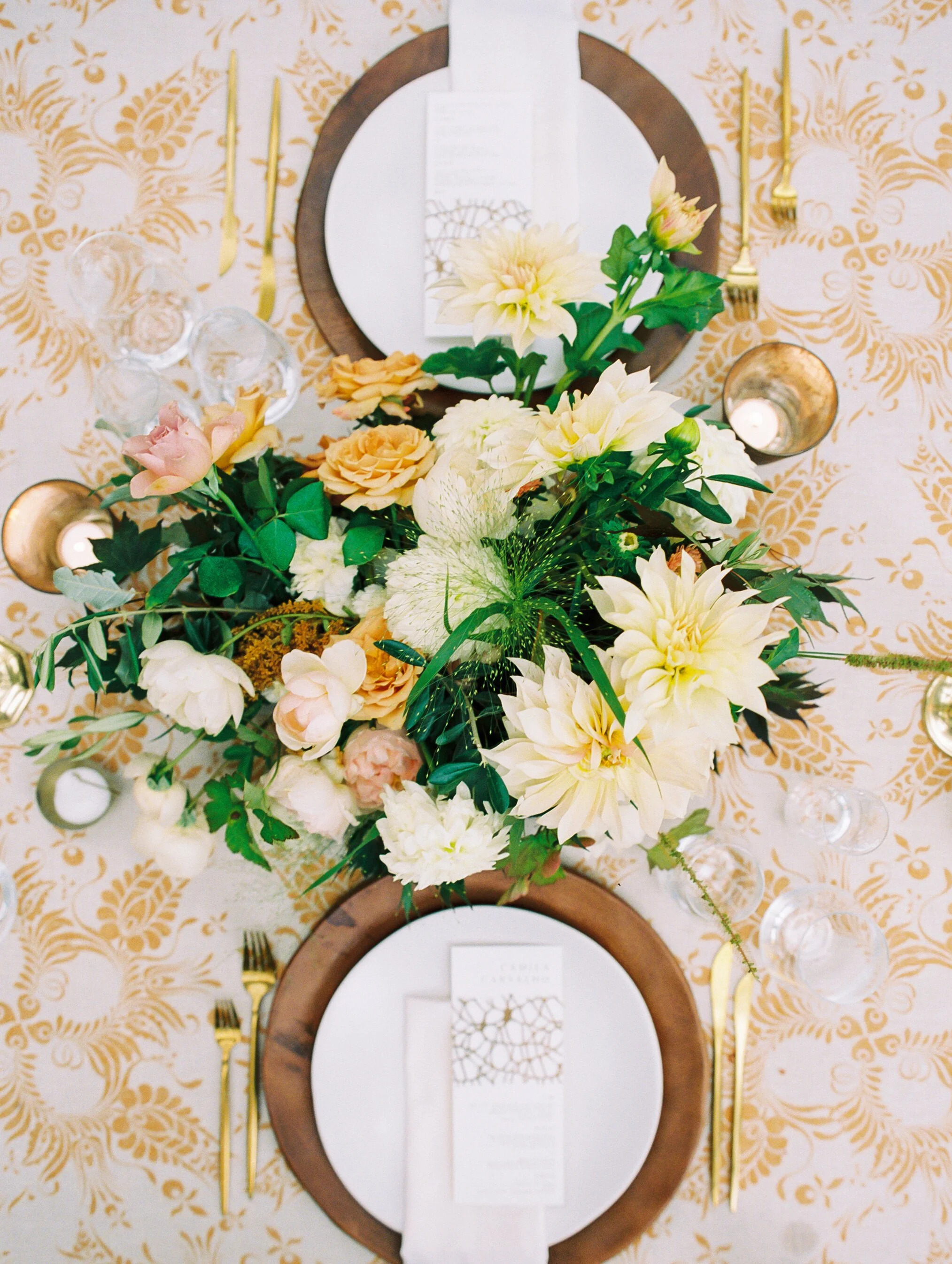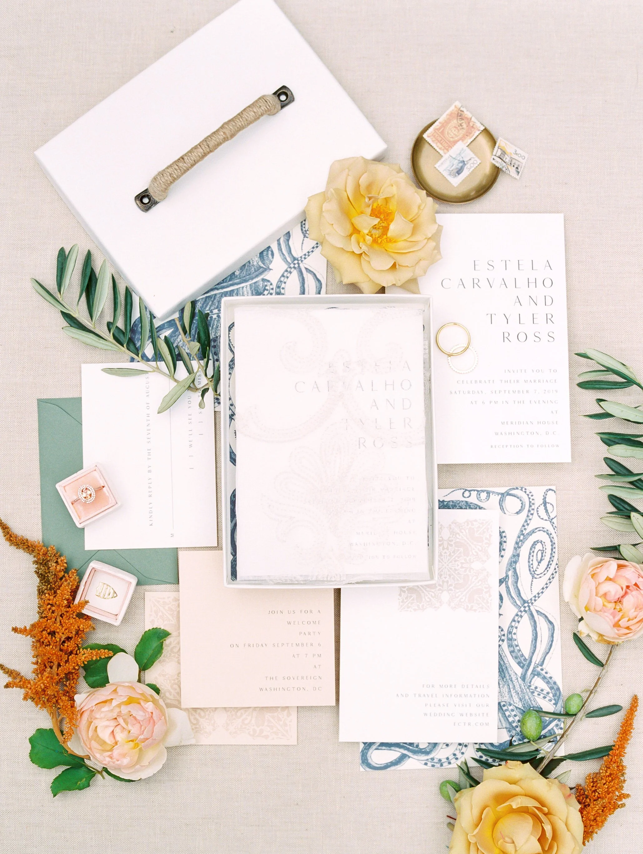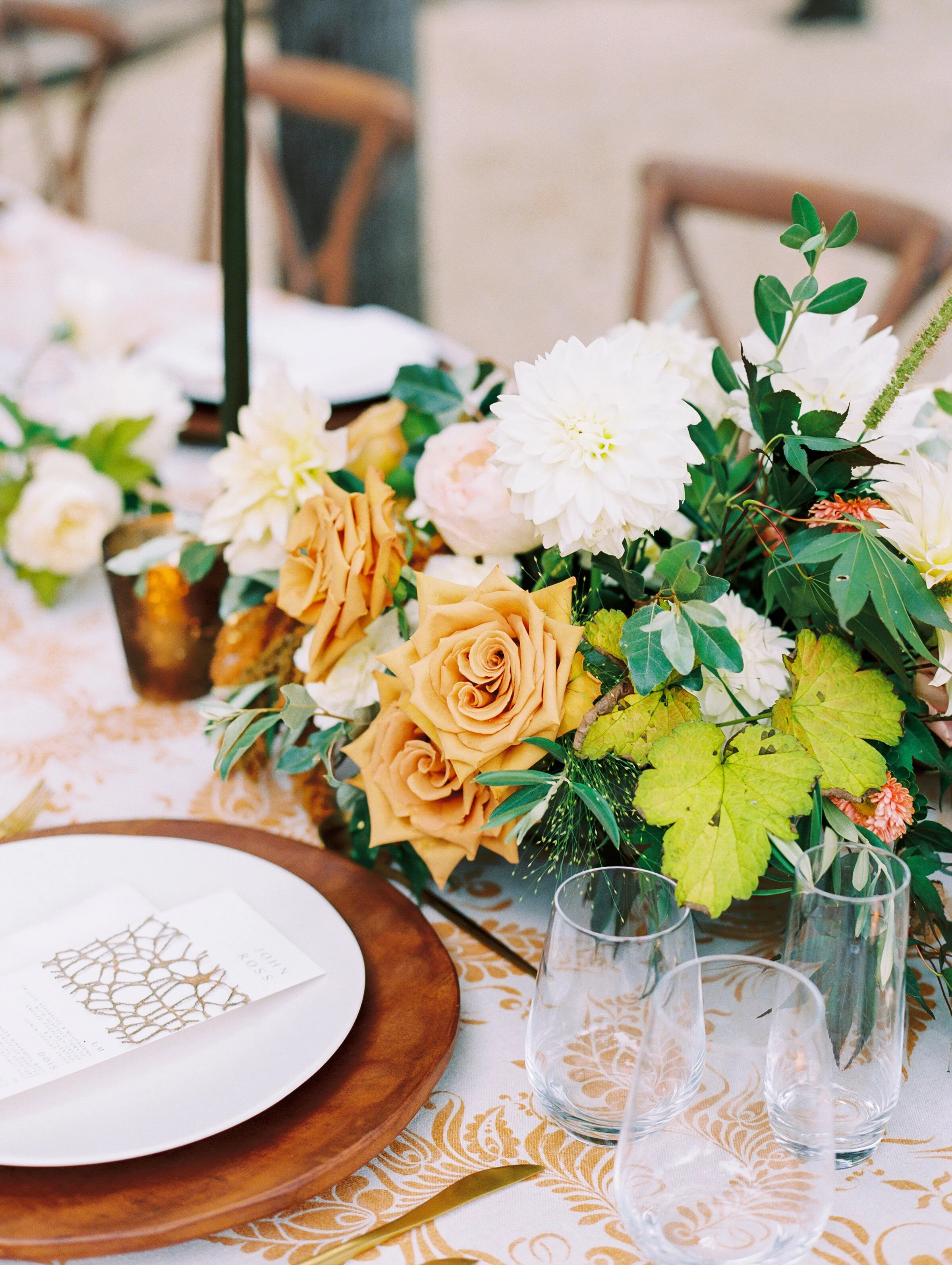 This Portuguese-inspired photo shoot with Bonnie Sen Photography and Vieira Events was featured in Style Me Pretty. The textural and warm earth tones absolutely popped on this warm, fall day. This engagement shoot at Meridian House is still one of our all time favorites.
