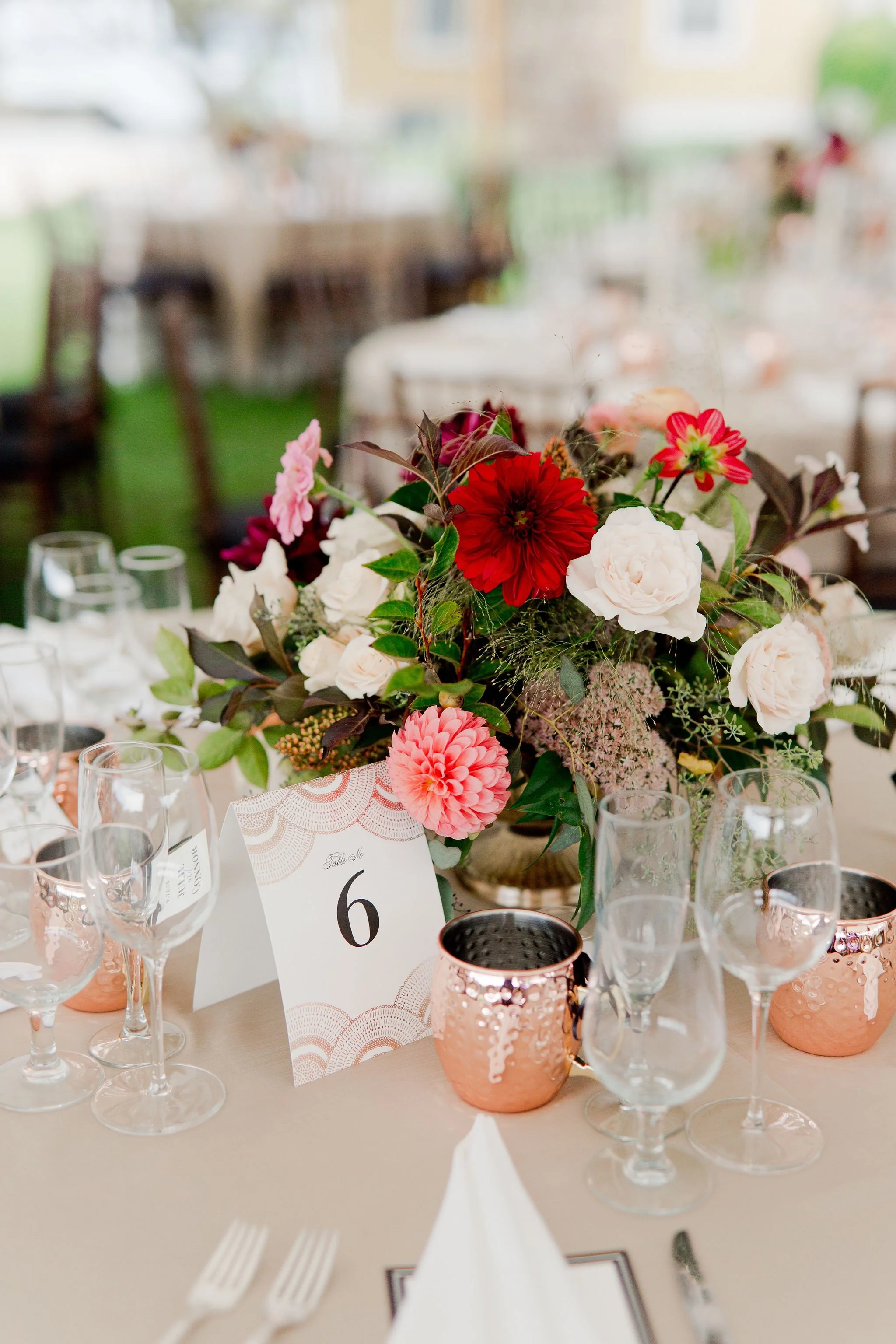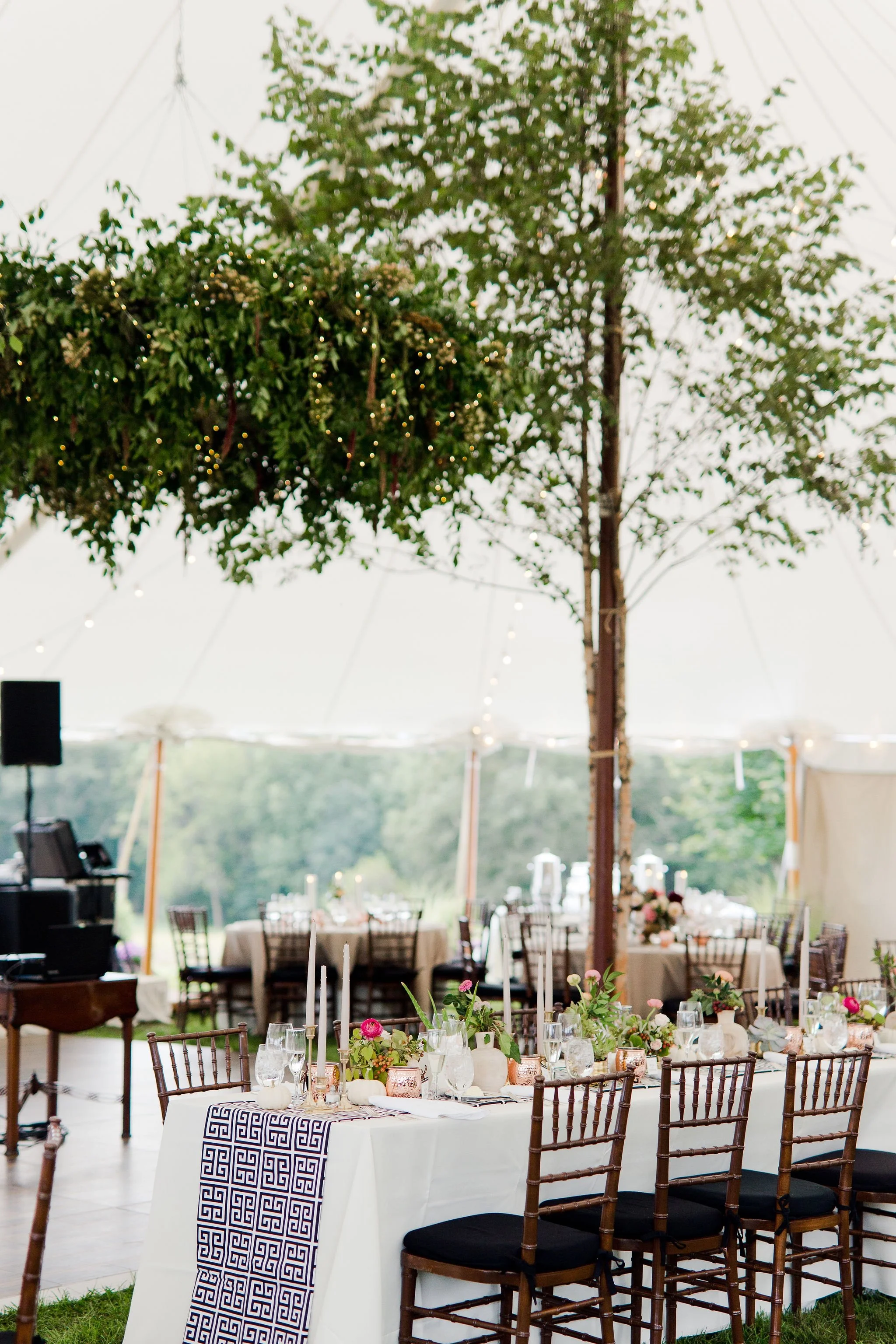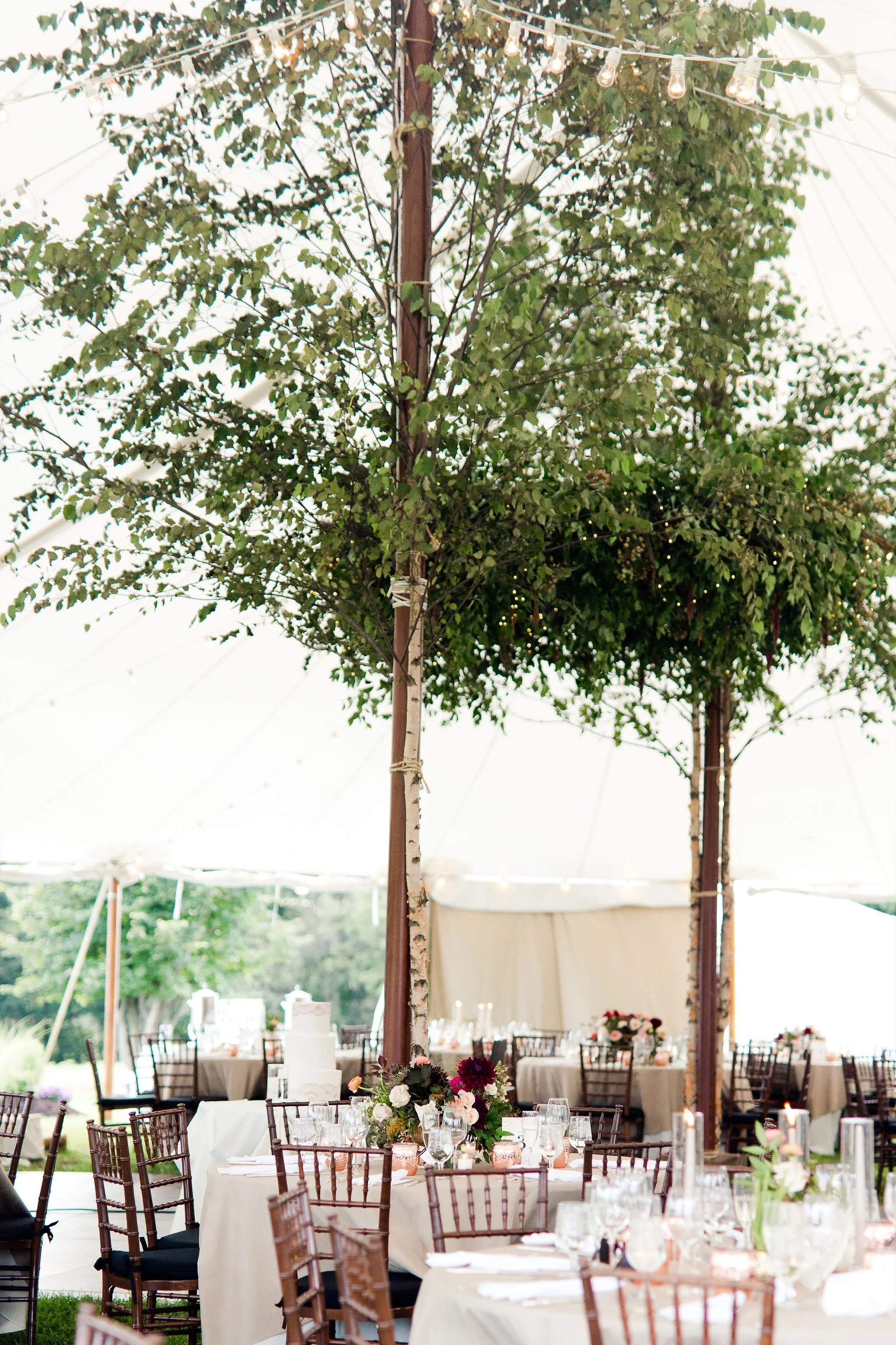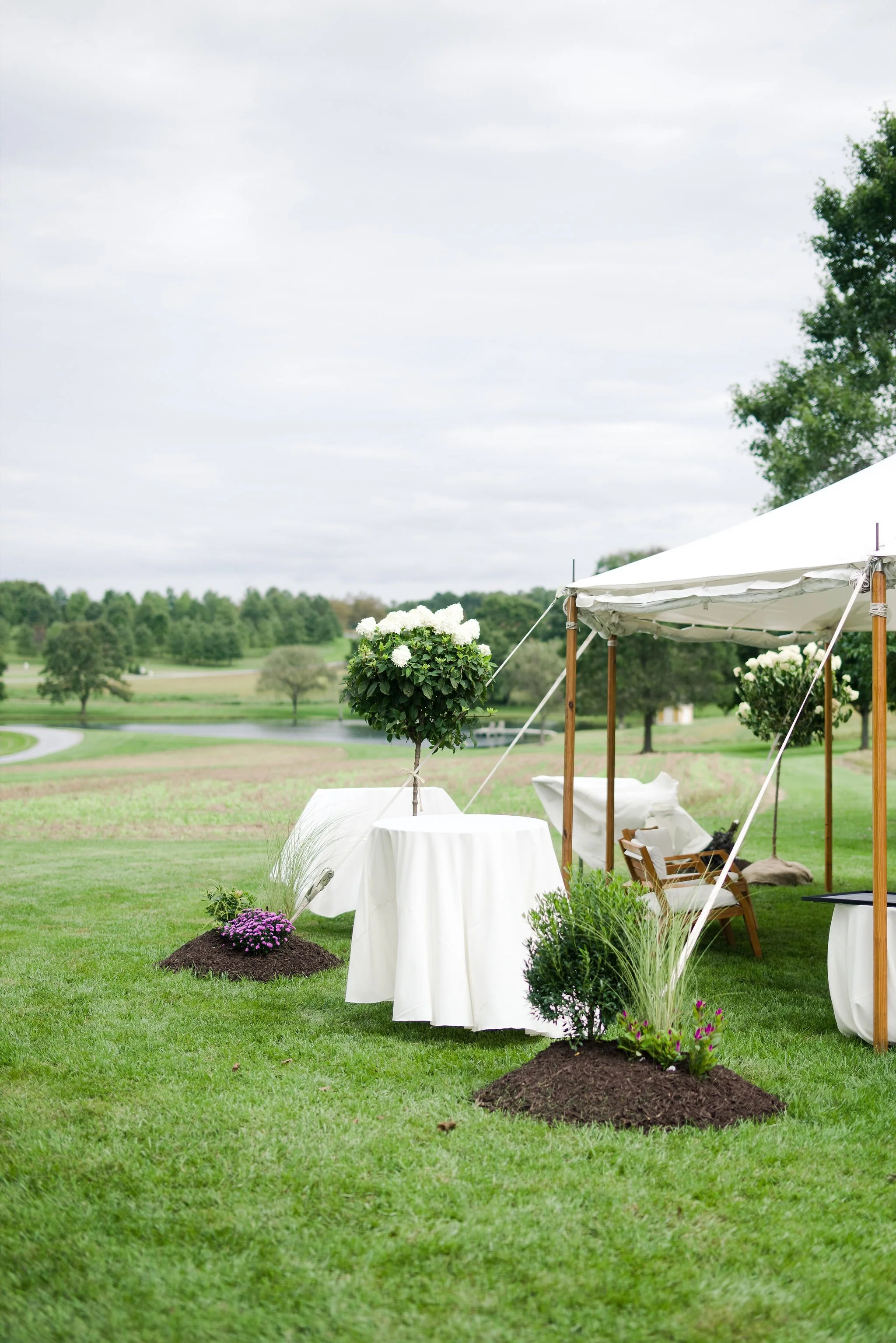 Sophie’s sweet sister Julie married her love Connor at the family tree farm in Laytonsville, MD. Being that the wedding was on the farm, it only made sense to bring some trees inside the tent. We installed the trees to the main tent poles, and their branches helped connect the focal floral chandelier that hung over the dance floor. We “planted” small flower beds and tree hydrangeas at the base of each tent stake for a really “finished” look. Julie’s big priority was her live band Go Go Gadget …they were amazing and out of all of the weddings I have seen, I have never seen one with more dancing. If you are looking for a GREAT band, check them out!