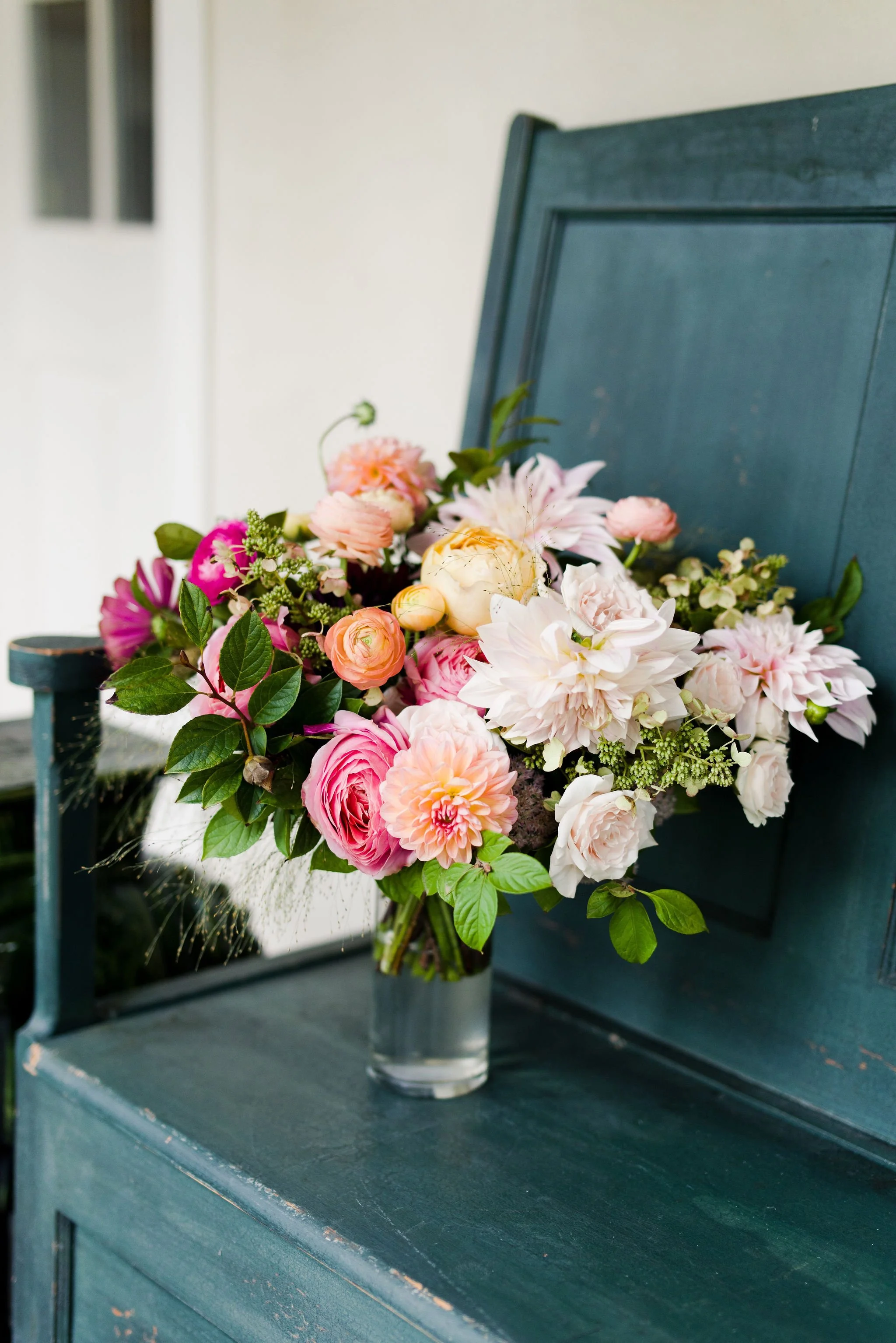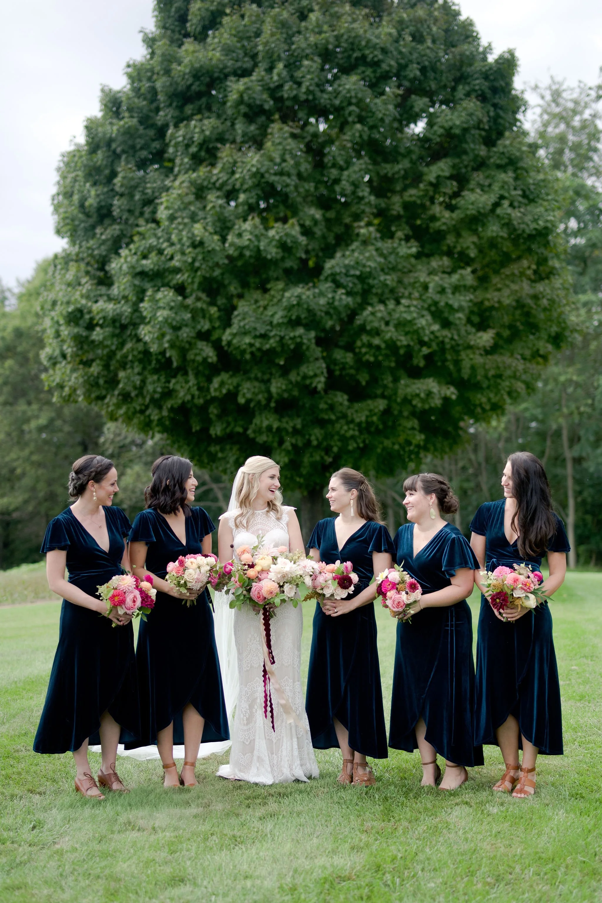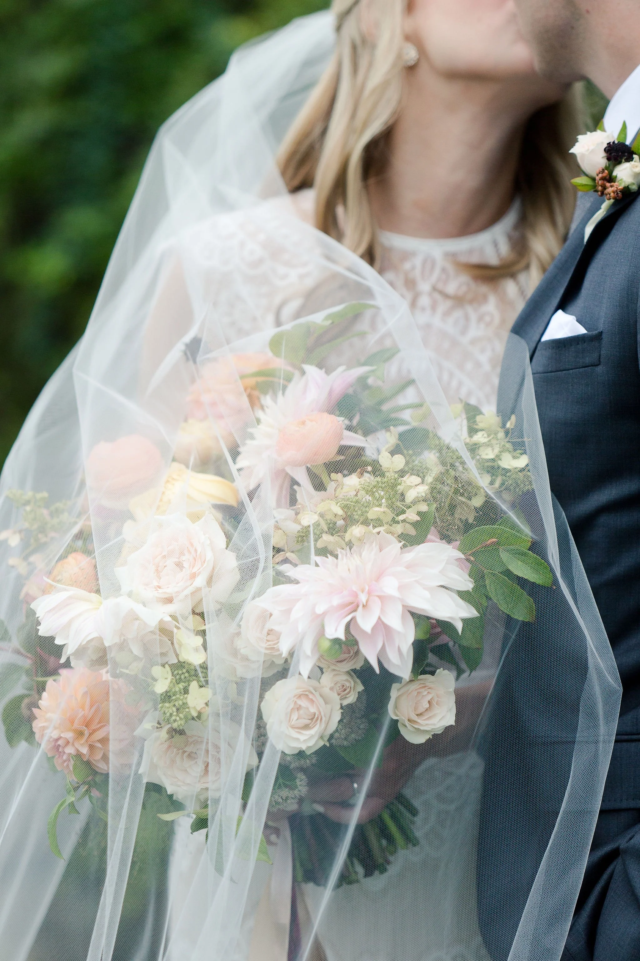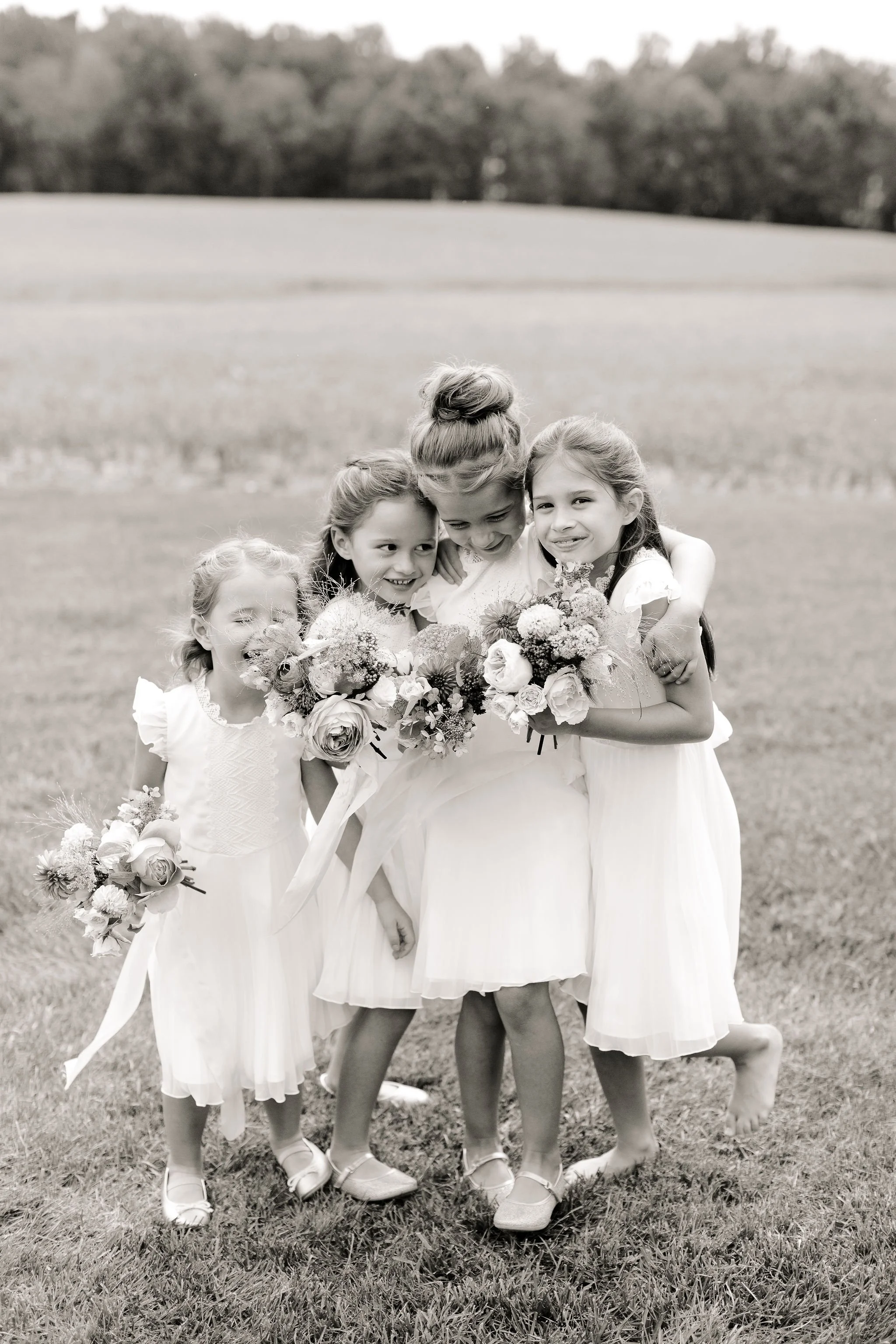 Sophie’s sweet sister Julie married her love Connor at the family tree farm in Laytonsville, MD. Being that the wedding was on the farm, it only made sense to bring some trees inside the tent. We installed the trees to the main tent poles, and their branches helped connect the focal floral chandelier that hung over the dance floor. We “planted” small flower beds and tree hydrangeas at the base of each tent stake for a really “finished” look. Julie’s big priority was her live band Go Go Gadget …they were amazing and out of all of the weddings I have seen, I have never seen one with more dancing. If you are looking for a GREAT band, check them out!