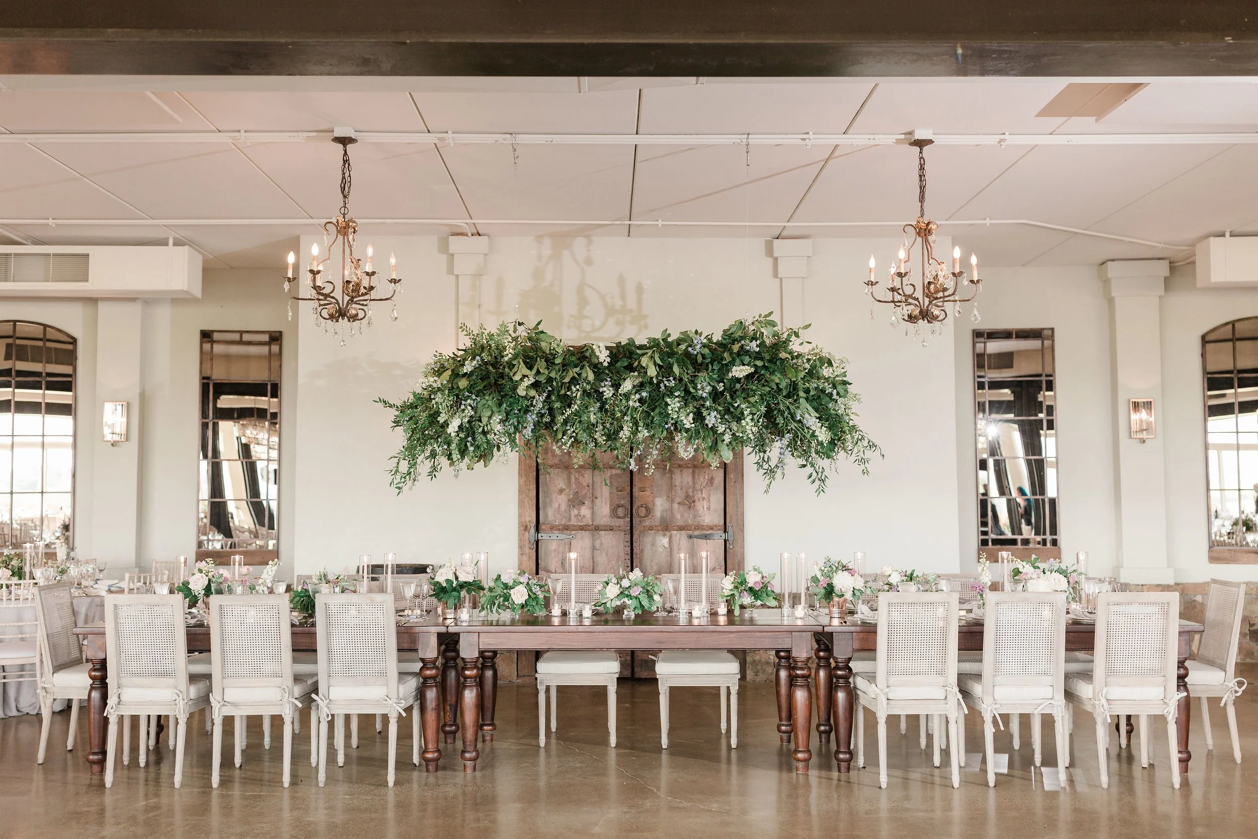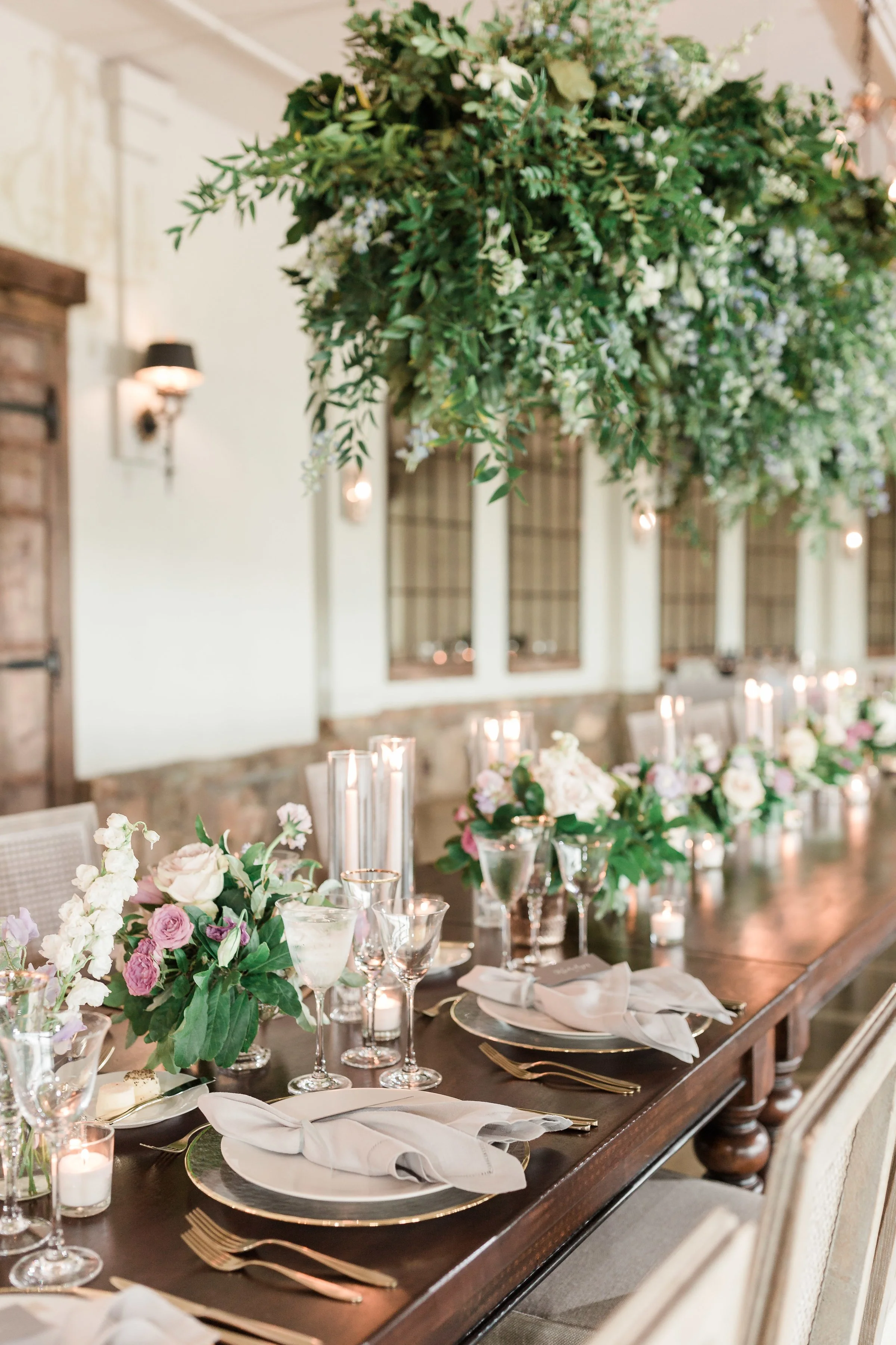 This Stone Tower Winery wedding was nothing short of magic. We are in love with the hanging floral piece over the head table. This sweet couples wedding day was photographed by Alicia Lacey Photography for Caroline Dutton Events.